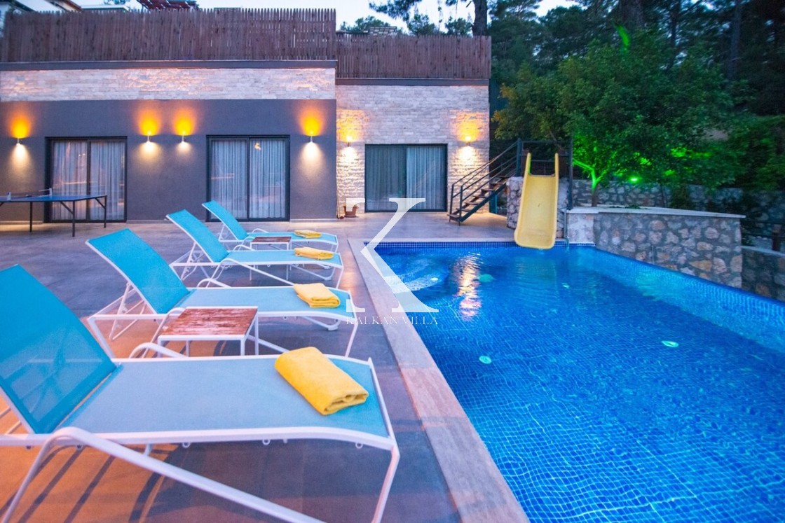Modern mimarisi, ferah iç mekânları ve şık dekorasyonu ile Villa Arda Akbel, Kalkan’ın seçkin villalarından biridir.