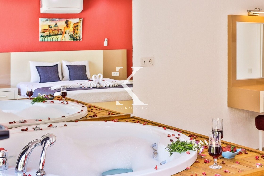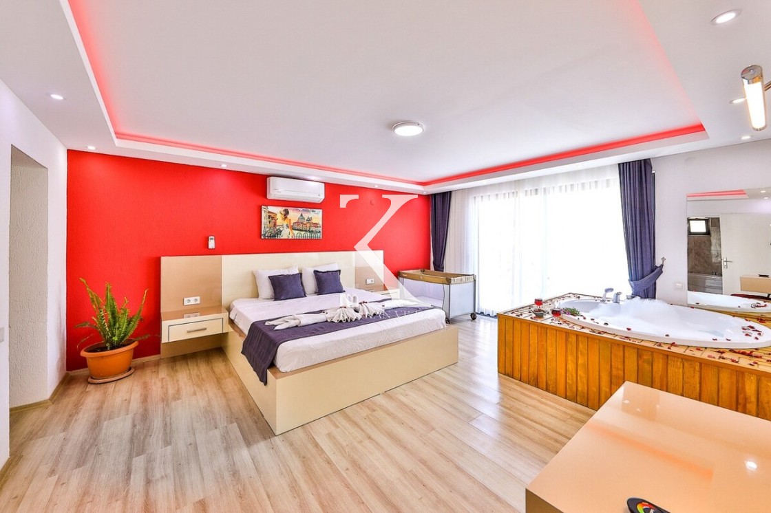 Çift kişilik yatak, klima, jakuzi, makyaj masası, elbise dolabı, özel banyo & tuvalet
