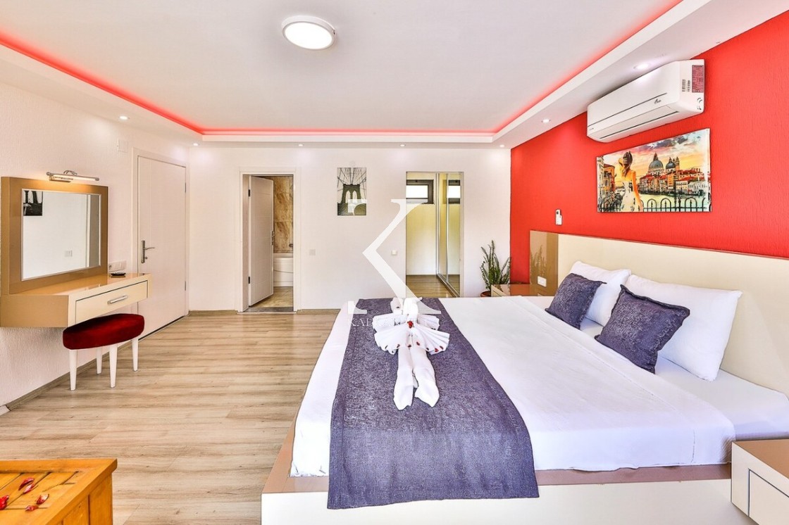 Çift kişilik yatak, klima, elbise dolabı, makyaj masası, özel banyo & tuvalet