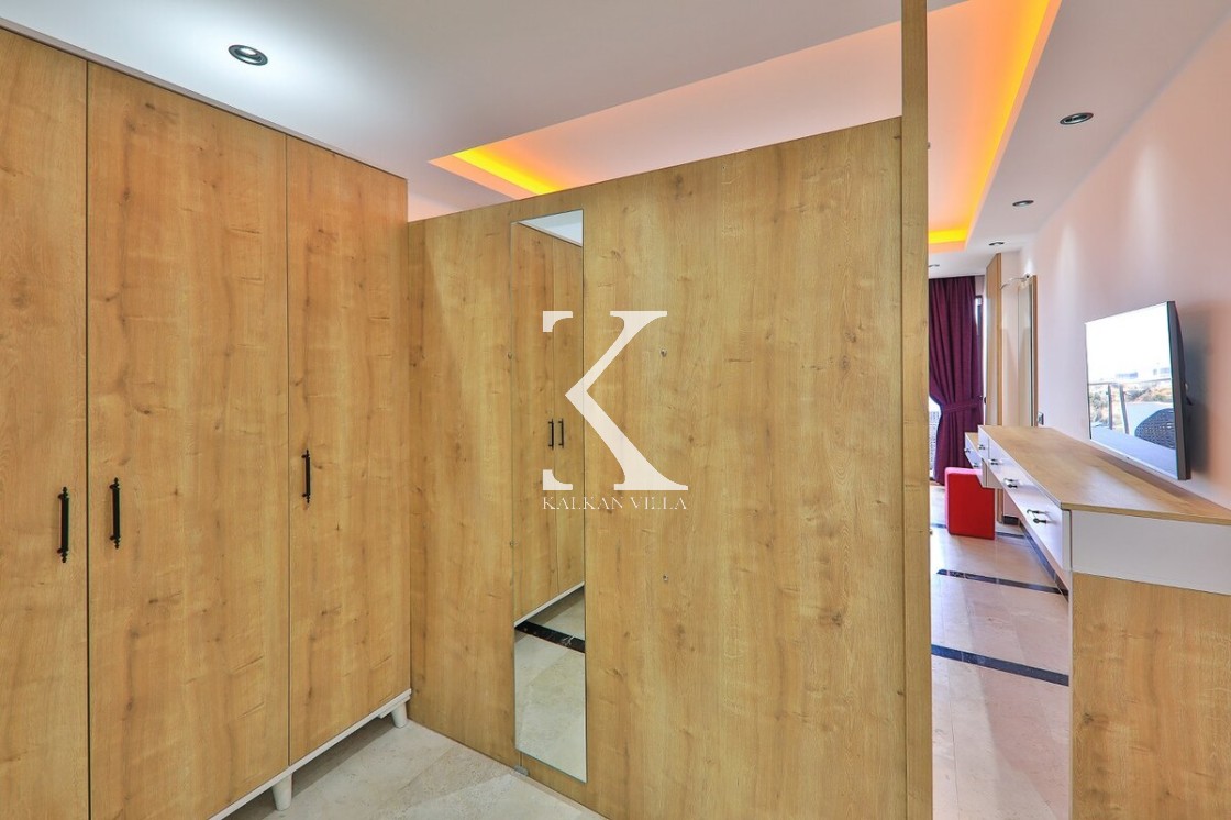 Çift kişilik yatak, klima, elbise dolabı, komodin, makyaj masası, banyo & tuvalet