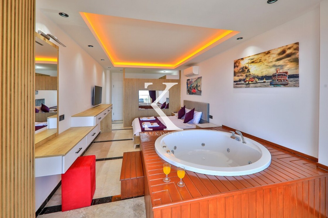 Çift kişilik yatak, klima, jakuzi, elbise dolabı, komodin, makyaj masası, banyo & tuvalet
