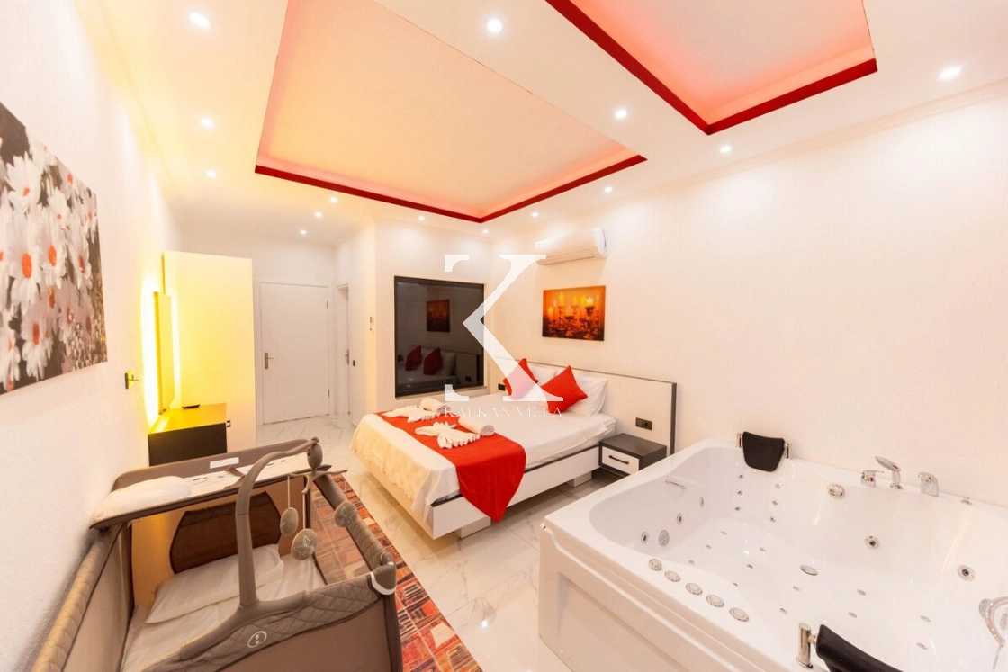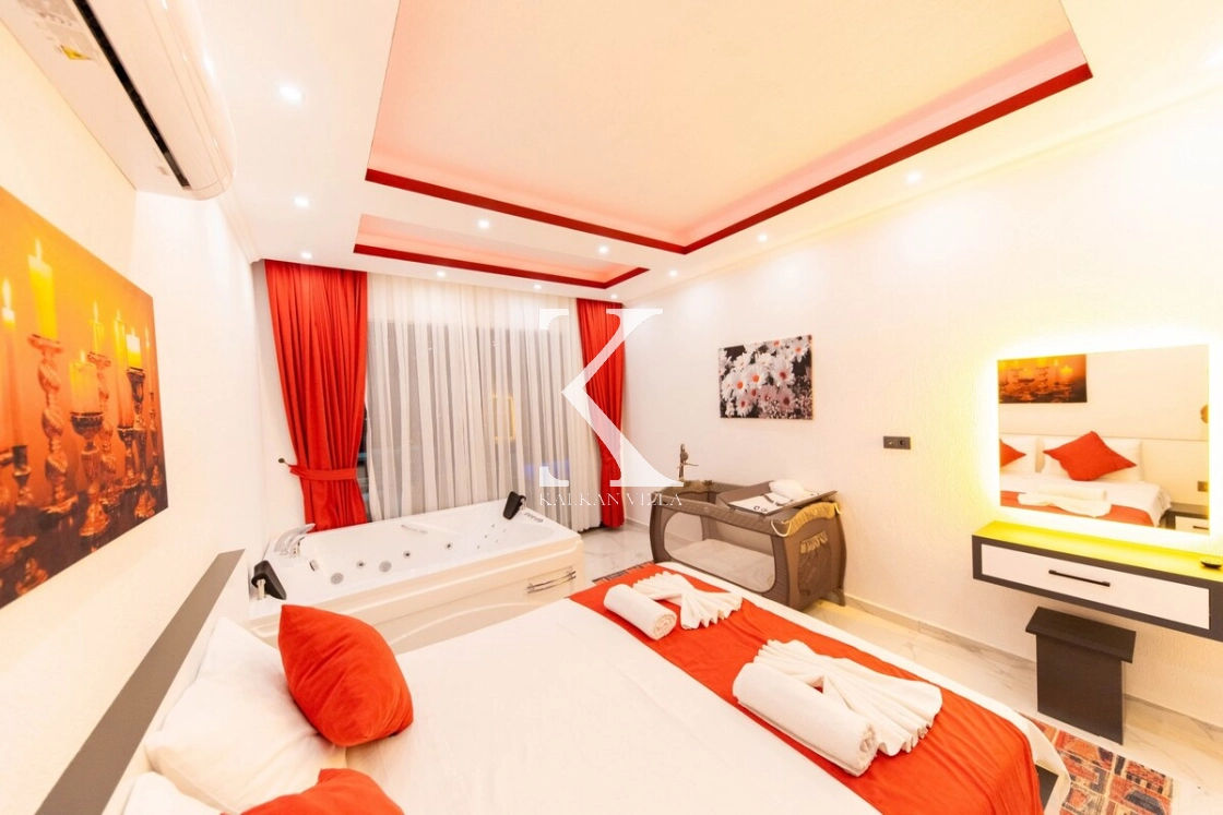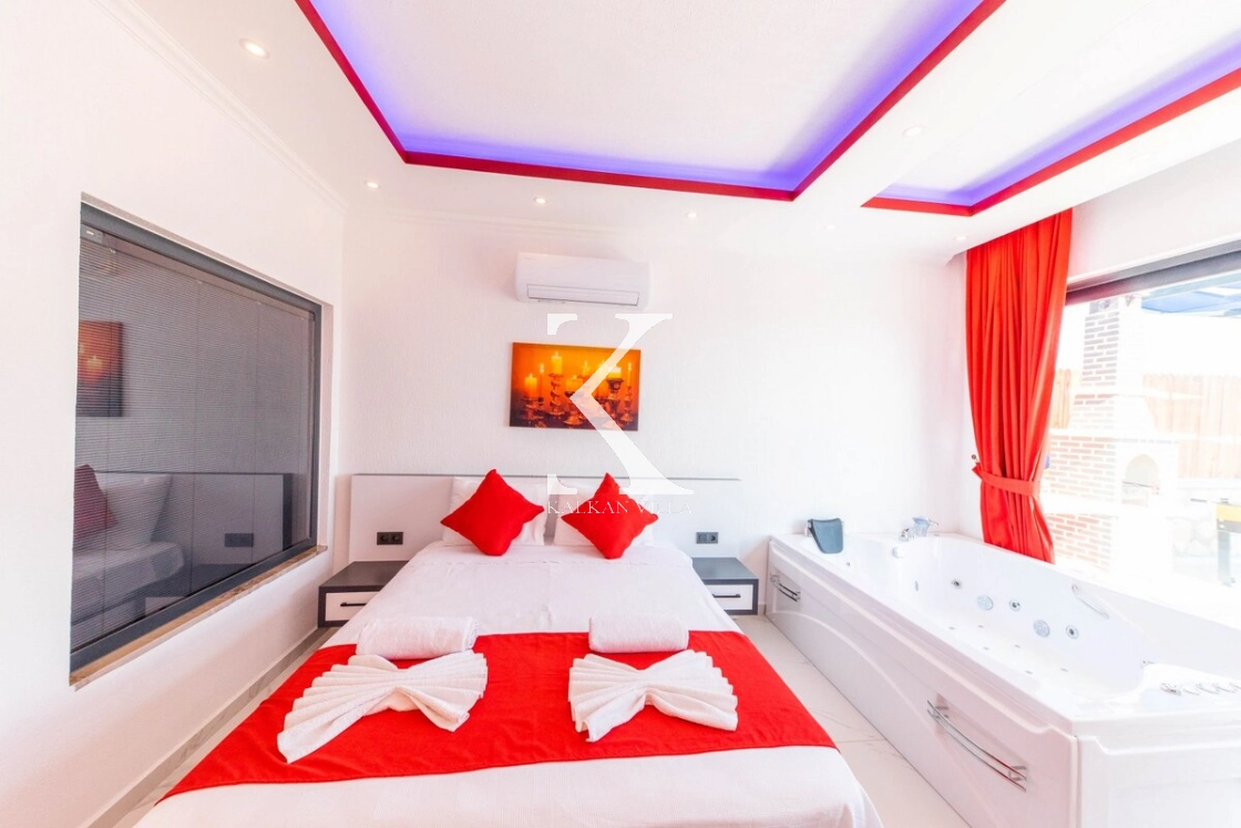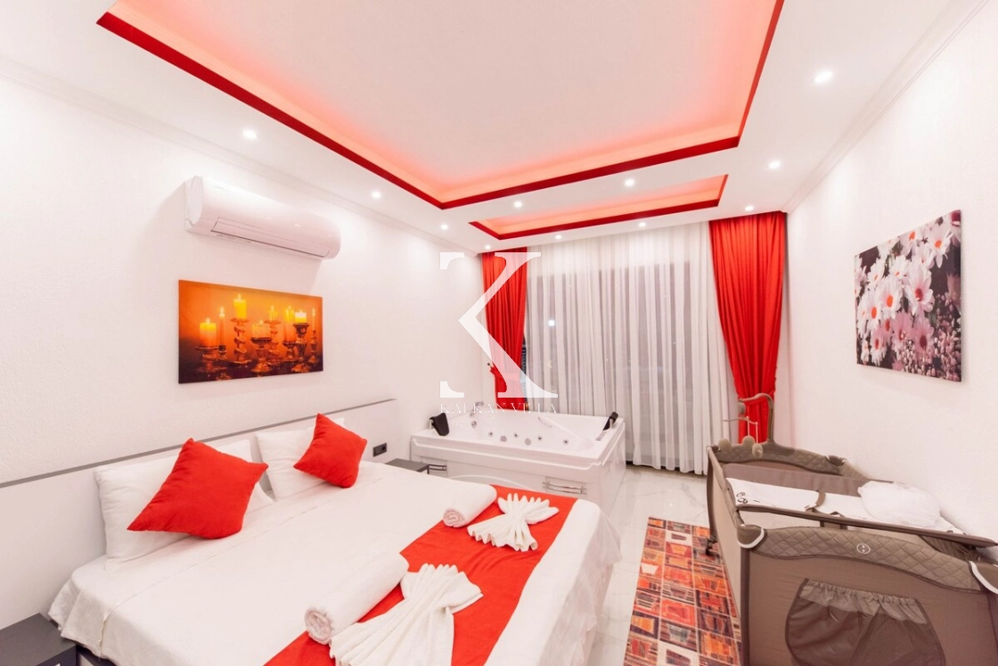 Modern ve konforlu şekilde dekore edilen villada; 2 adet çift kişilik yatak, 1 adet tek kişilik yatak, jakuzili süit yatak odası ve bebek yatağı bulunmaktadır. Geniş havuz terasında yer alan özel yüzme havuzu, salıncak, barbekü alanı ve oturma köşesi ile misafirlerine keyifli ve rahat bir tatil ortamı sağlar.