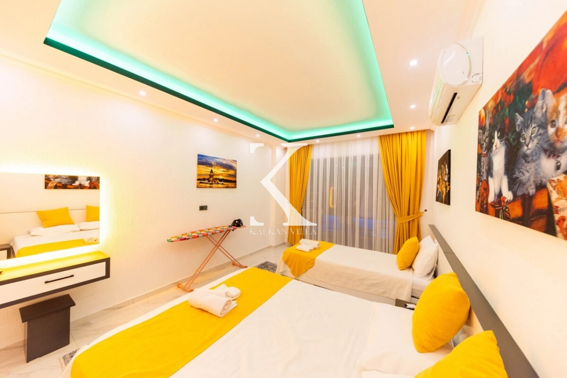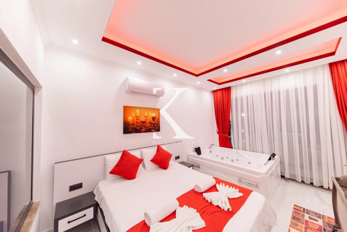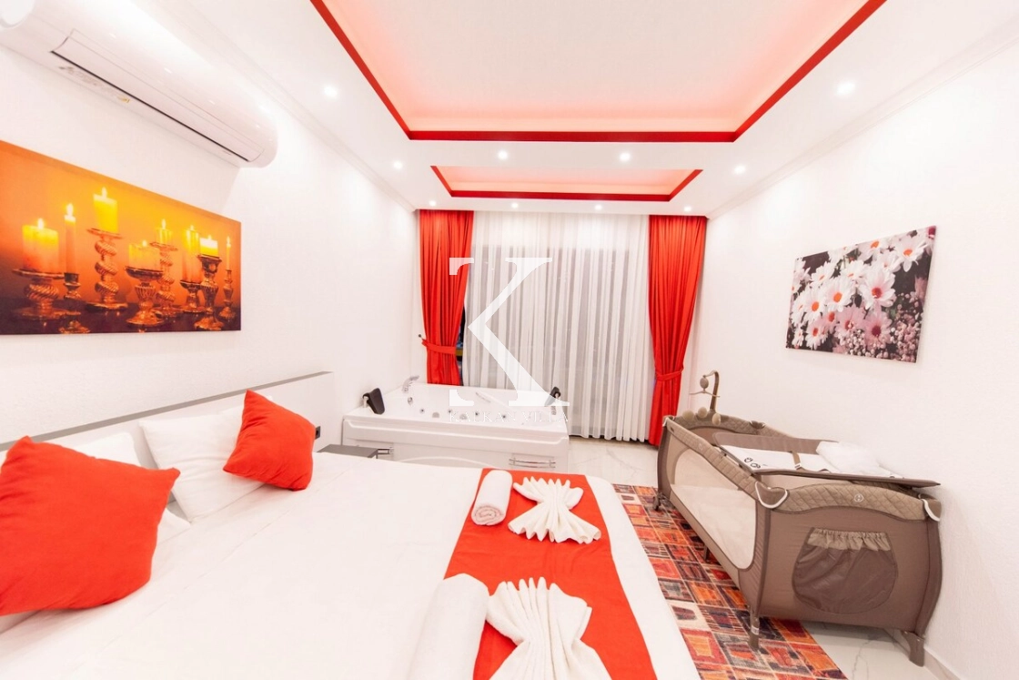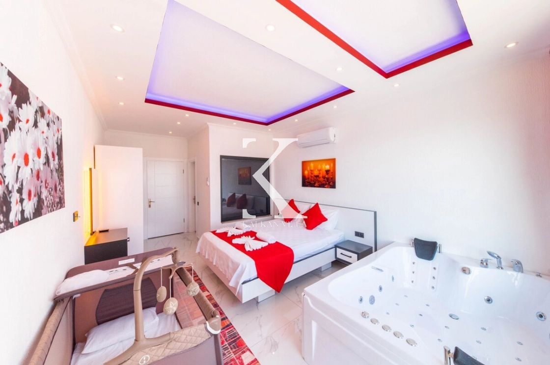 Modern ve konforlu şekilde dekore edilen villada; 2 adet çift kişilik yatak, 1 adet tek kişilik yatak, jakuzili süit yatak odası ve bebek yatağı bulunmaktadır. Geniş havuz terasında yer alan özel yüzme havuzu, salıncak, barbekü alanı ve oturma köşesi ile misafirlerine keyifli ve rahat bir tatil ortamı sağlar.