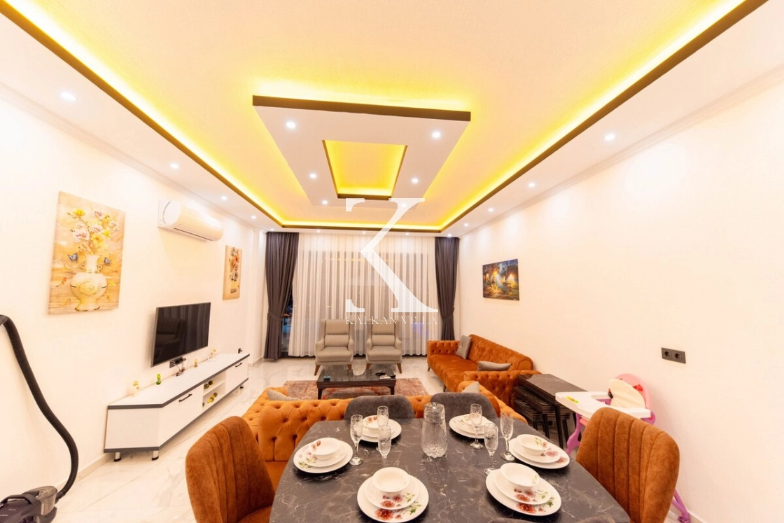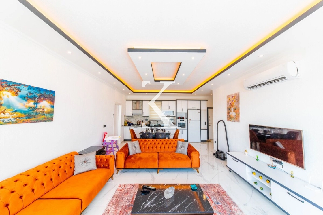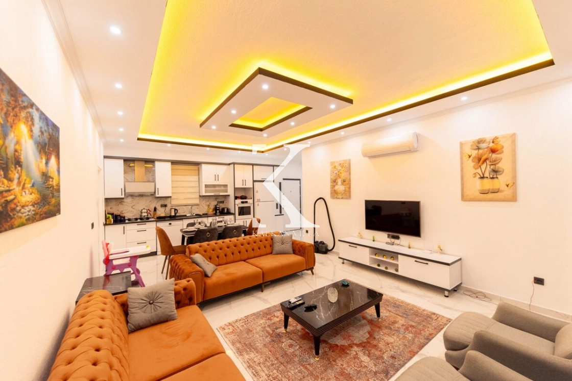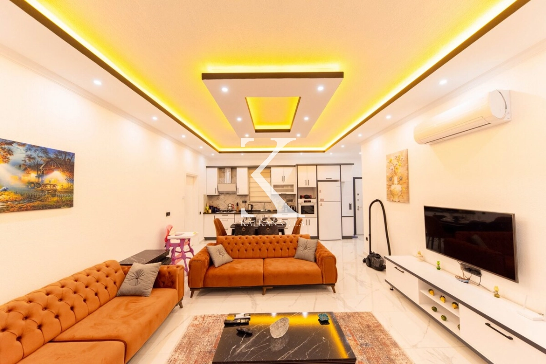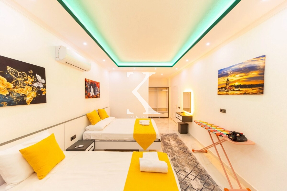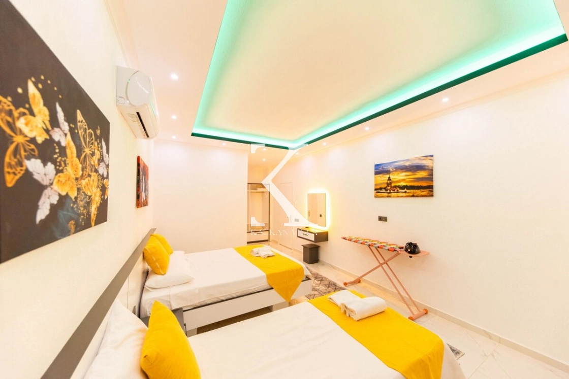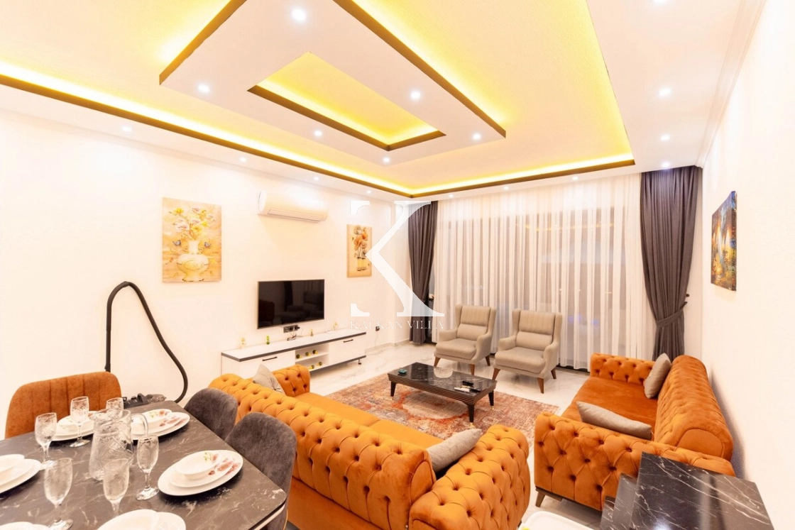 Modern ve lüks dizayna sahip salon içerisinde konforlu oturma grubu, TV, DVD oynatıcı, klima ve internet bulunmaktadır. Salondan havuz terasına doğrudan çıkış mevcuttur.