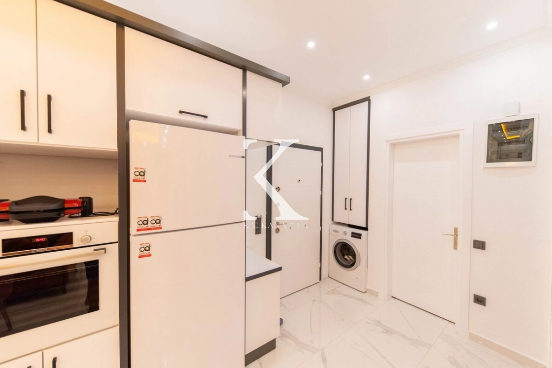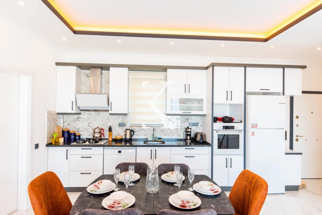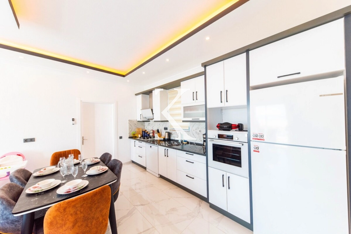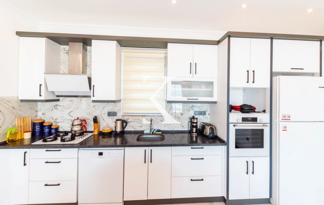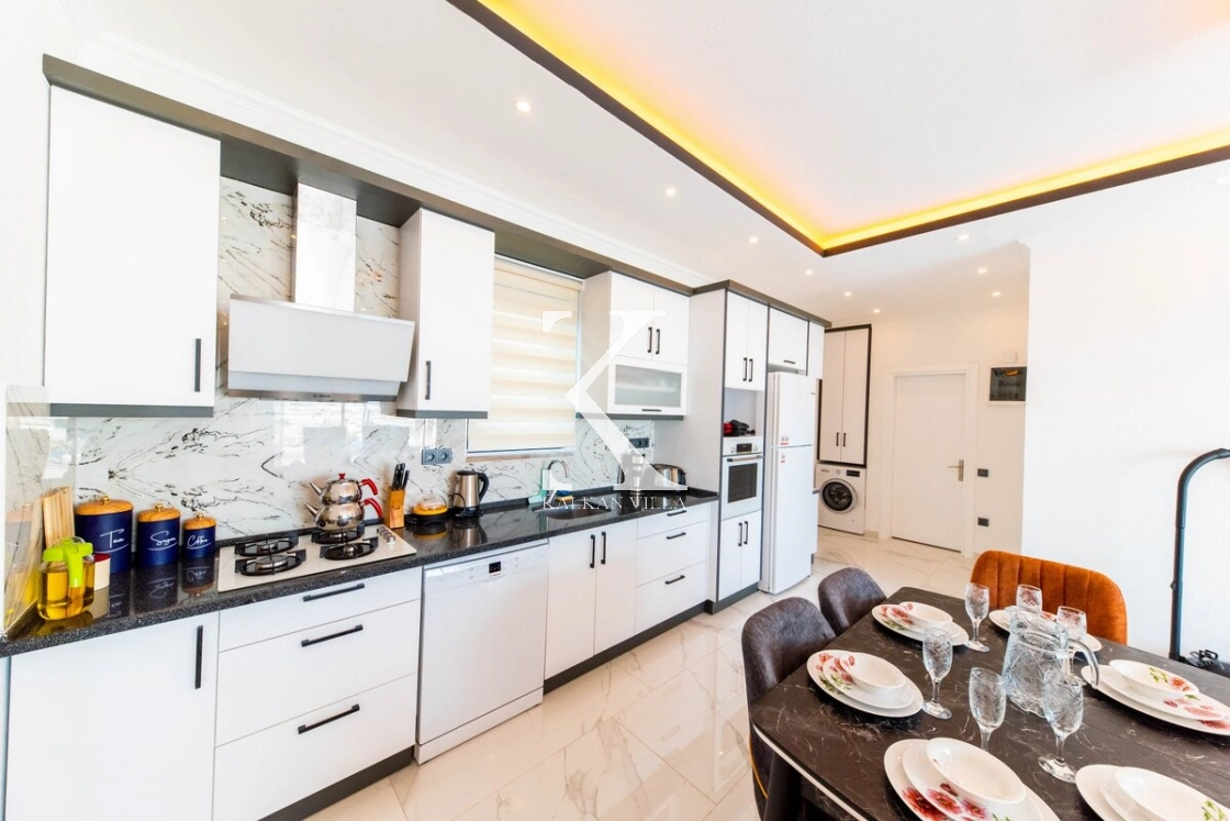 Evinizin mutfağını aratmayacak şekilde dizayn edilmiş Amerikan mutfak içerisinde; buzdolabı, bulaşık makinesi, çamaşır makinesi, ocak, fırın, elektrikli su ısıtıcısı, tost makinesi, yemek masası, yemek takımları ve yemek pişirme araç gereçleri yer almaktadır.