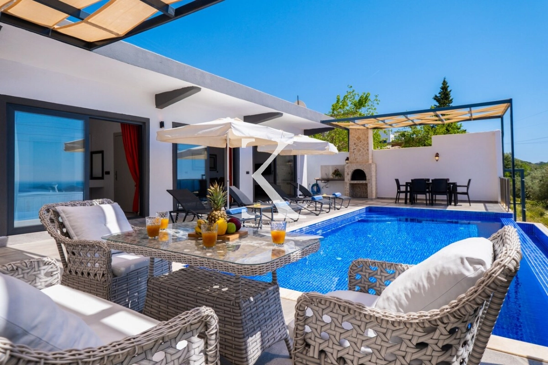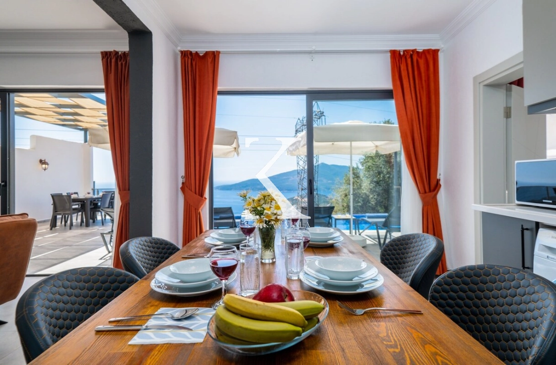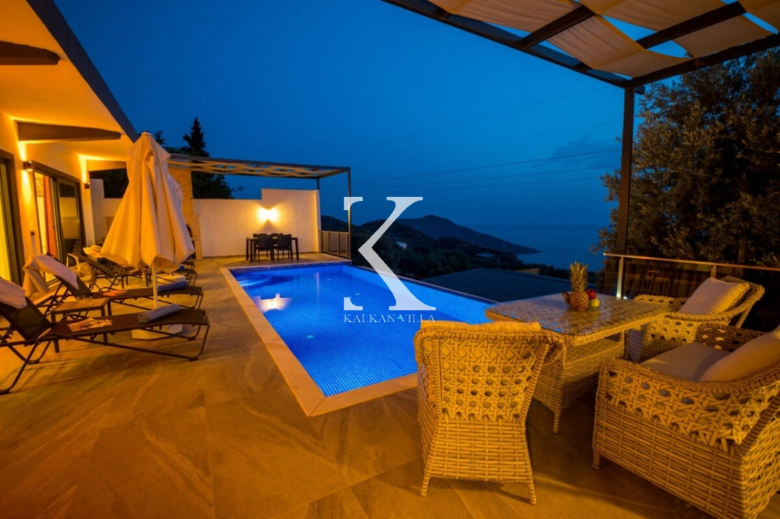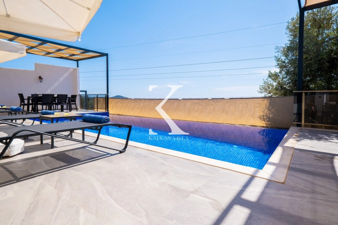 Gün doğumu ve gün batımı manzaraları eşliğinde unutulmaz anlar yaşayabileceğiniz villamız, tüm ihtiyaçlarınız düşünülerek modern ve eksiksiz şekilde dizayn edilmiştir. Deniz manzaralı özel terasında yüzme havuzu, şezlonglar, oturma alanı ve yemek masası bulunmakta olup, doğayla iç içe huzurlu bir tatil atmosferi sunmaktadır.