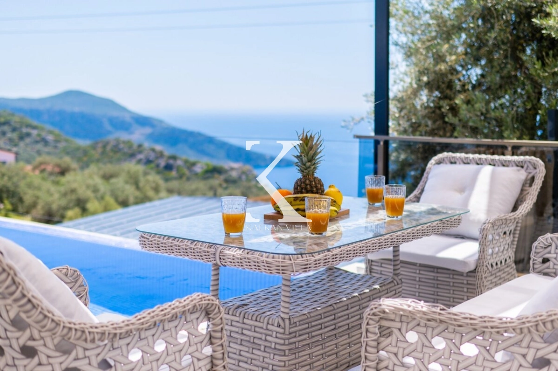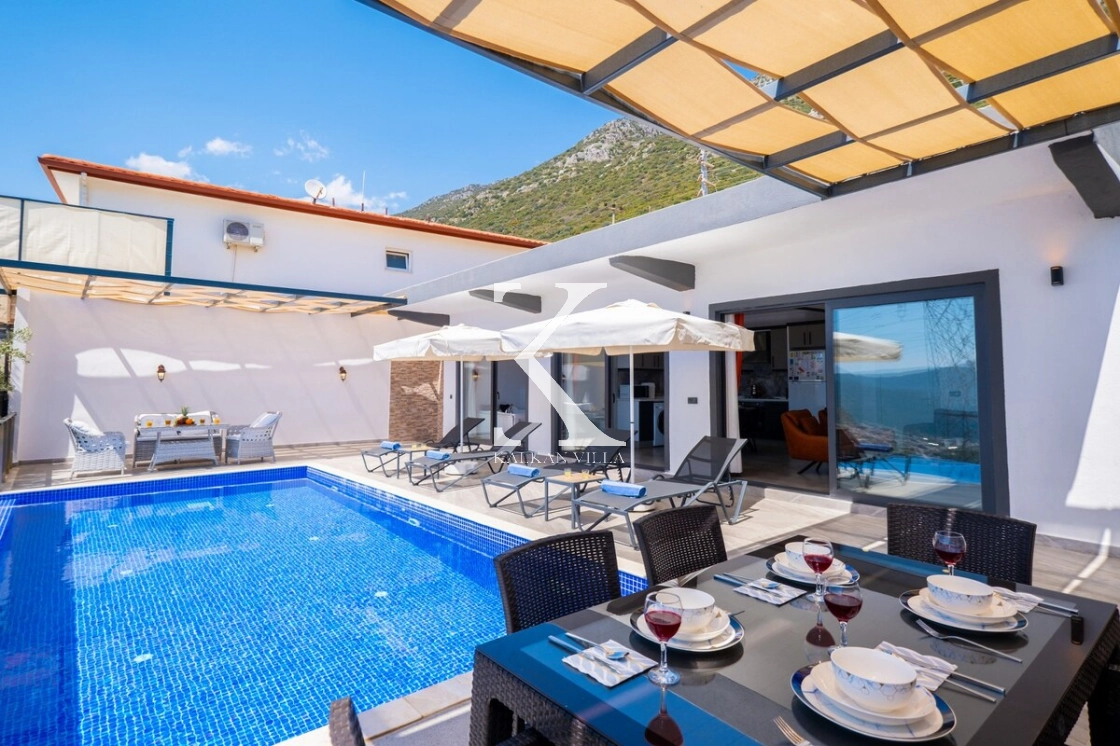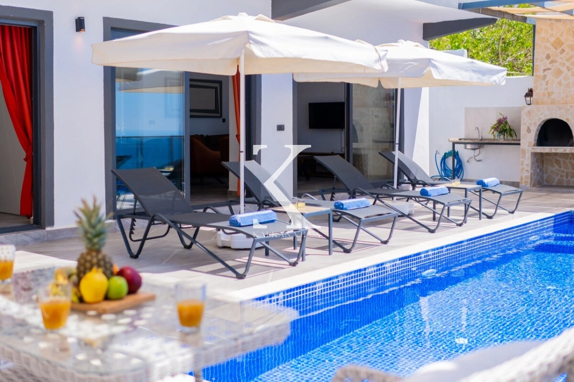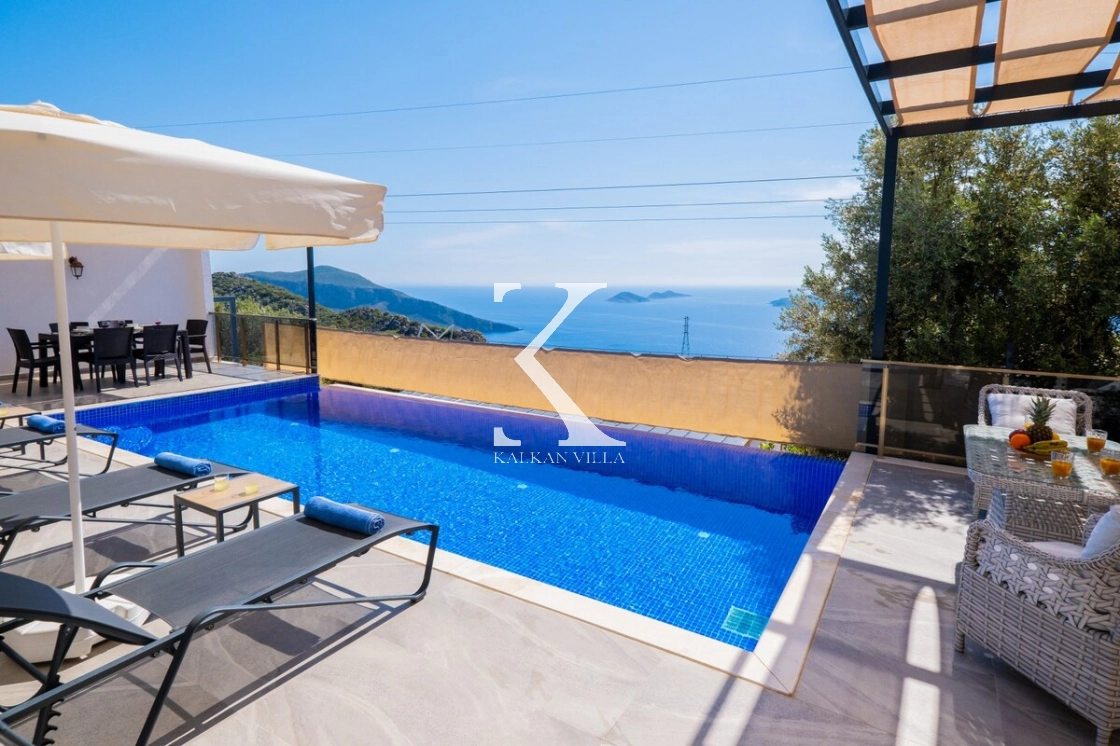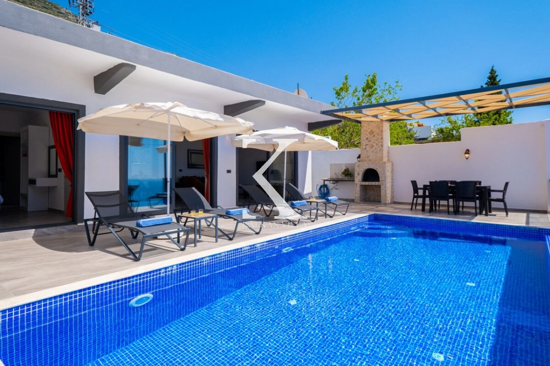 Gün doğumu ve gün batımı manzaraları eşliğinde unutulmaz anlar yaşayabileceğiniz villamız, tüm ihtiyaçlarınız düşünülerek modern ve eksiksiz şekilde dizayn edilmiştir. Deniz manzaralı özel terasında yüzme havuzu, şezlonglar, oturma alanı ve yemek masası bulunmakta olup, doğayla iç içe huzurlu bir tatil atmosferi sunmaktadır.
