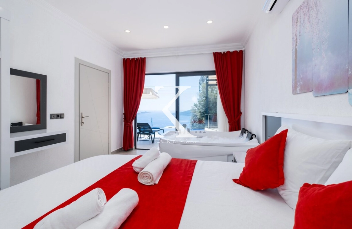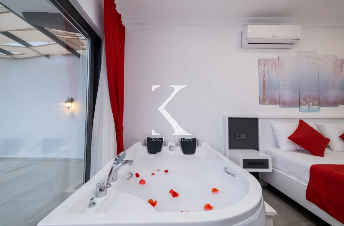 Yatak odalarından birinde yer alan jakuzi, tatilinize ekstra konfor ve keyif katarken; sakin ortamı ve manzarasıyla Villa Asya Bella, lüks ve huzuru bir arada yaşamak isteyen misafirler için mükemmel bir tercihtir.