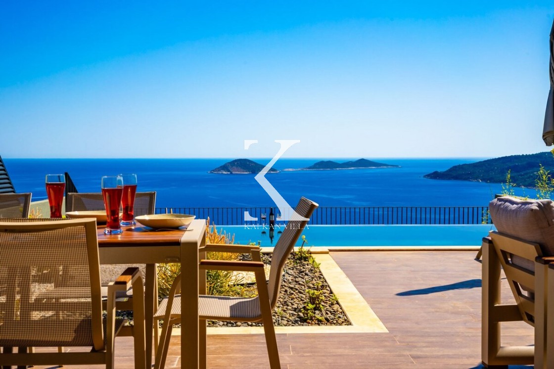 Kalkan Kalamar bölgesinde, deniz ve adalar manzaralı konum
