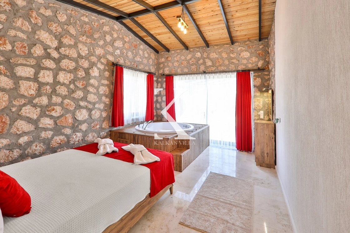 Lüks iç donanıma sahip olan villa, özellikle balayı çiftleri düşünülerek özenle tasarlanmıştır. 2 yatak odası, açık plan mutfak–salon alanı ve jakuzi ile donatılan Villa Azra Naz, modern konforu doğanın huzuruyla bir araya getirir. Tam korunaklı özel yüzme havuzu sayesinde, mahremiyetine önem veren muhafazakâr misafirler için de güvenli ve rahat bir tatil imkânı sunar.