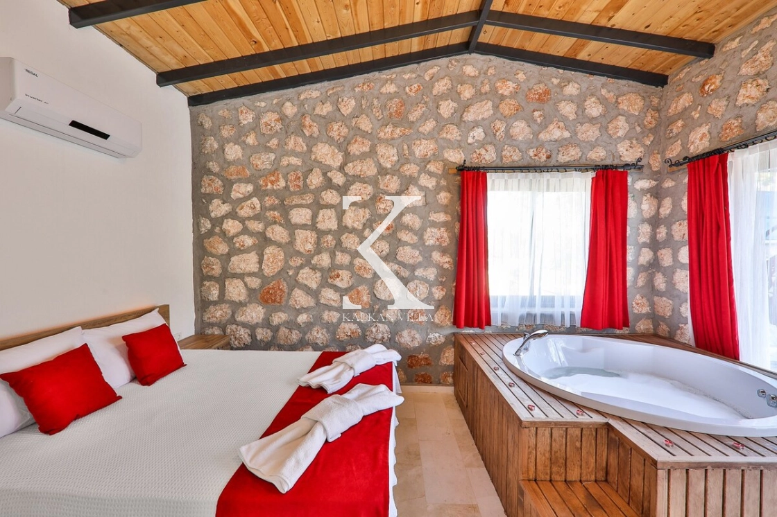 Çift kişilik yatak, balkon, elbise dolabı, komodin, jakuzi, klima ile özel banyo ve tuvalet bulunmaktadır.