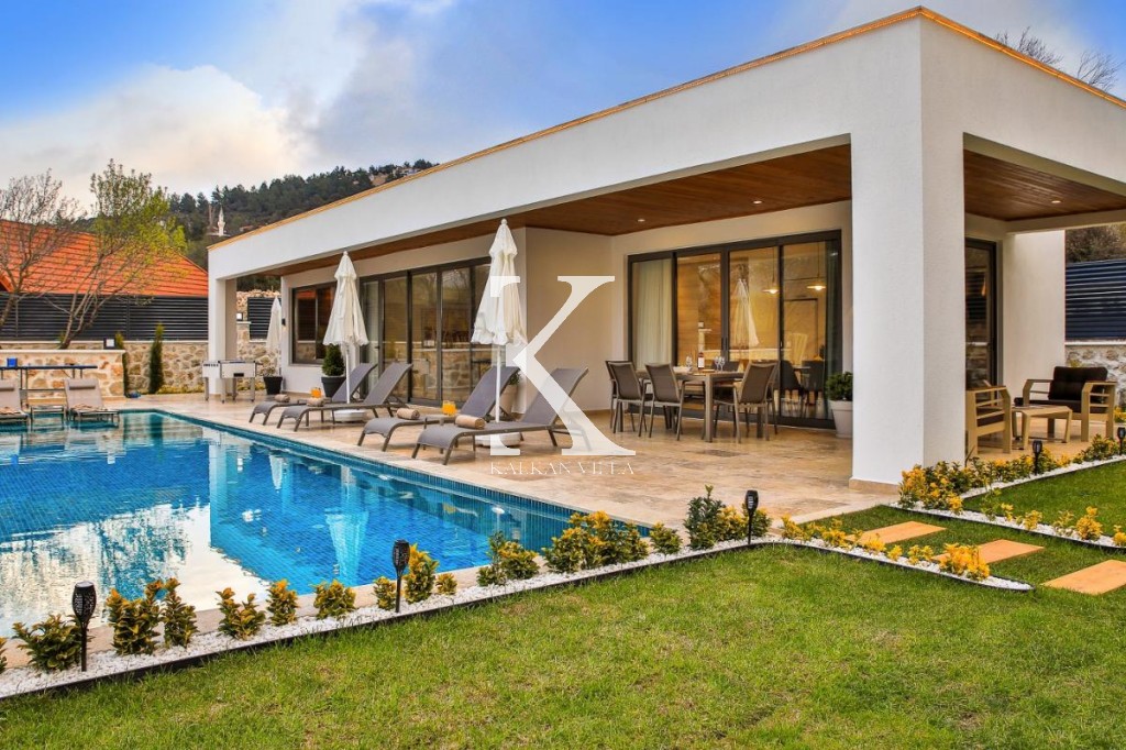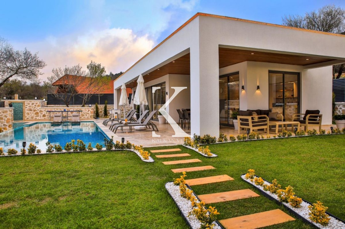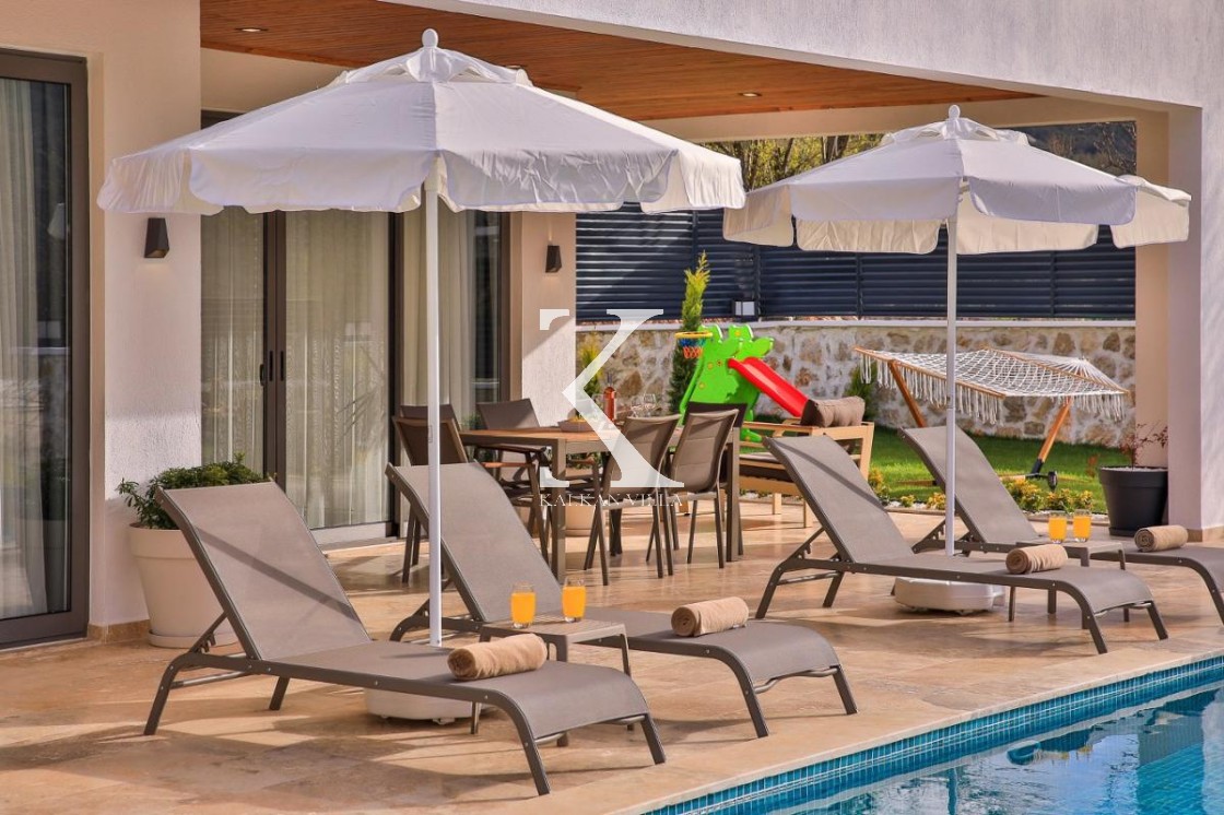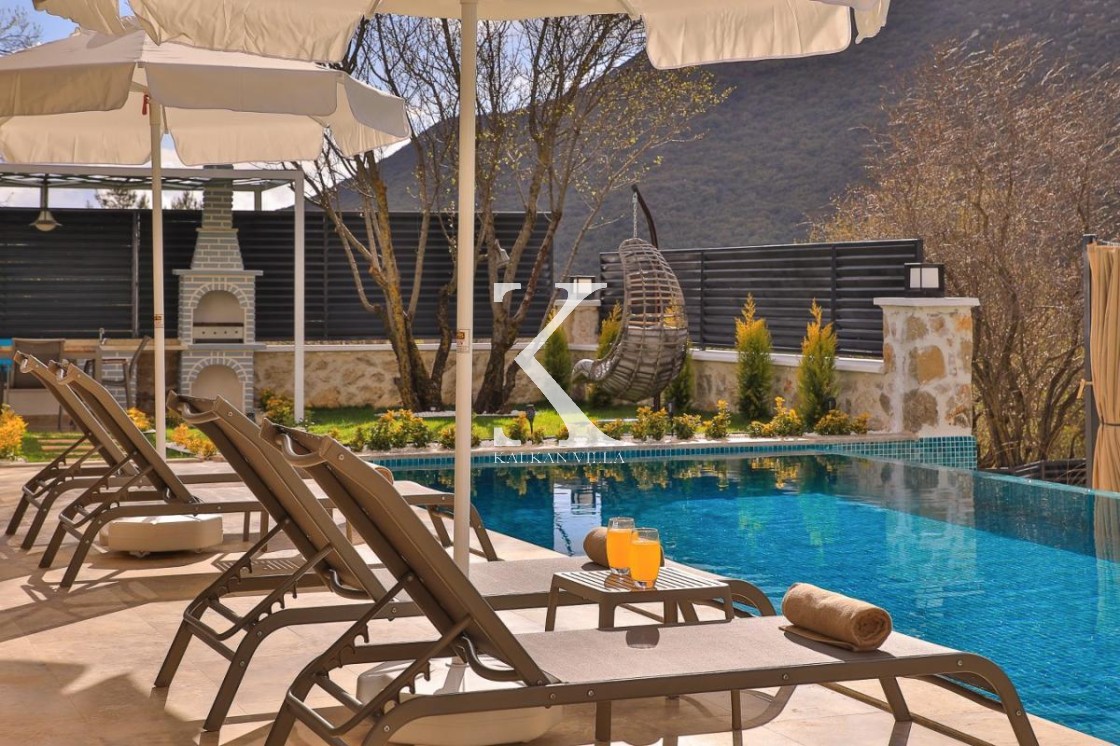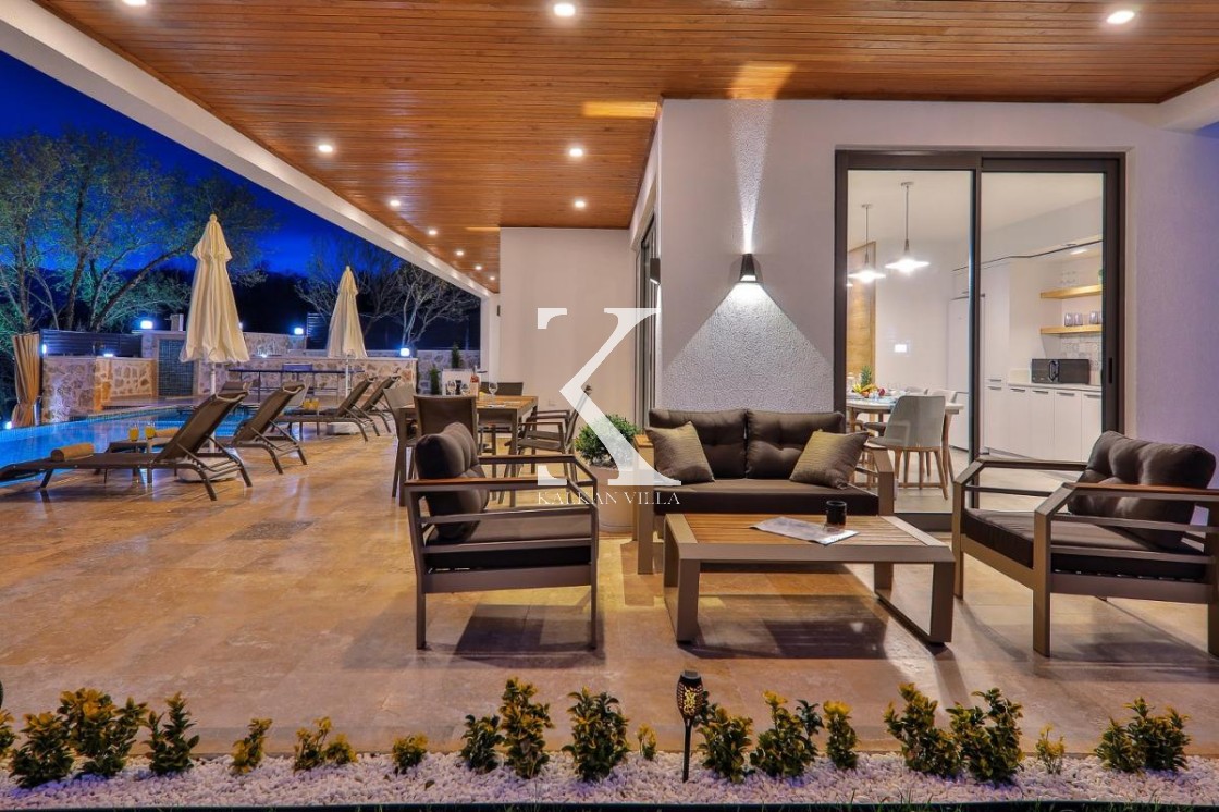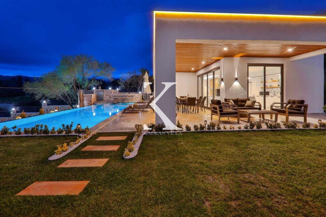 Villa Badem Sarıbelen, Kalkan’ın sakin ve doğa ile iç içe bölgelerinden Sarıbelen Köyü’nde, huzurlu konumu ve geniş bahçesiyle öne çıkan özel bir tatil villasıdır.