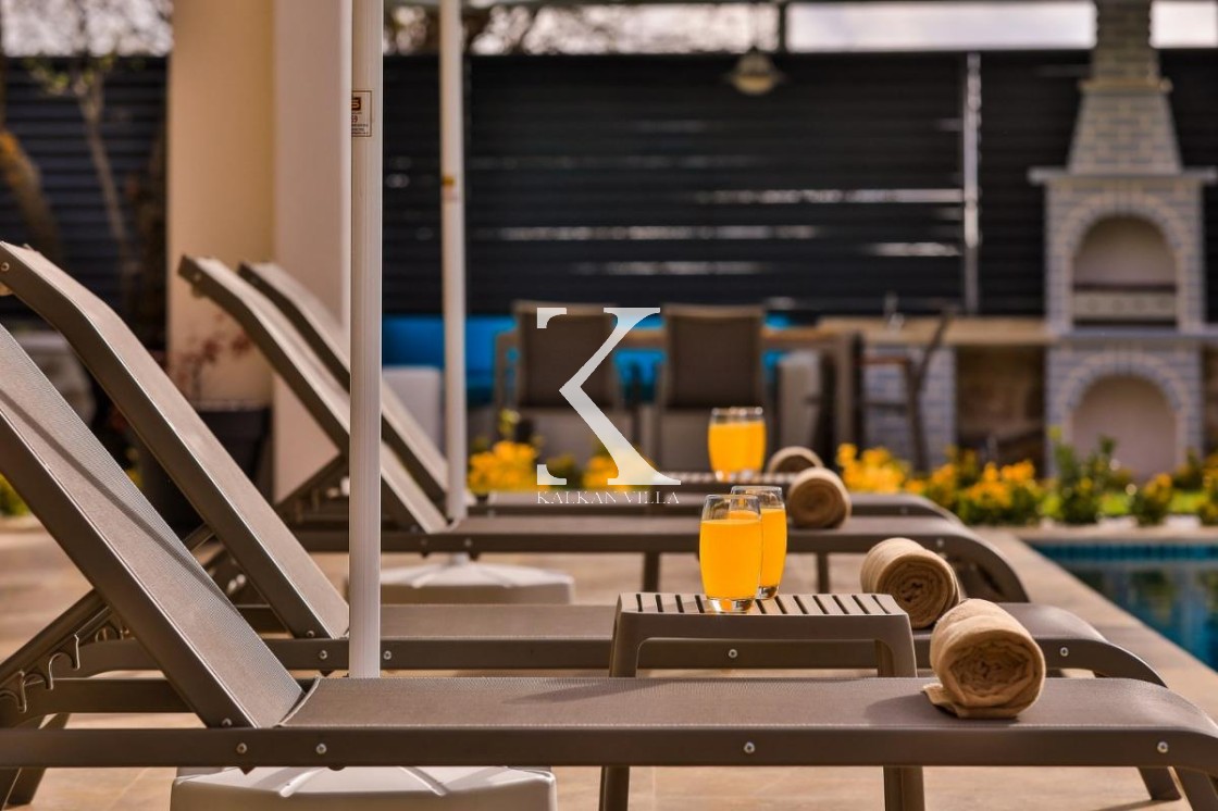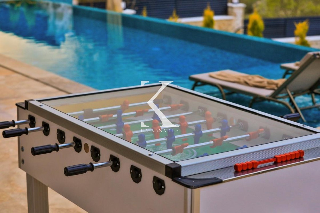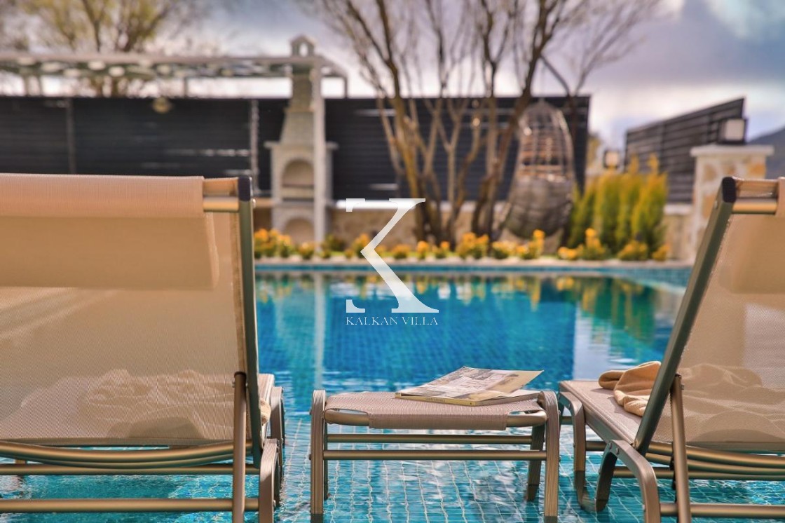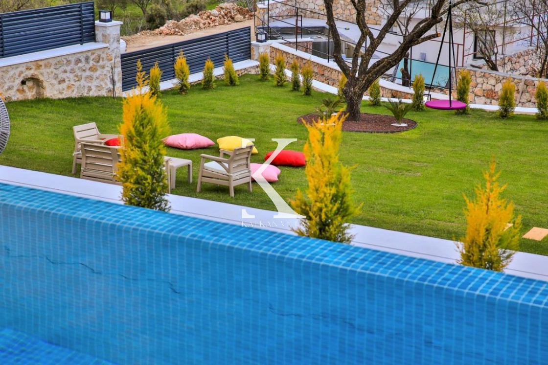 Gözlerden uzak, korunaklı havuz alanı sayesinde mahremiyete önem veren misafirler için güvenli bir ortam sağlar. Villanın geniş bahçesinde; özel yüzme havuzu, şezlonglar, güneş şemsiyeleri, salıncak, hamak, masa tenisi, langırt, çocuk oyun alanı, barbekü ve açık yemek alanı gibi birçok detay düşünülmüştür. Ebeveyn odasında yer alan jakuzi ise tatilinize ekstra konfor ve romantizm katar.