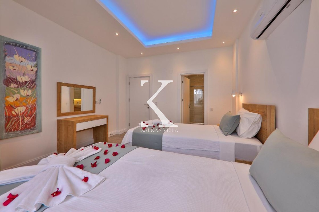 2 adet tek kişilik yatak, elbise dolabı, klima, makyaj masası, komodin, banyo & WC.