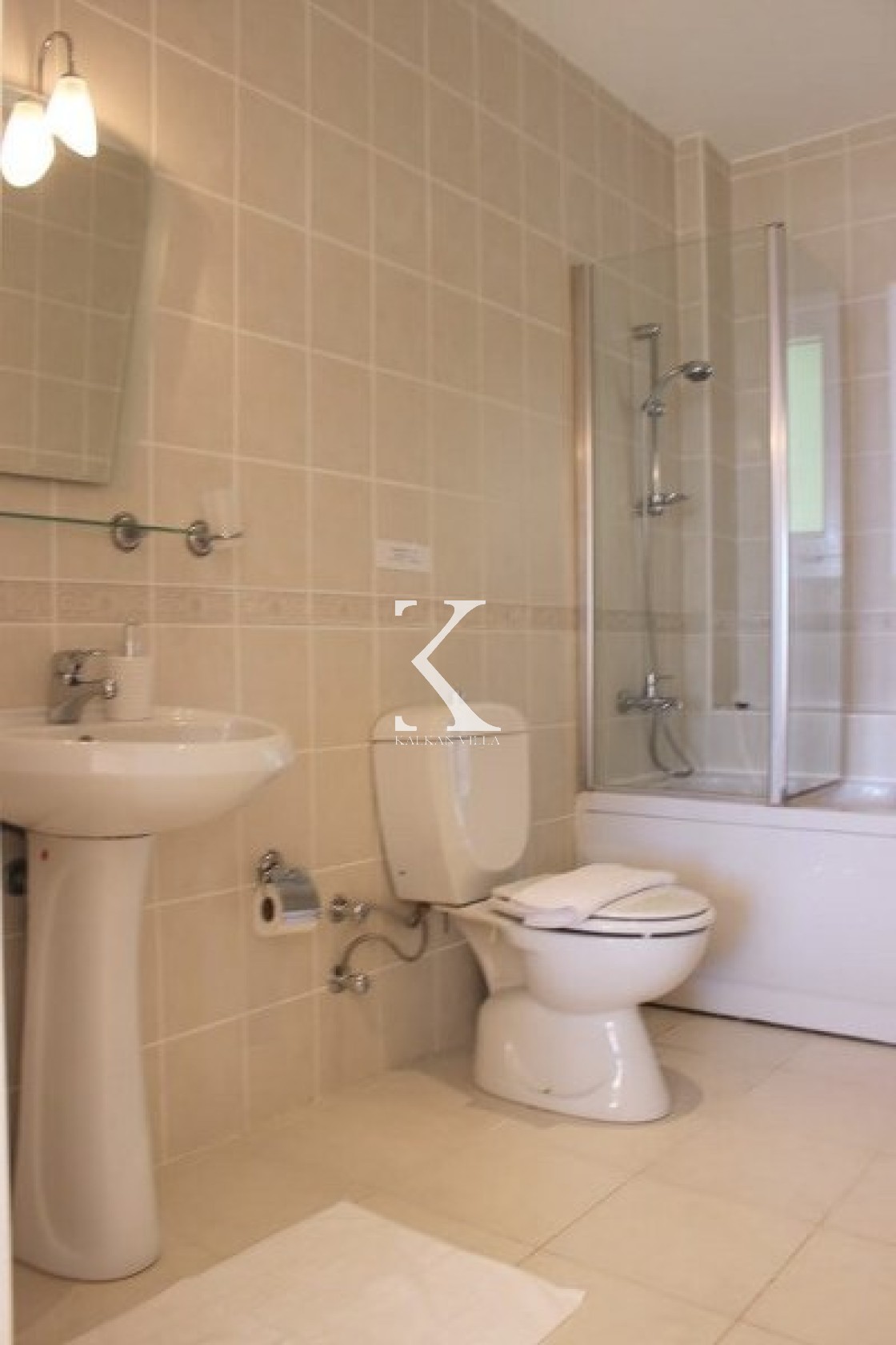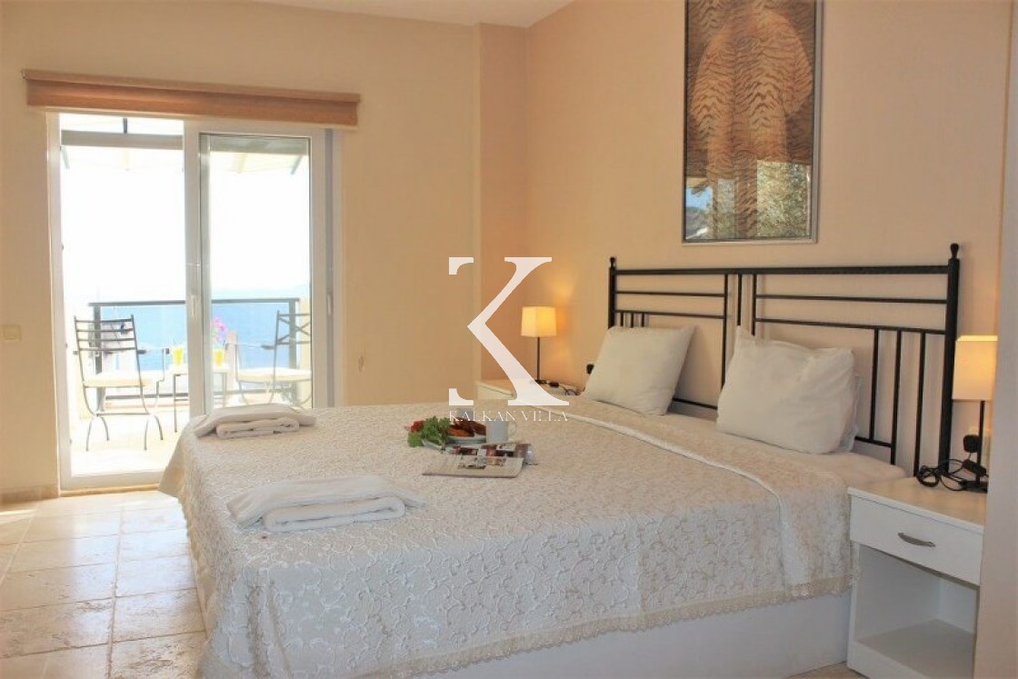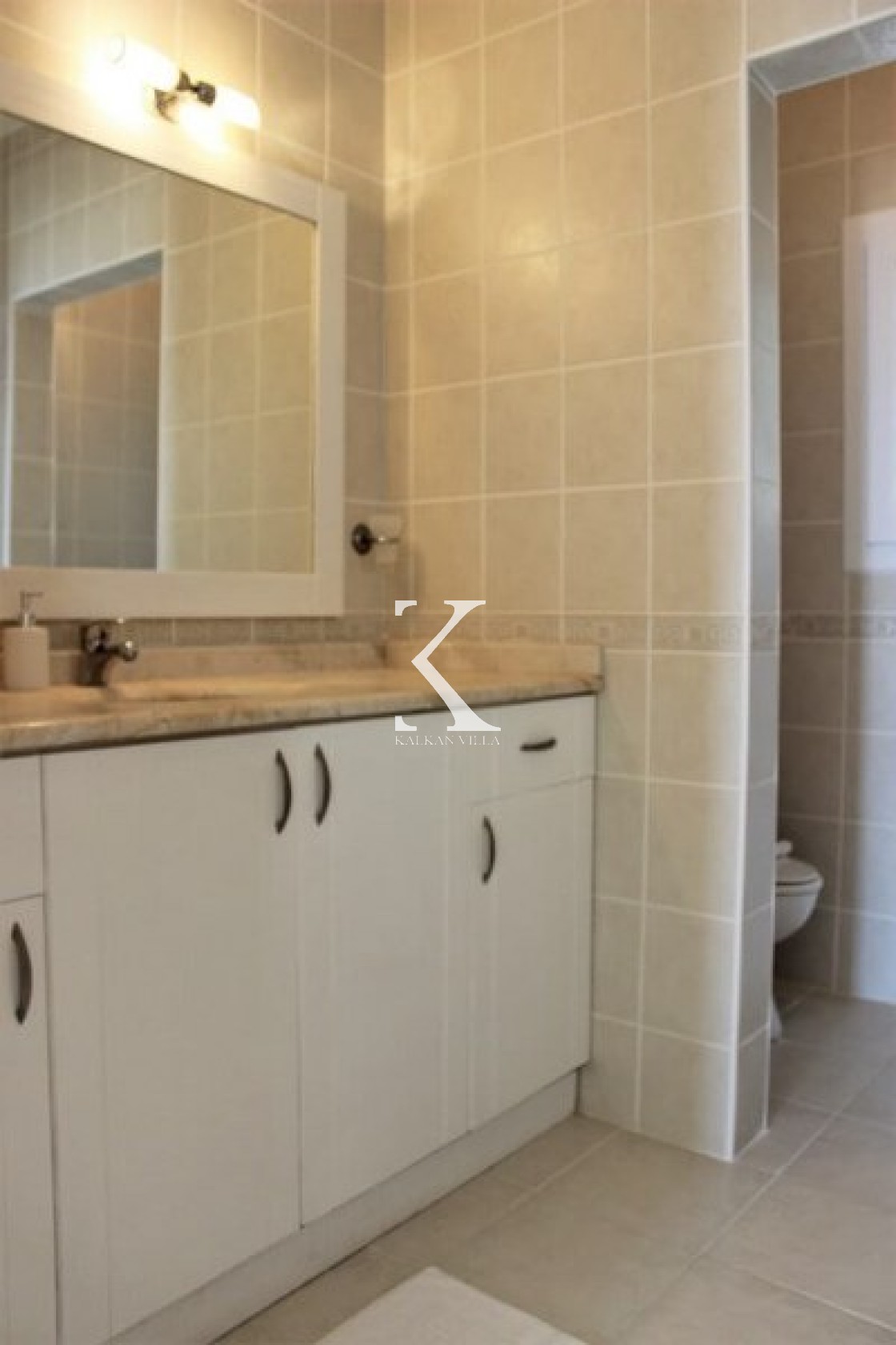 Deniz manzaralı, ferah: oturma grubu, plazma TV + uydu, şömine, klima, yemek masası, ütü & ütü masası; havuz terasına direkt çıkış.