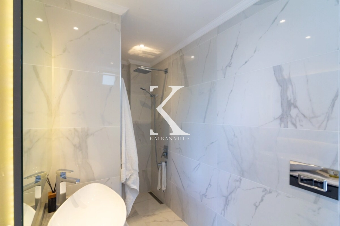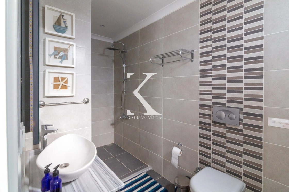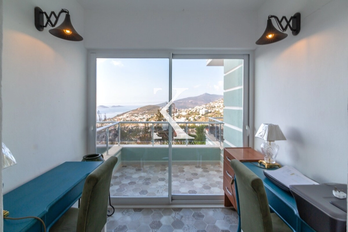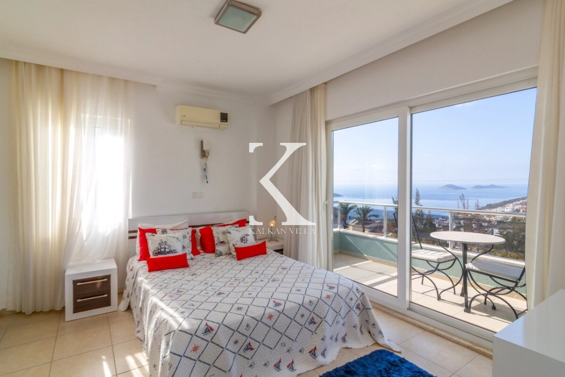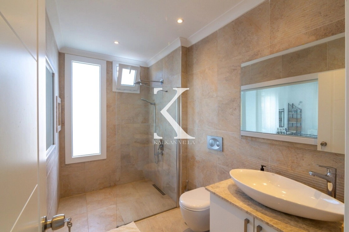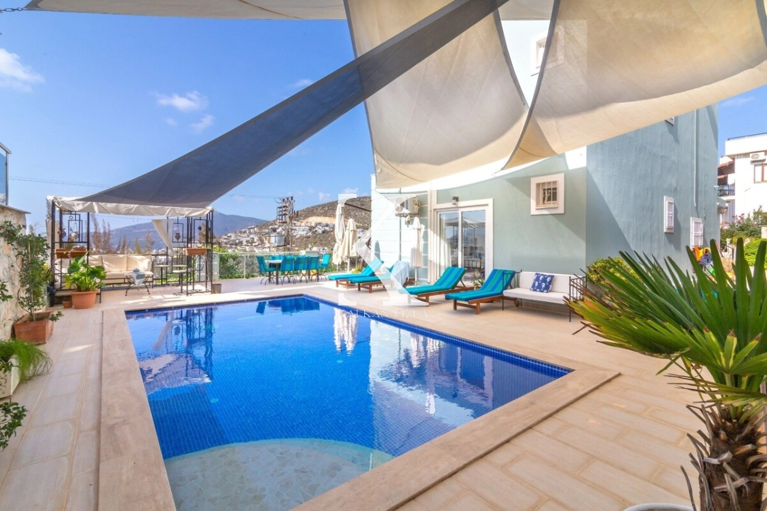 Kalkan merkeze ve plaja olan yakınlığı sayesinde tatil boyunca ulaşım kolaylığı sağlar. Modern mimarisi ve ferah tasarımıyla dikkat çeken villanın salonu, deniz manzarasına açılan geniş cam kapıları sayesinde gün boyu doğal ışık alır.