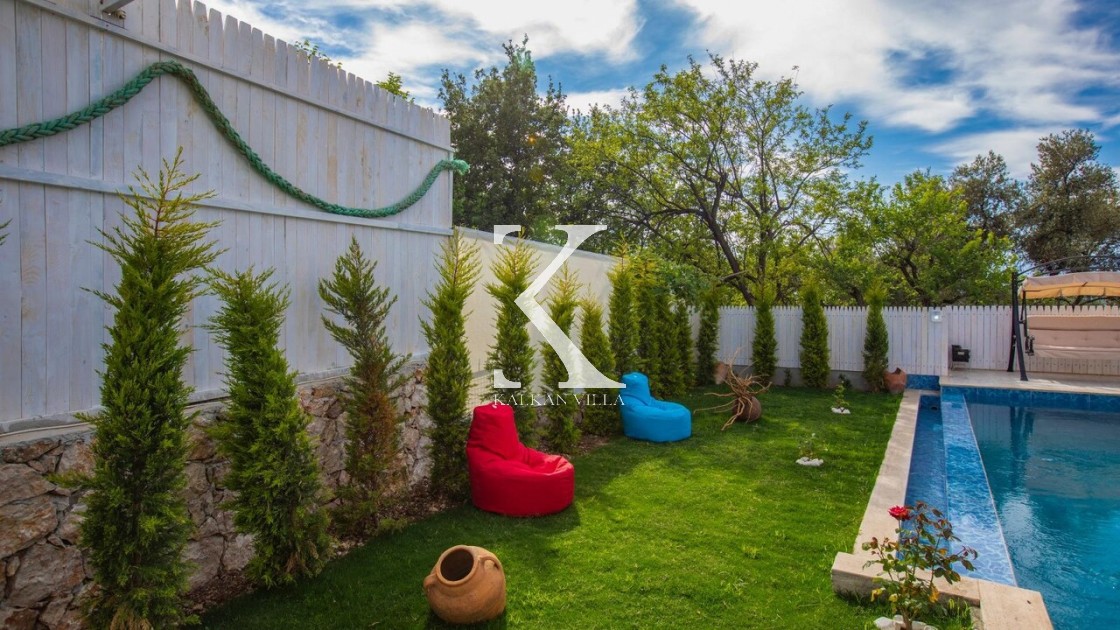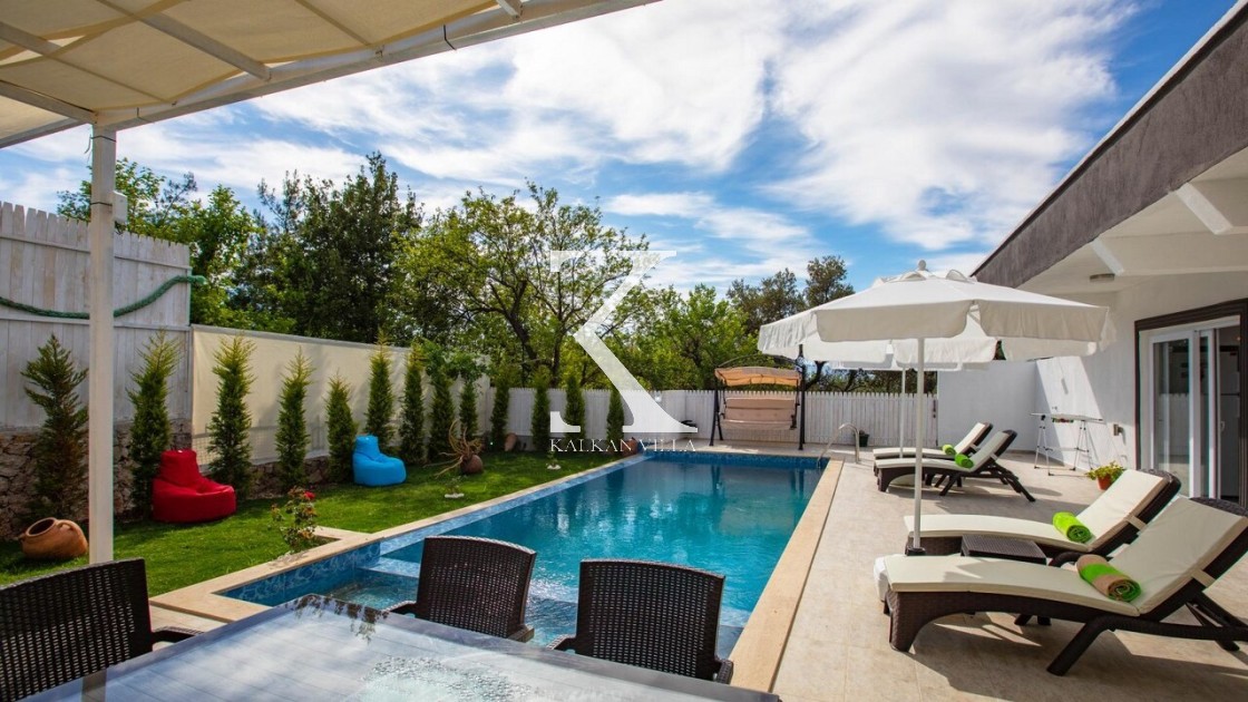 Kalkan Üzümlü bölgesinde, doğanın içinde sakin bir konumda yer alan villamızda güne kuş sesleriyle uyanabilir, yemyeşil manzara eşliğinde kahvaltınızın tadını çıkarabilirsiniz. Tam korunaklı havuz alanında özgürce yüzebilir, şezlongda güneşlenebilir, günün tadını doyasıya çıkarabilirsiniz.