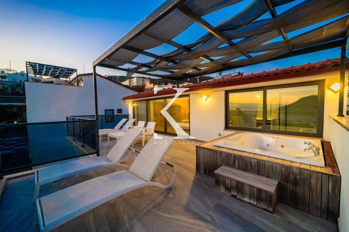 Ayrıca, manzarayı kesintisiz şekilde izleyebileceğiniz teras alanında; salıncak, jakuzi ve ekstra şezlonglar yer almakta olup, Villa Bella Kalkan’ı özellikle manzara ve rahatlama arayan misafirler için son derece cazip kılmaktadır.