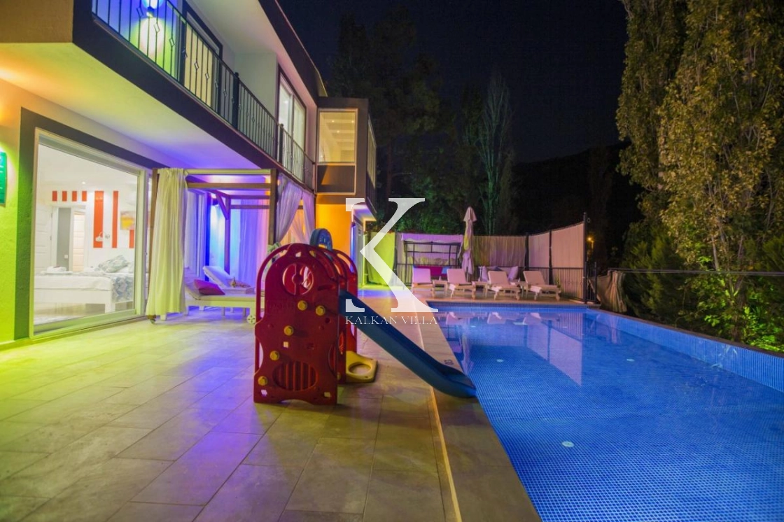 Villa Bella, Kalkan’ın doğal güzellikleriyle öne çıkan İslamlar Köyü’nde konumlanan, muhafazakâr konseptte tasarlanmış lüks bir tatil villasıdır. 3 yatak odalı ve 6 kişilik konaklama kapasitesi ile özellikle aileler ve arkadaş grupları için ideal bir tatil alternatifi sunmaktadır.