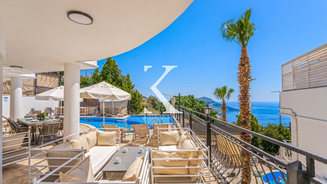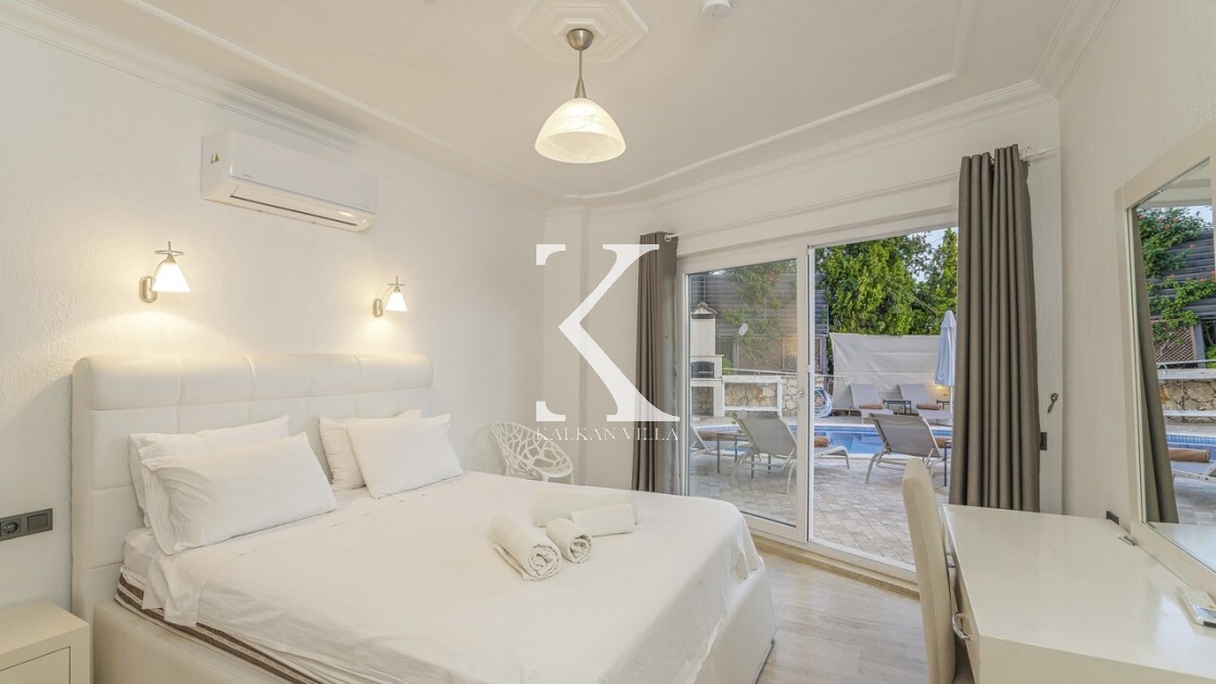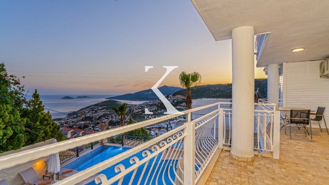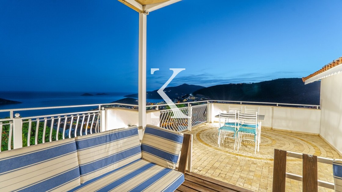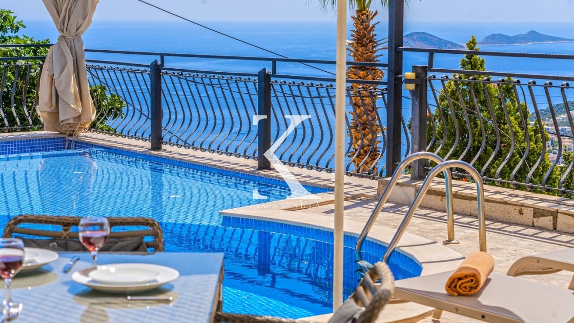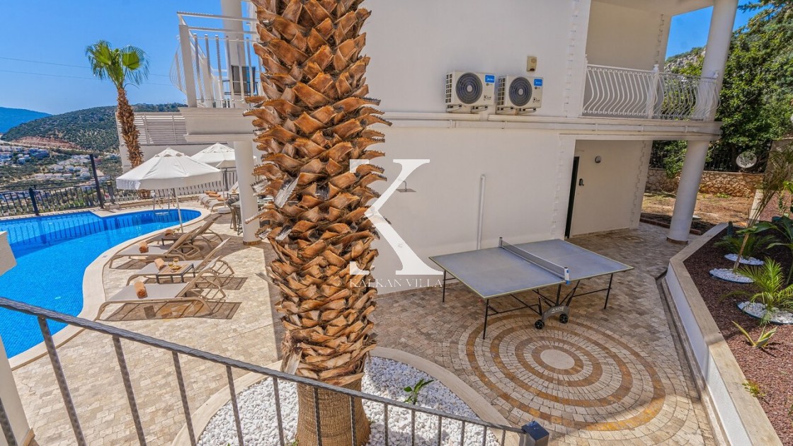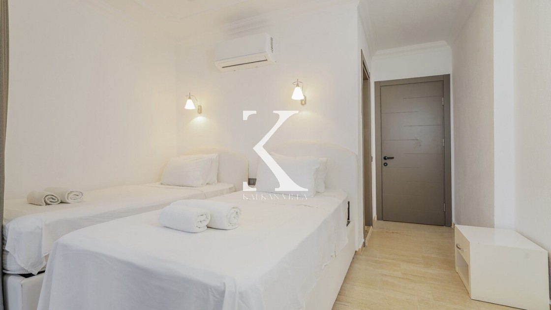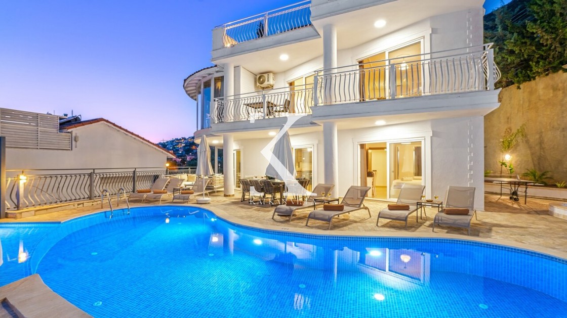 5 süit oda – 10 kişi, tripleks mimari, korunaklı bahçe ve ısıtmalı kapalı havuz. Kalkan Koyu’na hâkim panoramik manzara.
