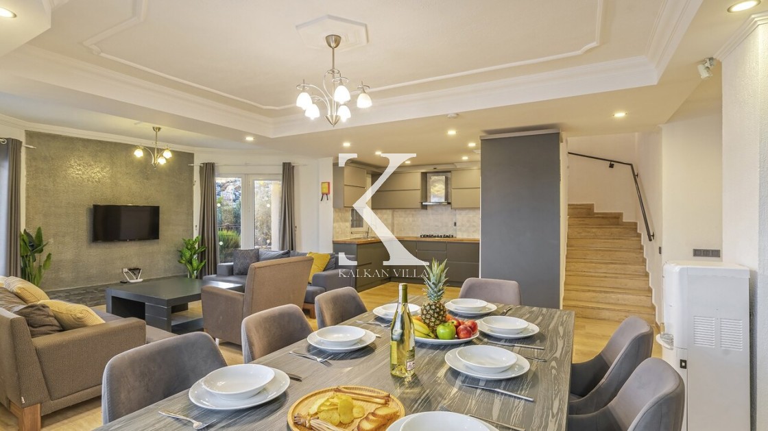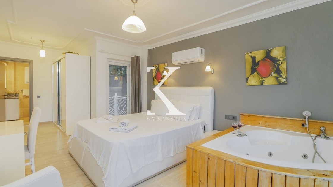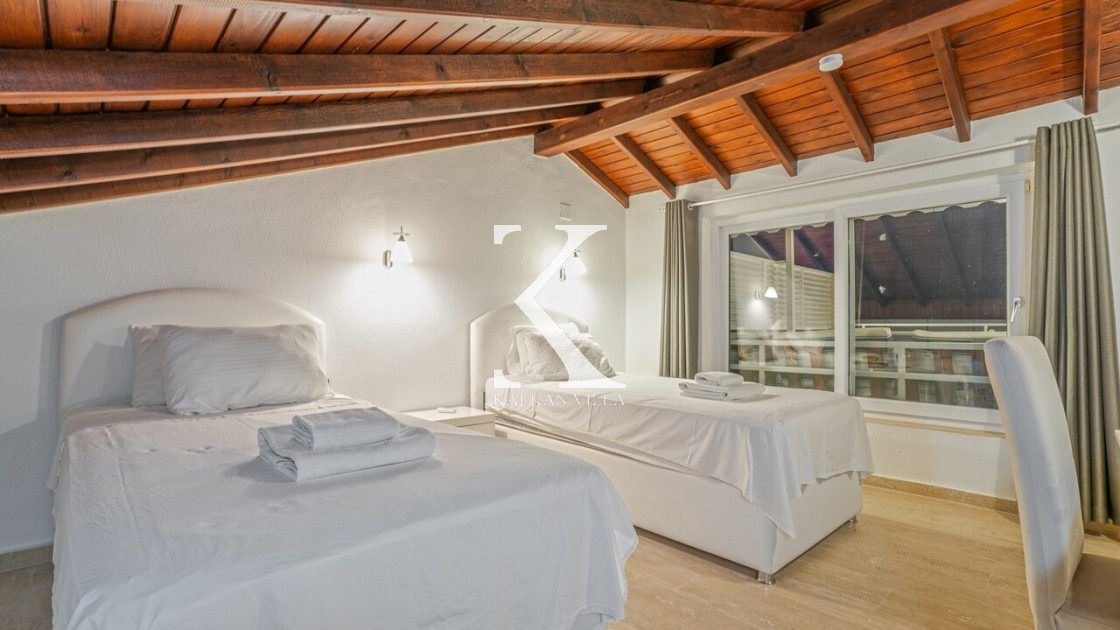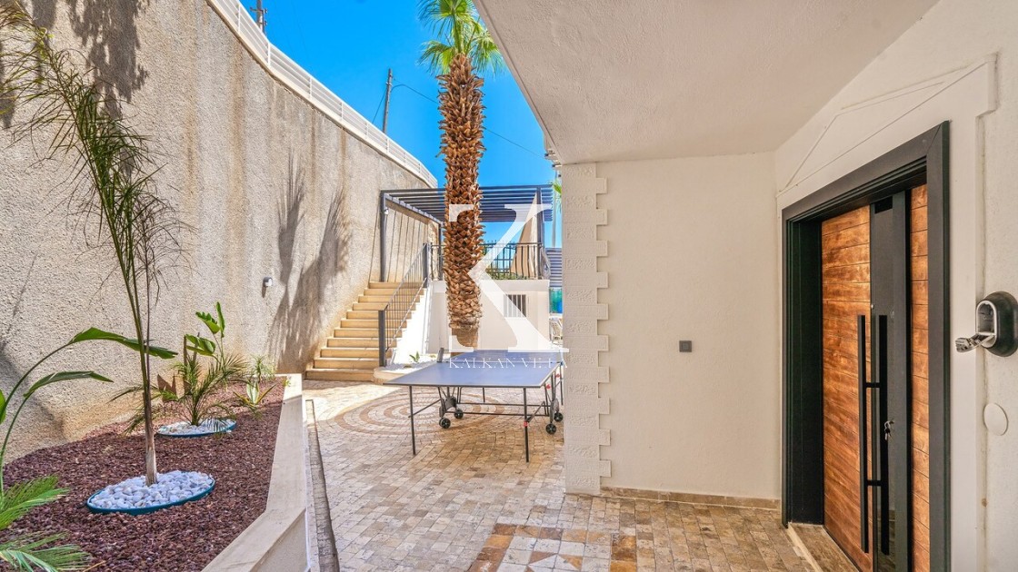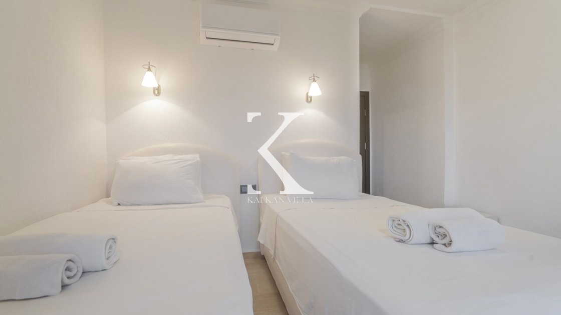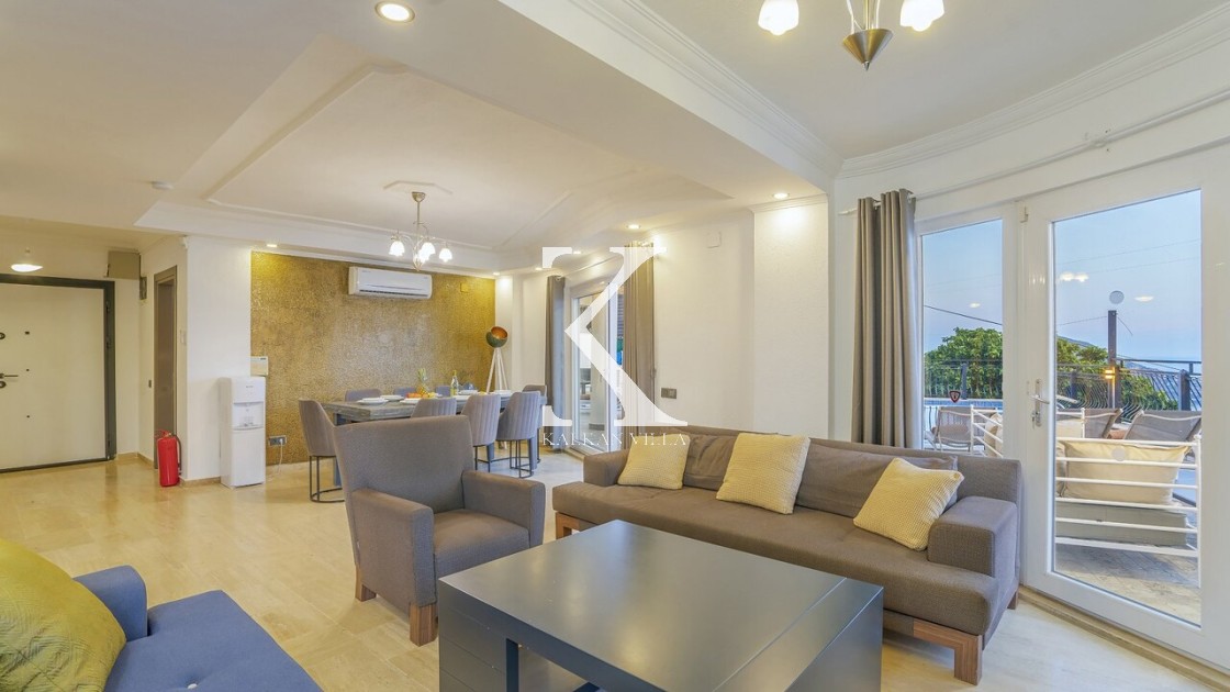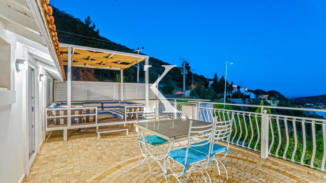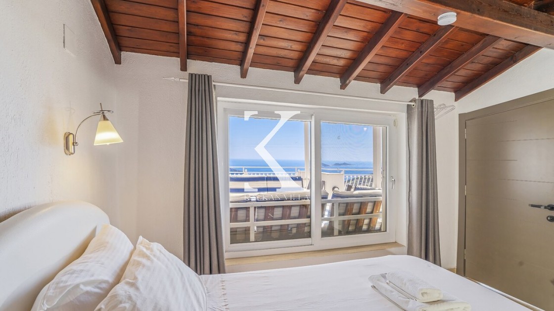 5 süit oda – 10 kişi, tripleks mimari, korunaklı bahçe ve ısıtmalı kapalı havuz. Kalkan Koyu’na hâkim panoramik manzara.