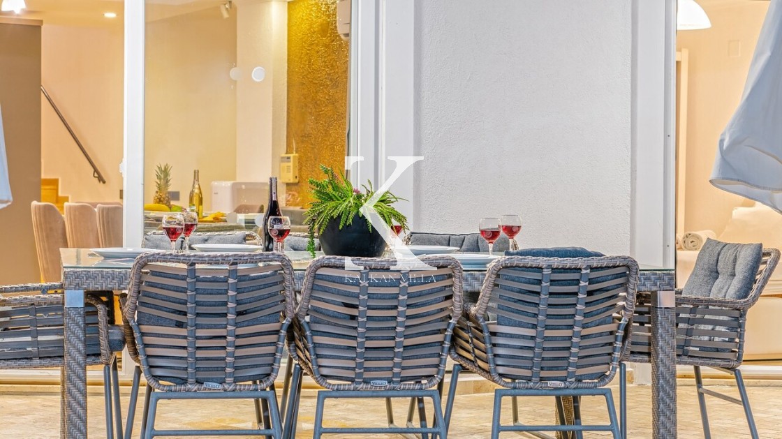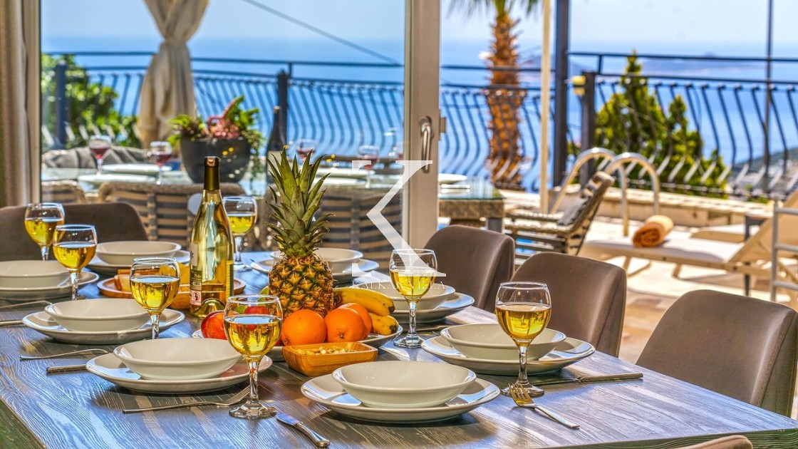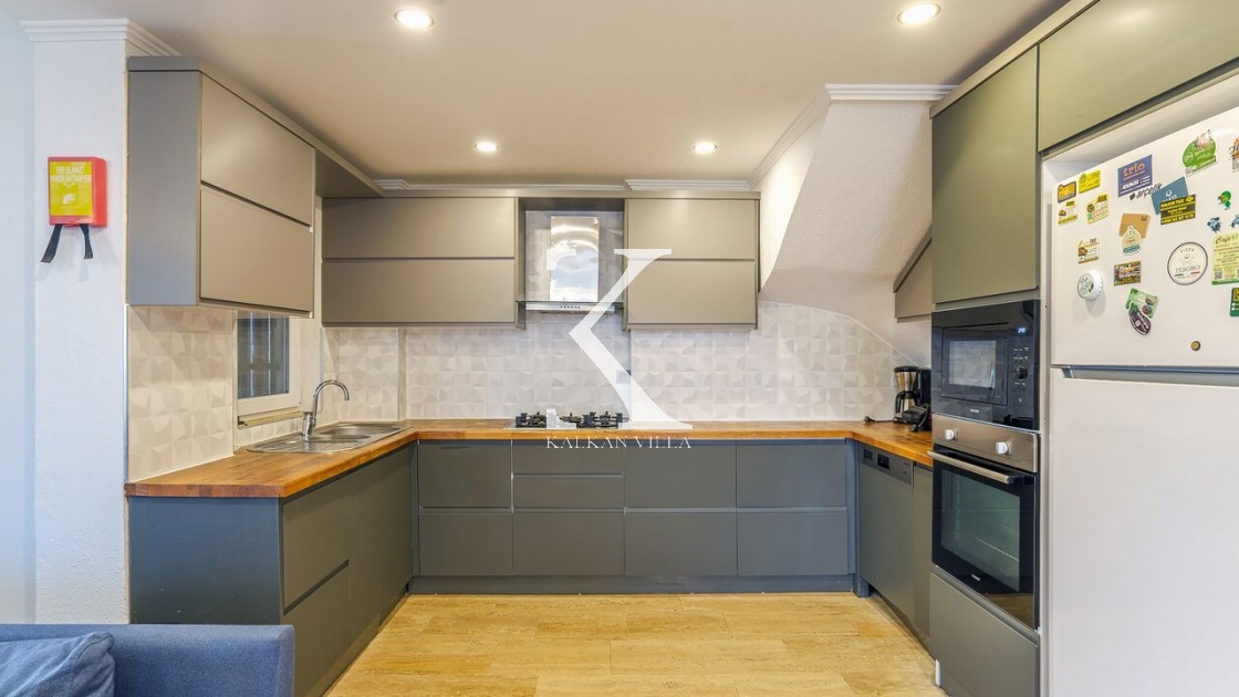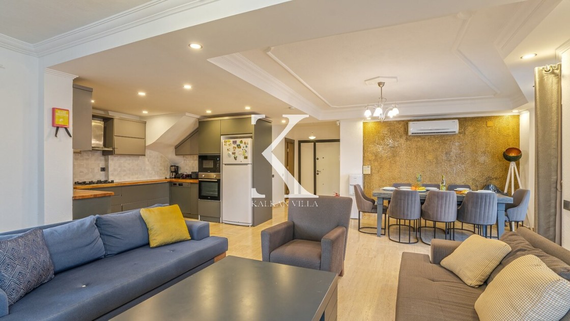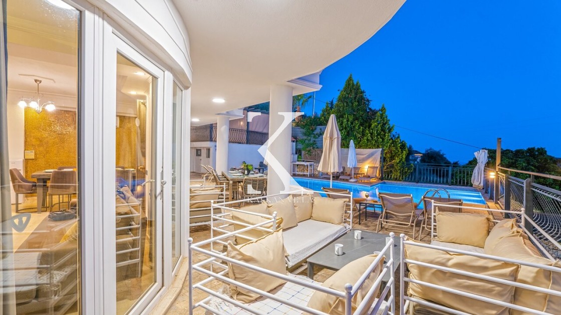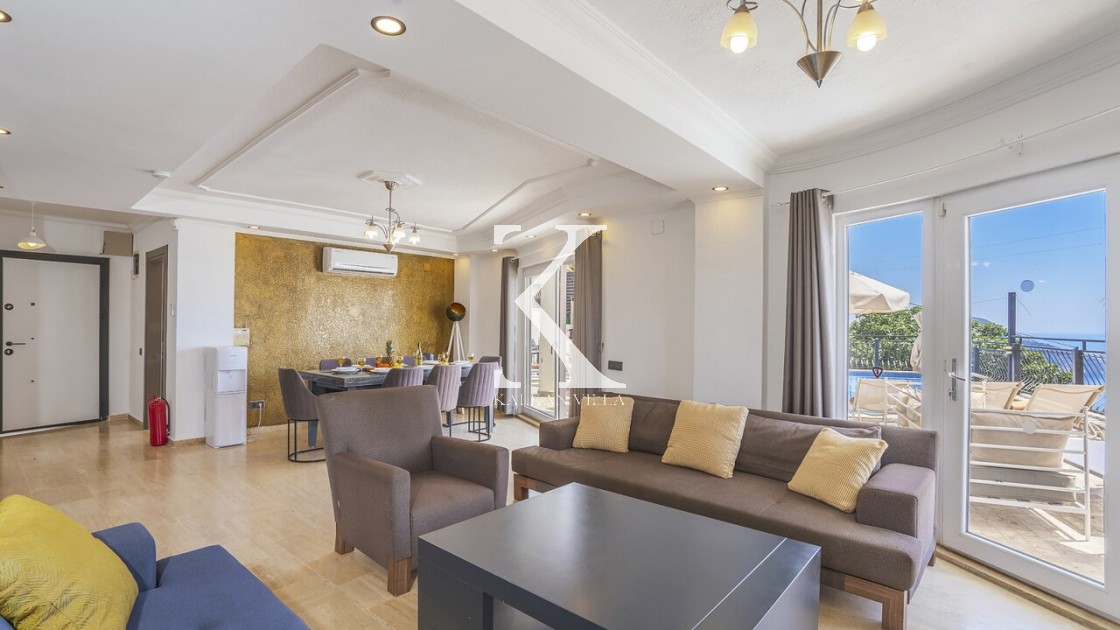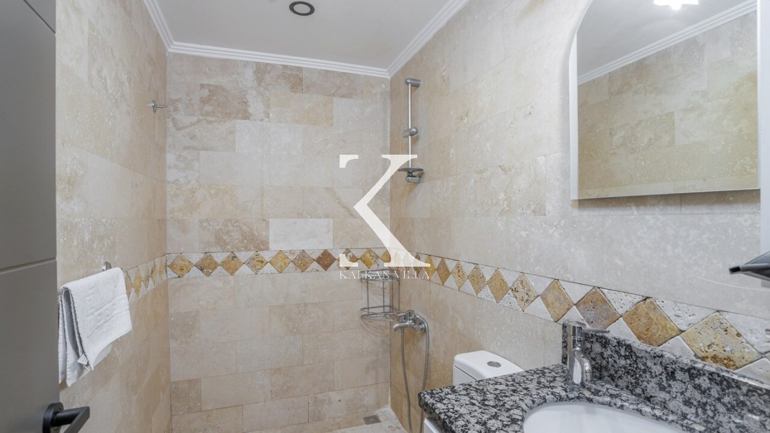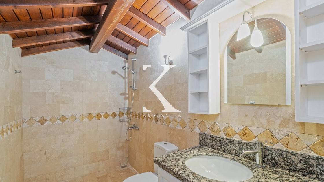 5 süit oda – 10 kişi, tripleks mimari, korunaklı bahçe ve ısıtmalı kapalı havuz. Kalkan Koyu’na hâkim panoramik manzara.