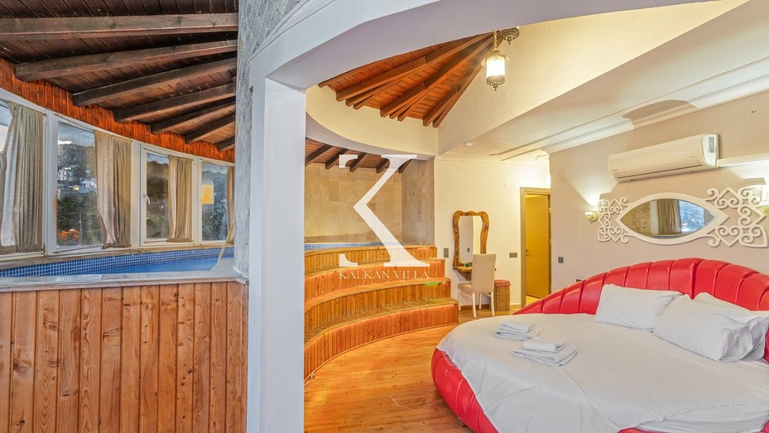 Lüks detay: Master süitte yuvarlak yatak + jakuzi + ısıtmalı kapalı havuz
