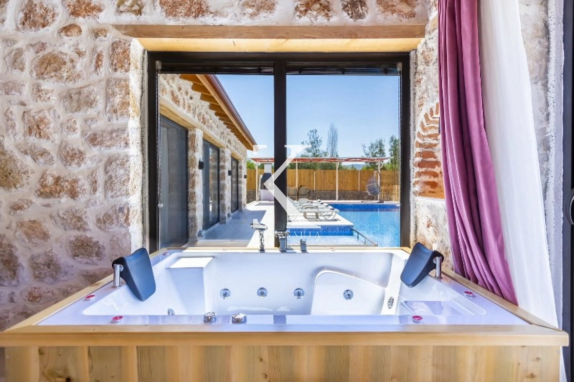 Tamamen korunaklı bahçesinde özel yüzme havuzu, çocuk havuzu, şezlonglar, oturma alanı, mini çocuk oyun alanı, yemek masası ve barbekü alanı yer almaktadır. Yatak odalarından birinde bulunan jakuzi, villaya romantik ve lüks bir atmosfer kazandırmaktadır. Şehir gürültüsünden uzak, doğayla baş başa huzurlu bir tatil arayan misafirler için Villa Blue Bird ideal bir seçenektir.