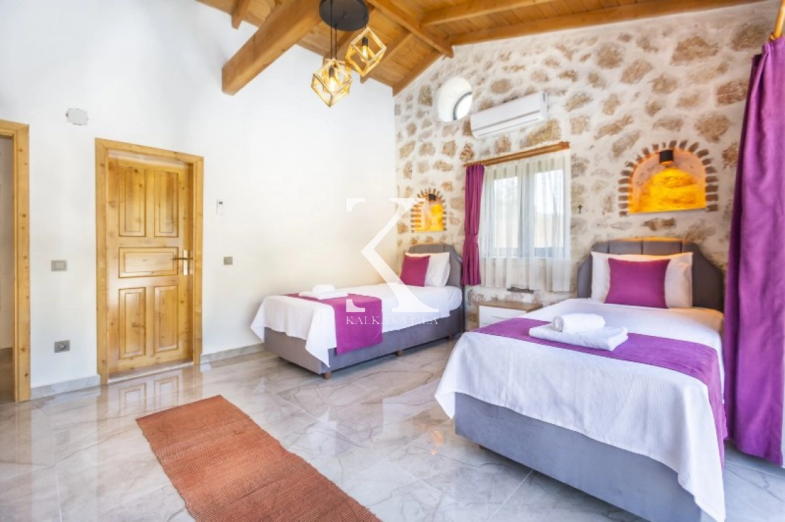 Taş ve ahşap mimarisiyle doğayla kusursuz bir uyum yakalayan Villa Blue Bird, Kalkan’ın huzurlu ve yeşillikler içindeki Sarıbelen Bölgesi’nde konumlanmıştır. 2 yatak odalı ve 4 kişilik konaklama kapasitesine sahip olan villa; özellikle muhafazakâr aileler ve balayı çiftleri için özel olarak tasarlanmıştır.