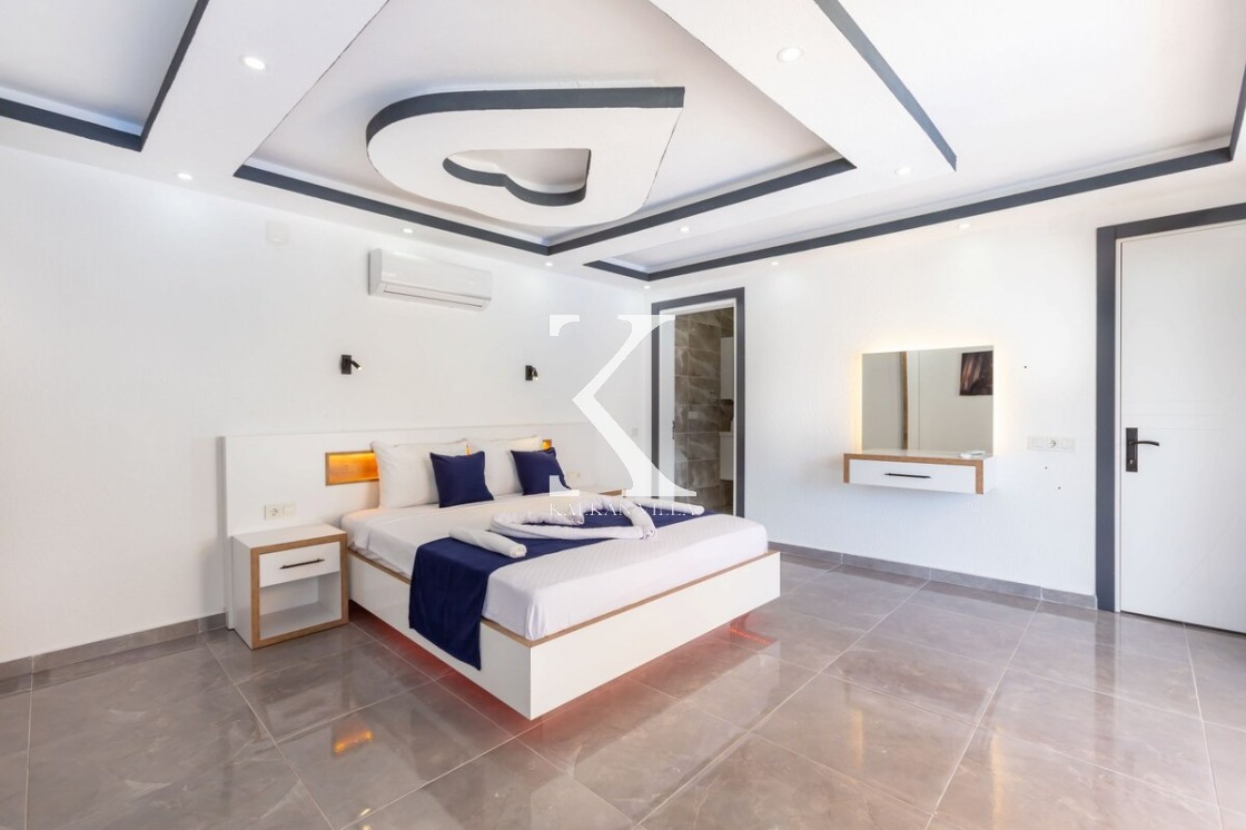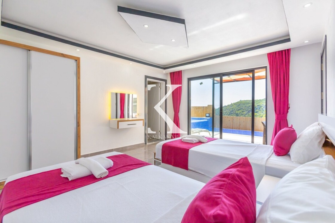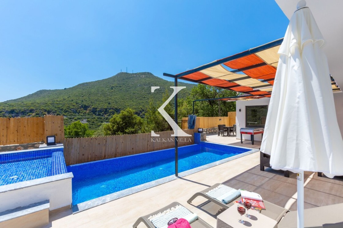 Kalkan’ın sakin Sarıbelen bölgesinde yer alan bu özel villa, 2 yatak odalı ve 4 kişilik kapasitesiyle çekirdek aileler için idealdir.