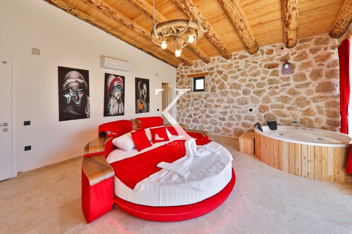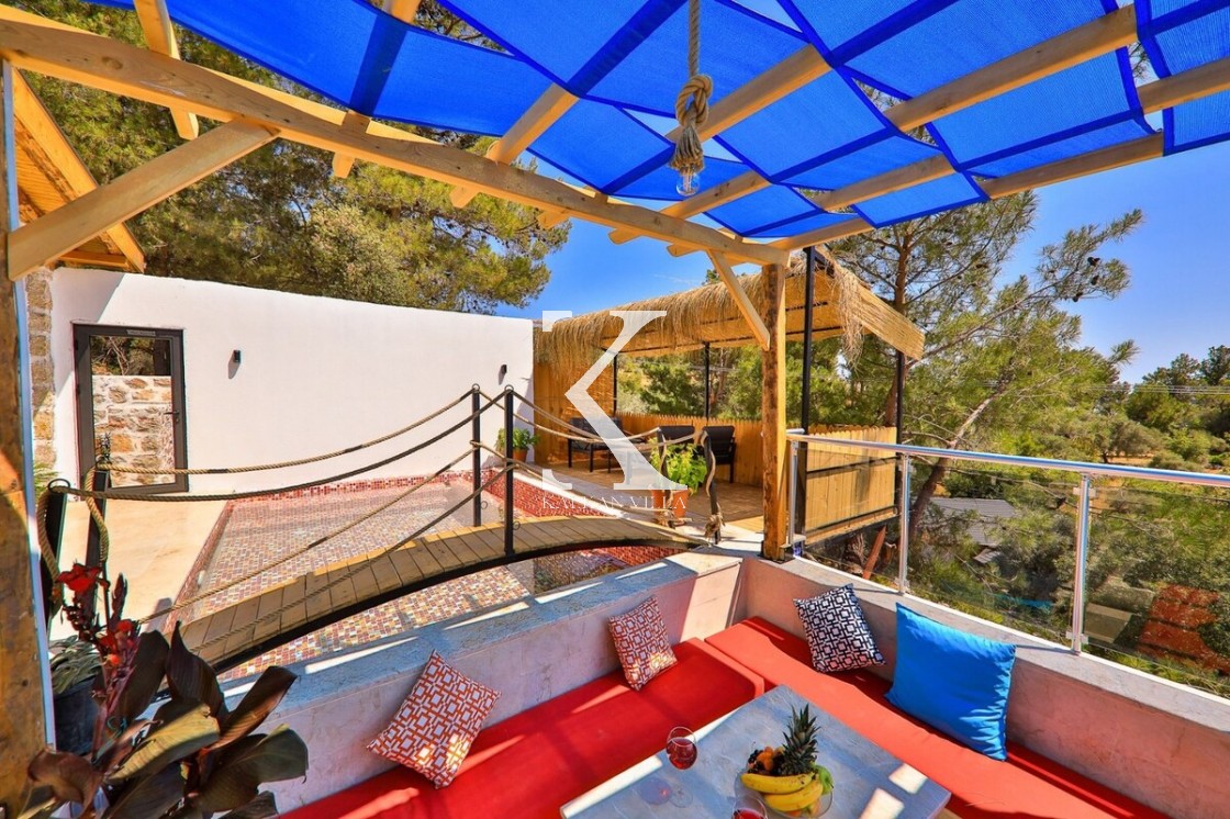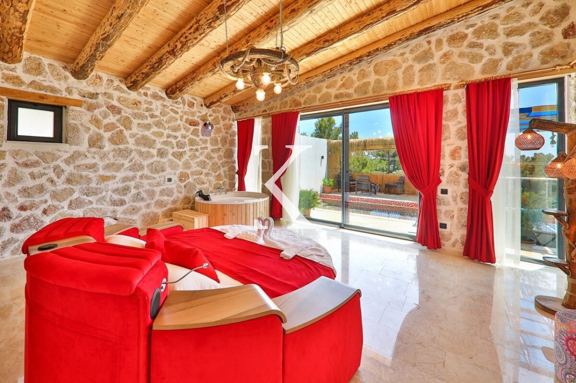 2 yatak odalı – 4 kişi kapasiteli, doğa içinde, mahremiyet odaklı lüks villa. Her iki yatak odasında jakuzi, banyolarda özel hamam konsepti ile balayı çiftleri ve çekirdek aileler için benzersiz bir deneyim.