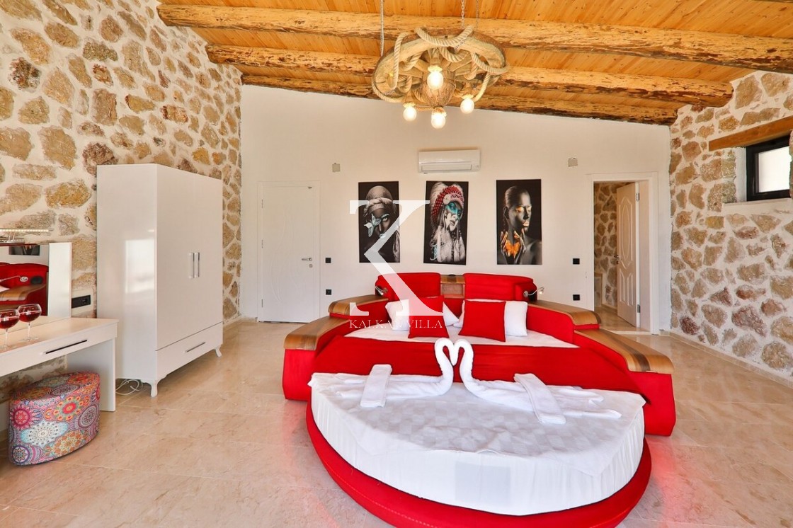 Ana Süit: Çift kişilik yatak, jakuzi, komodin, elbise dolabı, makyaj masası, klima, banyo & WC