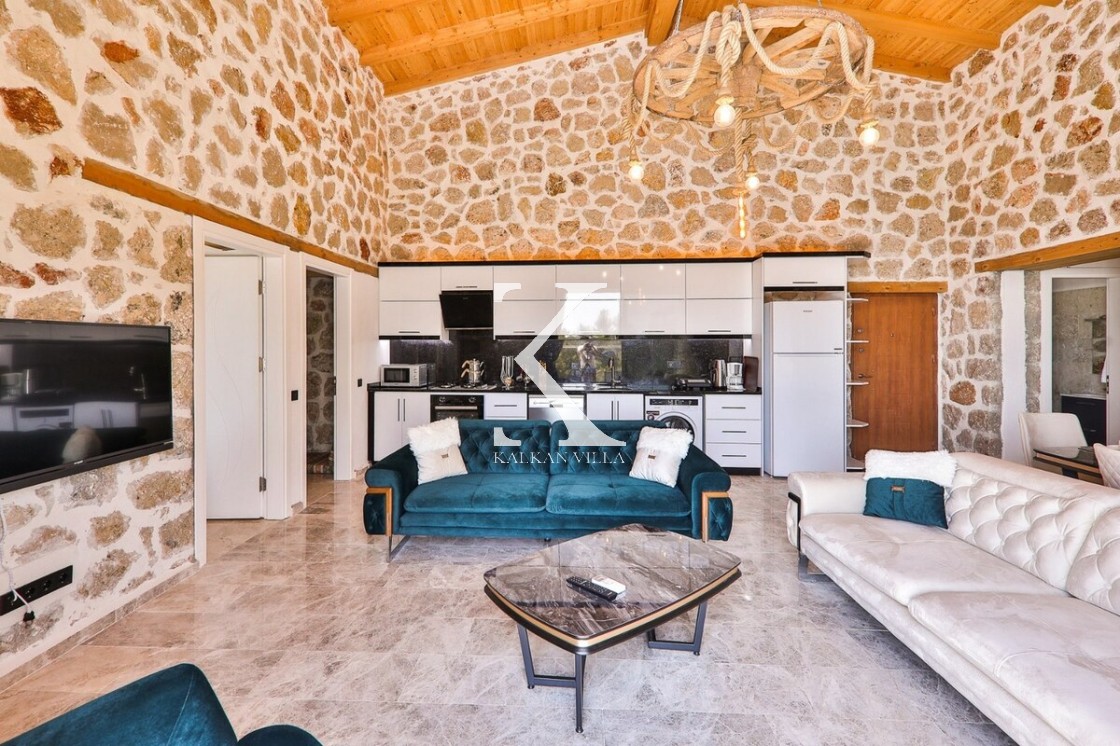 Yaşam Alanı: Modern salon, TV, klima, Wi-Fi; teras bağlantısı