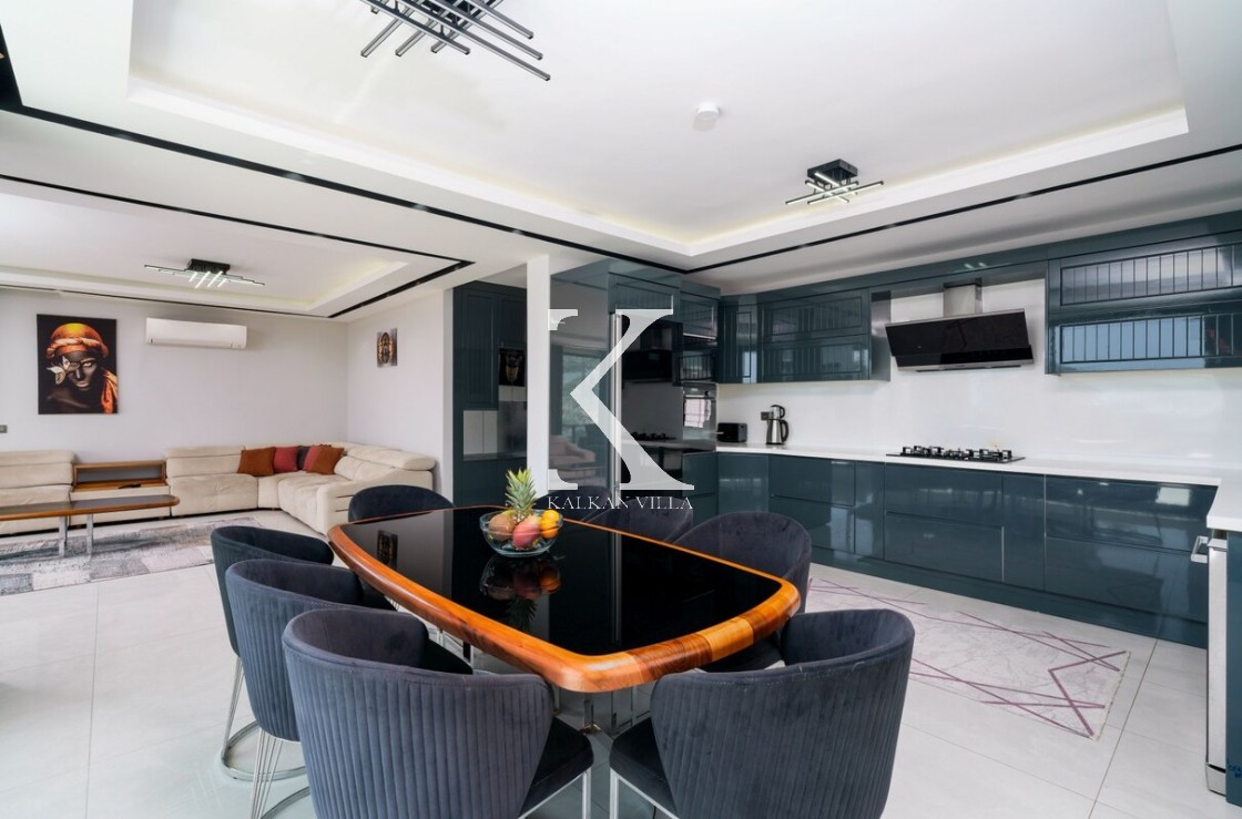 Antrasit renginin şıklığı ile modernliği buluşturan tam donanımlı Amerikan mutfakta; buzdolabı, bulaşık makinesi, ocak, fırın, mikrodalga fırın, su ısıtıcısı, su sebili, tost makinesi, Türk kahve makinesi, 8 kişilik yemek masası, yemek takımı ve yemek pişirme araç gereçleri yer almaktadır.