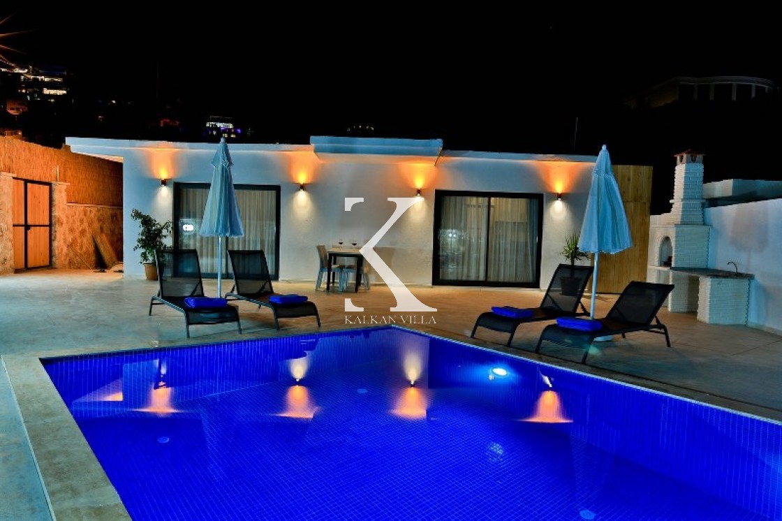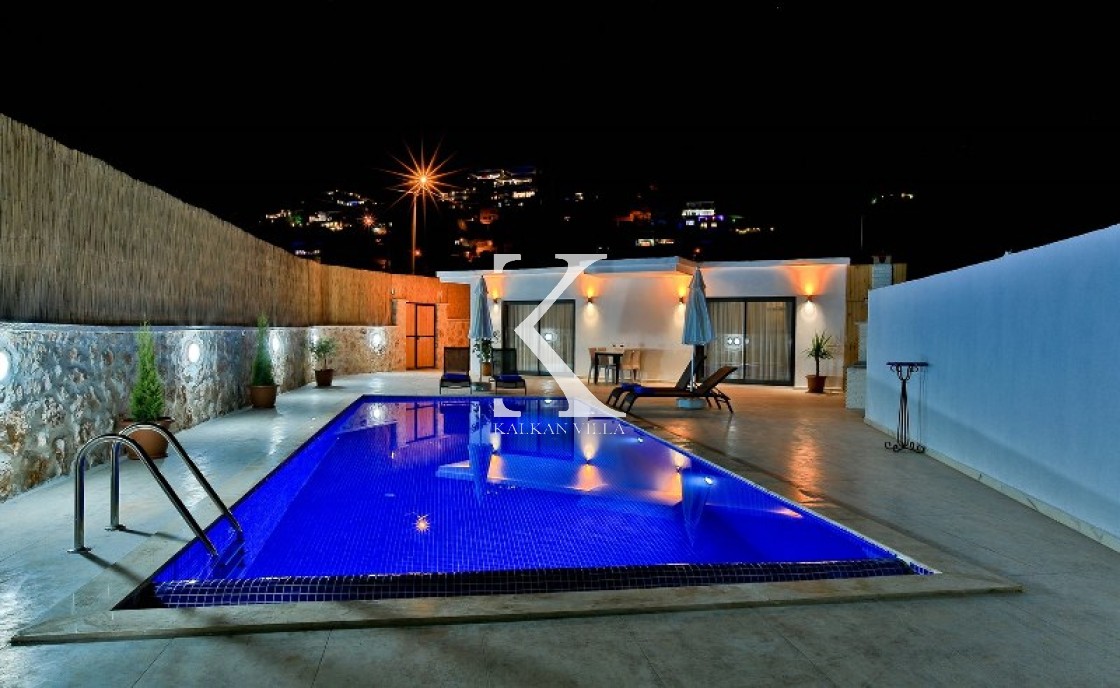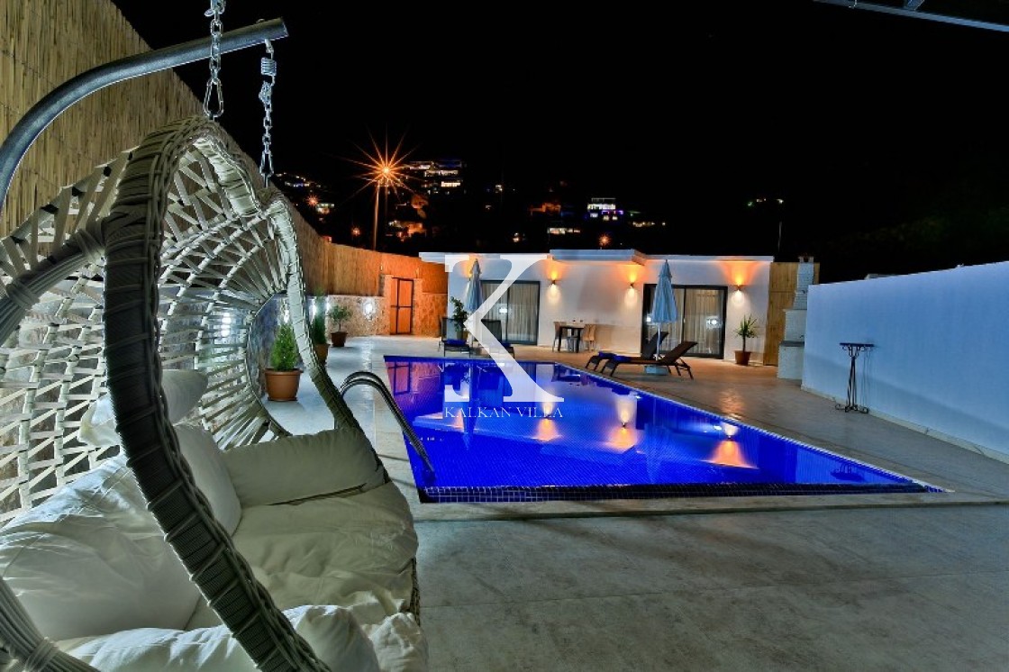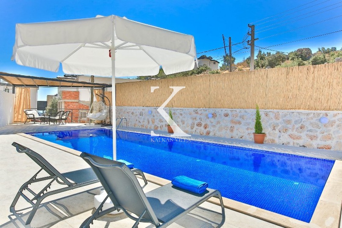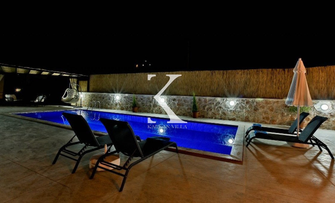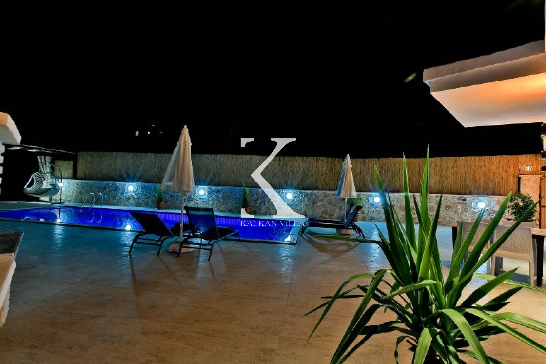 Villa Cengiz, Kalkan’ın sakin Kördere bölgesinde, dışarıdan görünmeyen korunaklı havuz alanı ve modern tasarımıyla öne çıkan şık bir tatil villasıdır. 2 yatak odası ve 4 kişilik kapasitesiyle özellikle balayı çiftleri ve mahremiyete önem veren muhafazakâr aileler için idealdir. Ana yatak odasında jakuzi bulunur. Doğa manzaralı bahçede salıncak, oturma alanı, yemek masası ve barbekü yer alır.