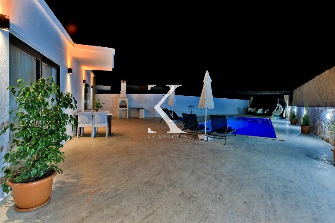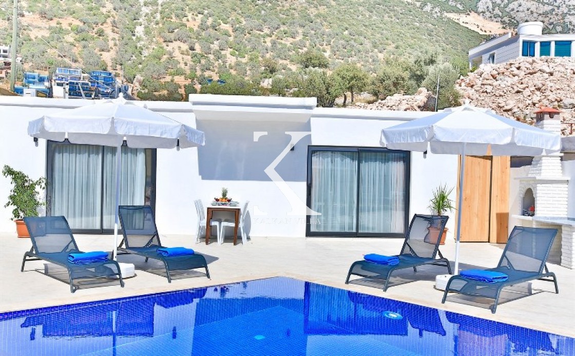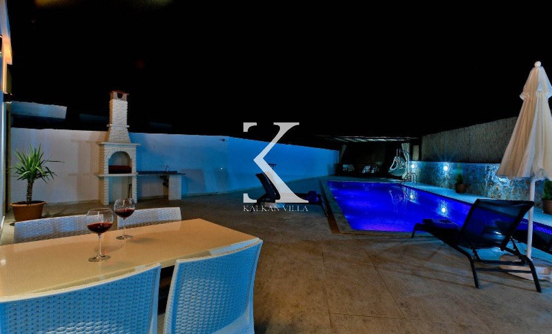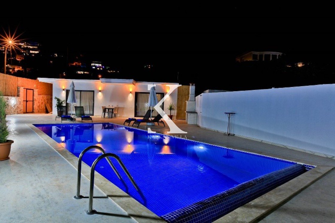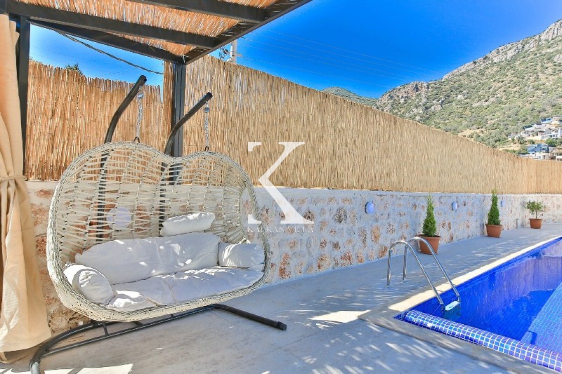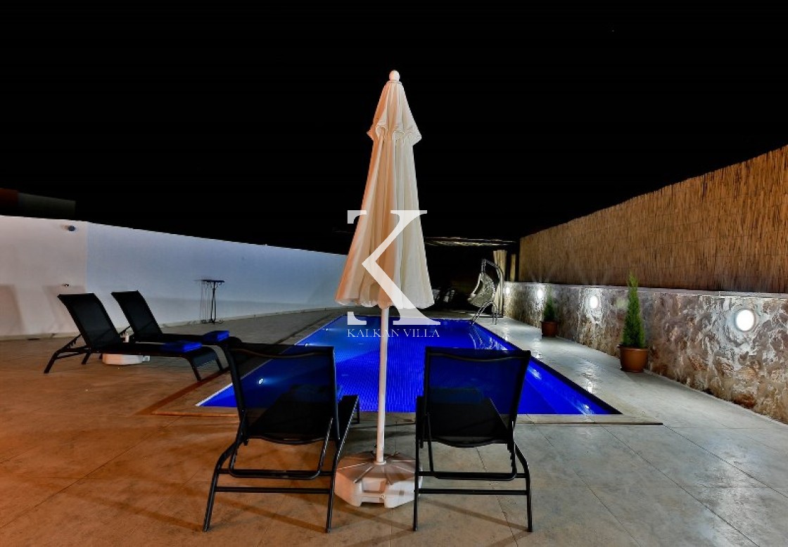Villa Cengiz, Kalkan’ın sakin Kördere bölgesinde, dışarıdan görünmeyen korunaklı havuz alanı ve modern tasarımıyla öne çıkan şık bir tatil villasıdır. 2 yatak odası ve 4 kişilik kapasitesiyle özellikle balayı çiftleri ve mahremiyete önem veren muhafazakâr aileler için idealdir. Ana yatak odasında jakuzi bulunur. Doğa manzaralı bahçede salıncak, oturma alanı, yemek masası ve barbekü yer alır.