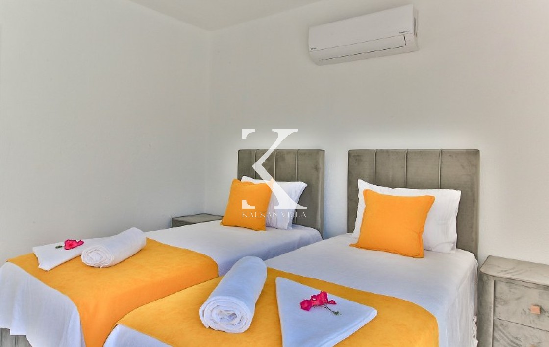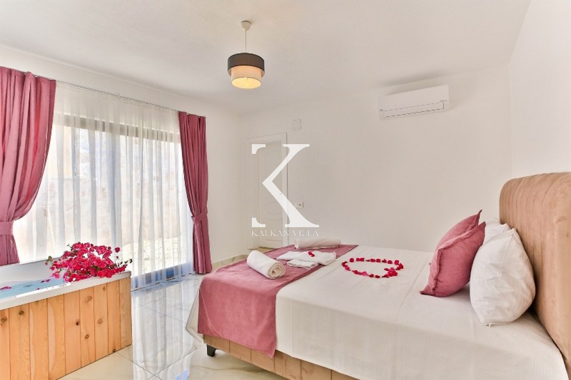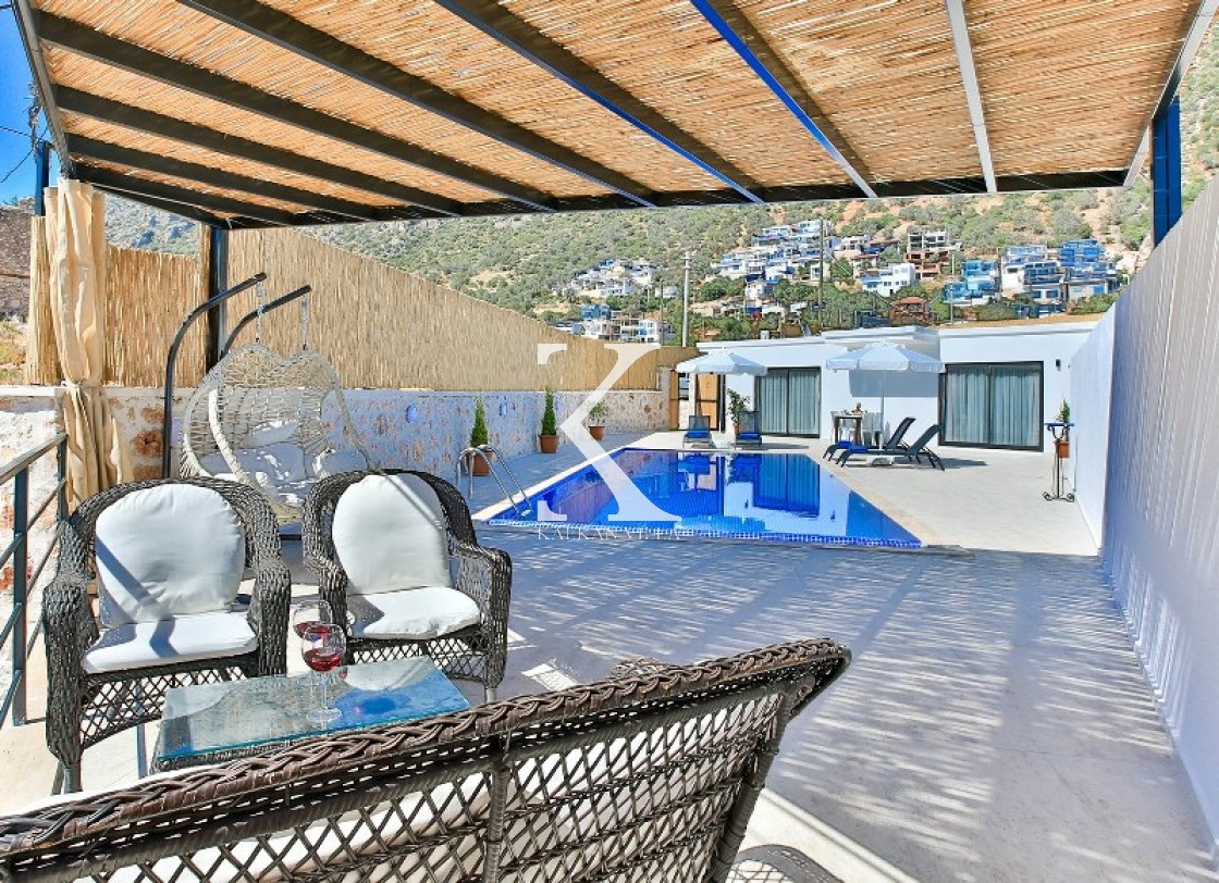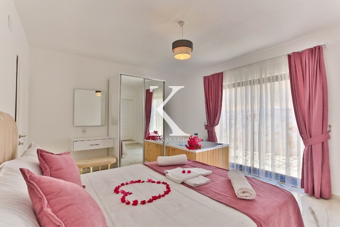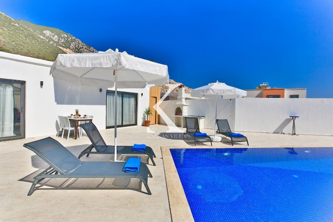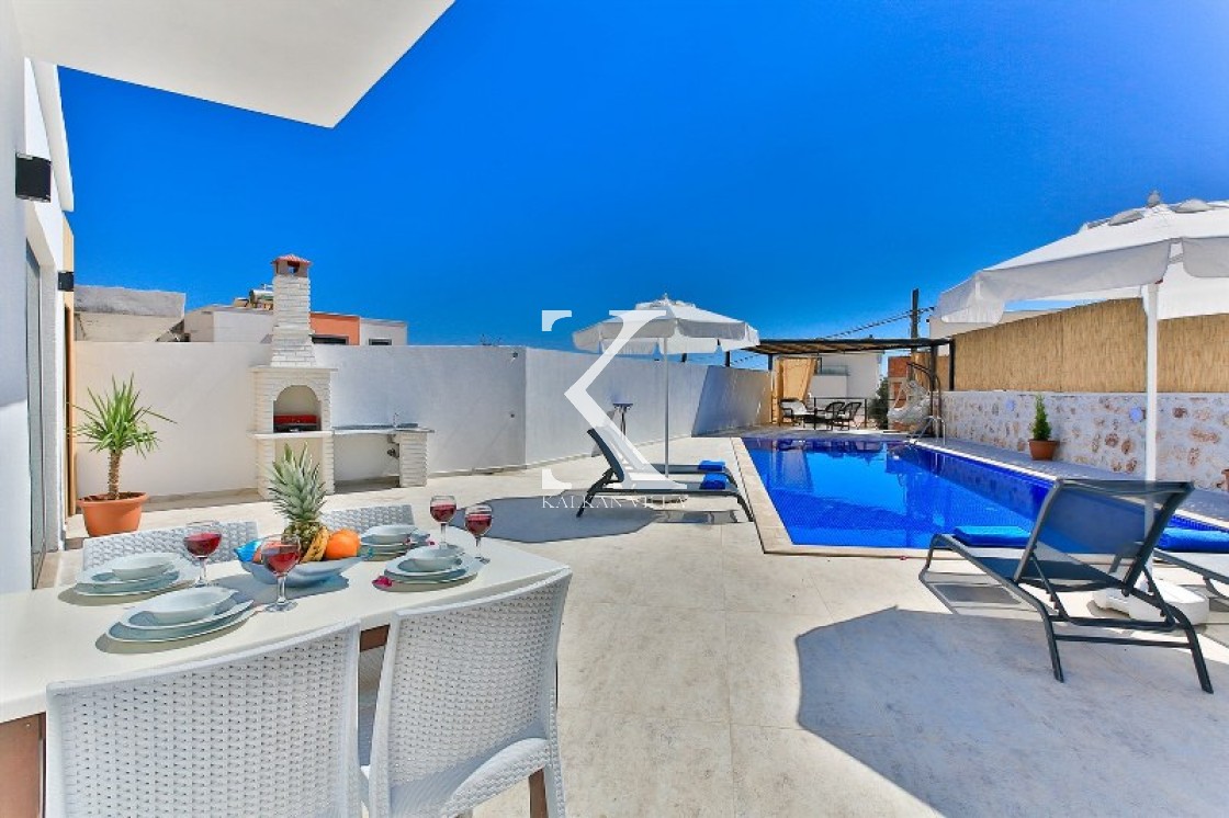 Villa Cengiz, Kalkan’ın sakin Kördere bölgesinde, dışarıdan görünmeyen korunaklı havuz alanı ve modern tasarımıyla öne çıkan şık bir tatil villasıdır. 2 yatak odası ve 4 kişilik kapasitesiyle özellikle balayı çiftleri ve mahremiyete önem veren muhafazakâr aileler için idealdir. Ana yatak odasında jakuzi bulunur. Doğa manzaralı bahçede salıncak, oturma alanı, yemek masası ve barbekü yer alır.