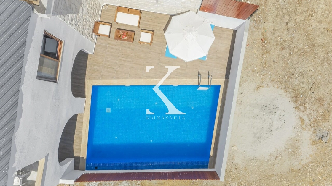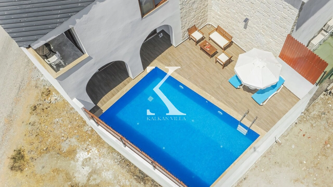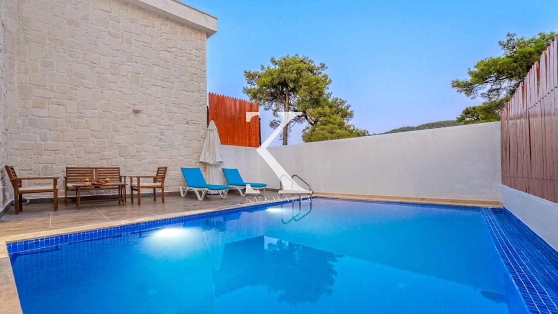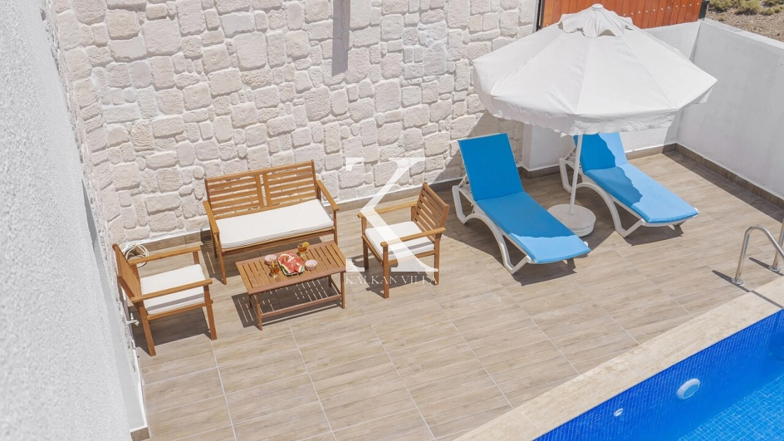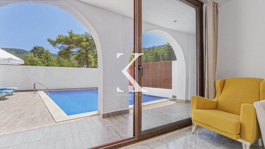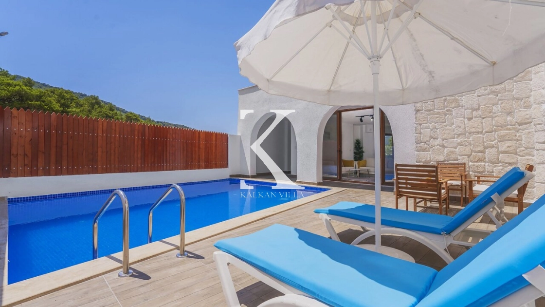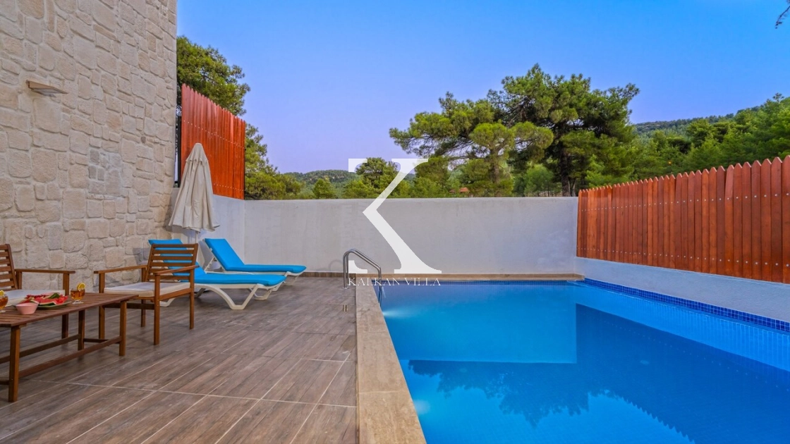Korunaklı bahçesi, özel yüzme havuzu, oturma alanı, yemek masası ve şezlonglarıyla muhafazakâr misafirler için de konforlu bir tatil deneyimi sağlar.