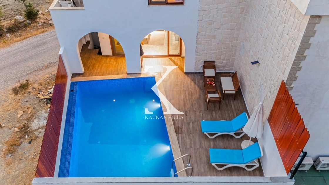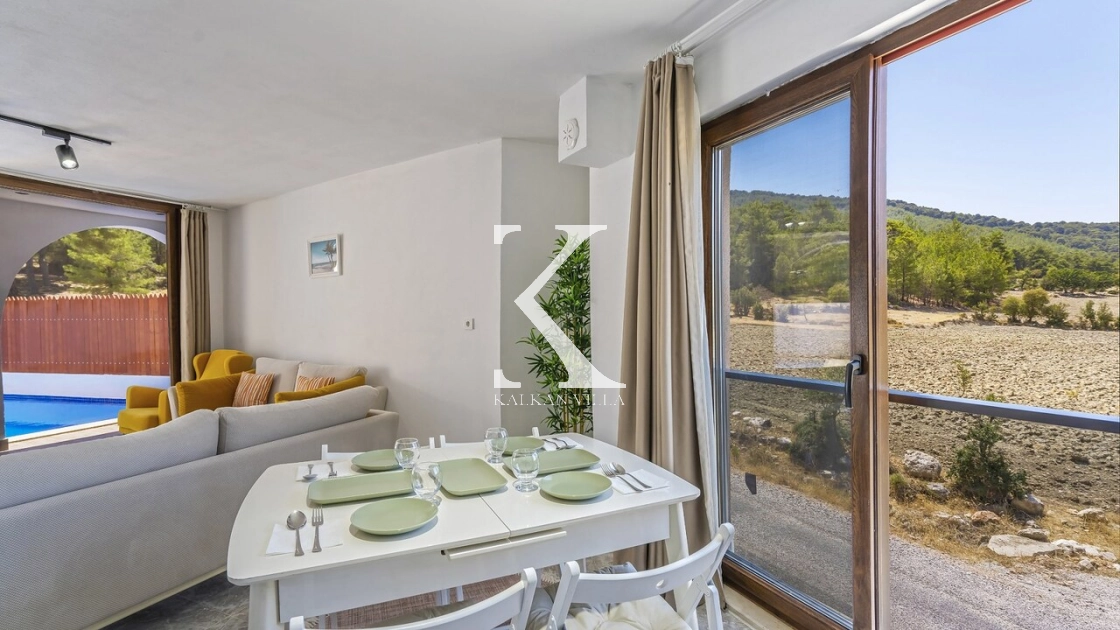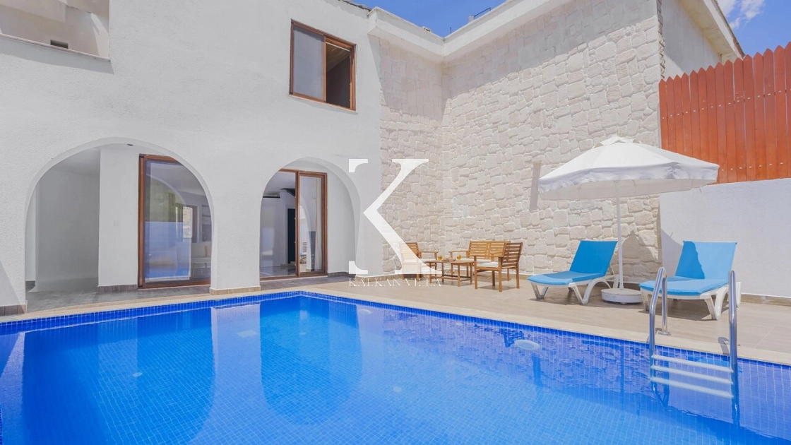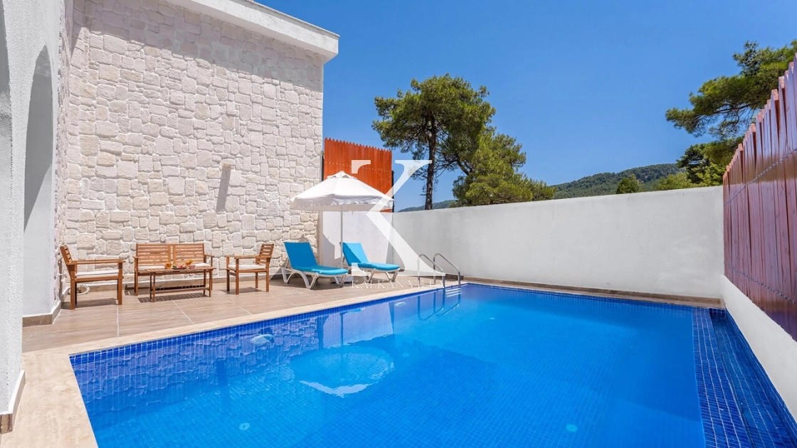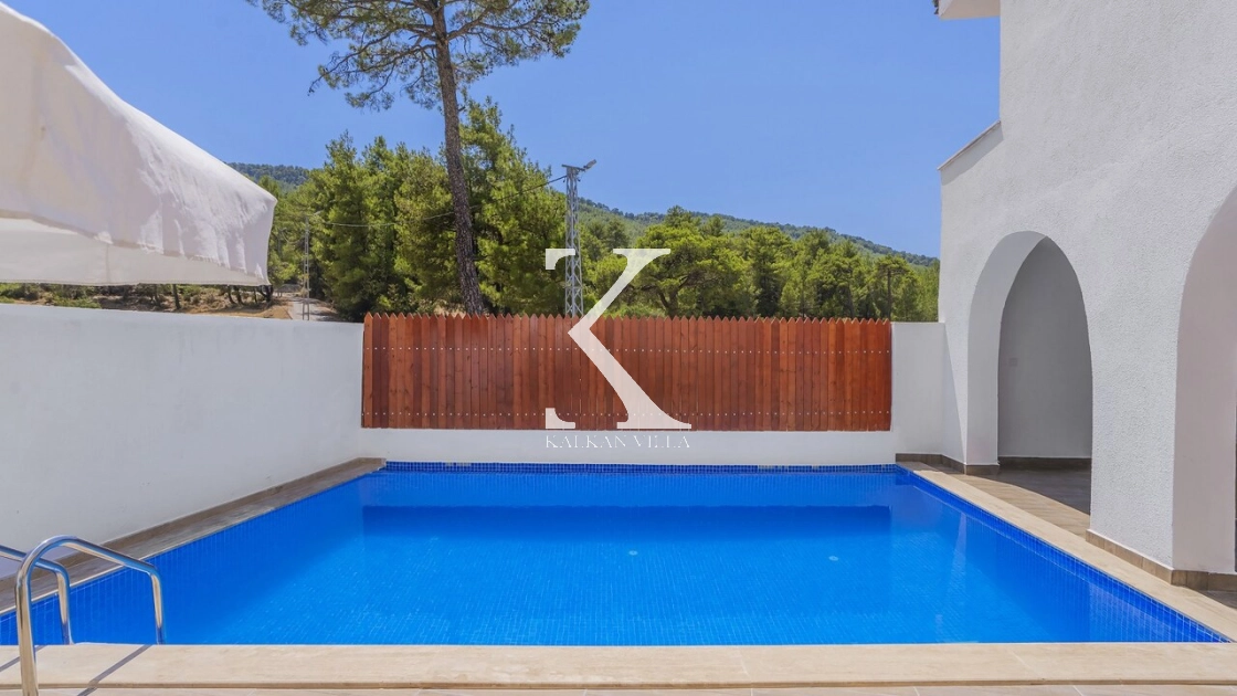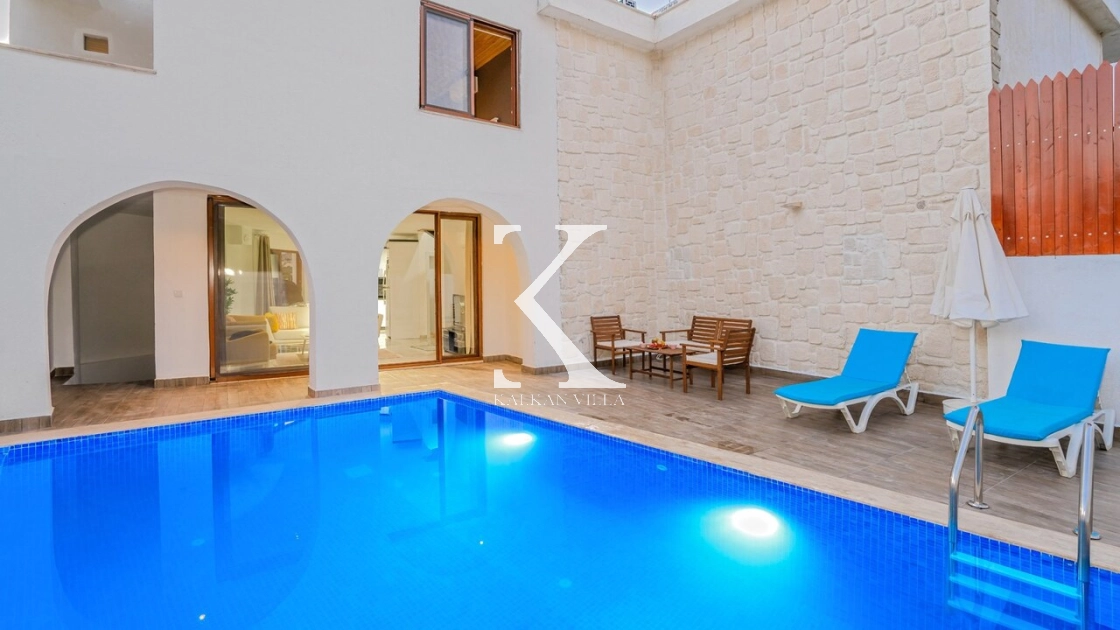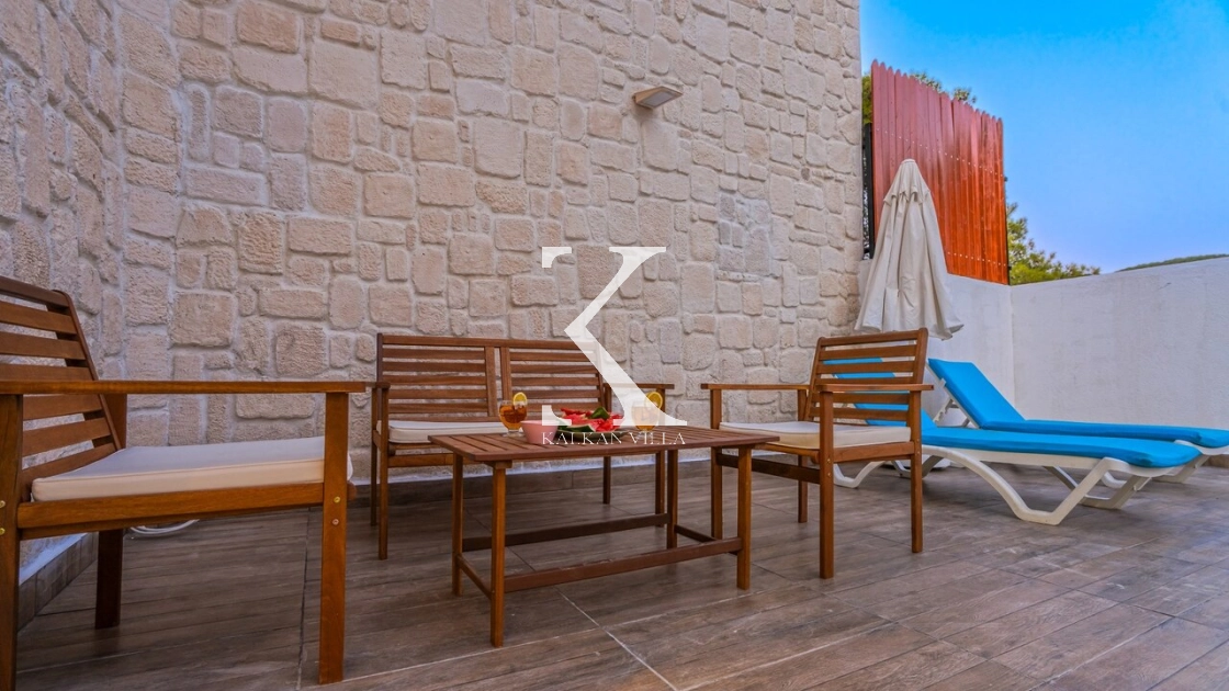 Korunaklı bahçesi, özel yüzme havuzu, oturma alanı, yemek masası ve şezlonglarıyla muhafazakâr misafirler için de konforlu bir tatil deneyimi sağlar.