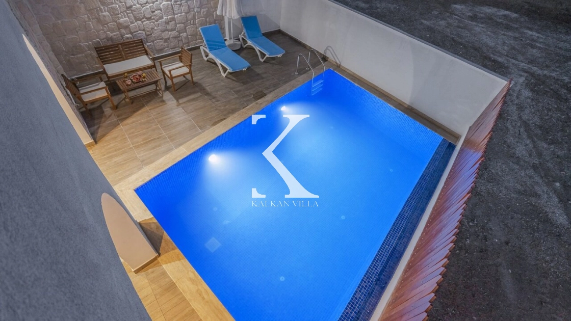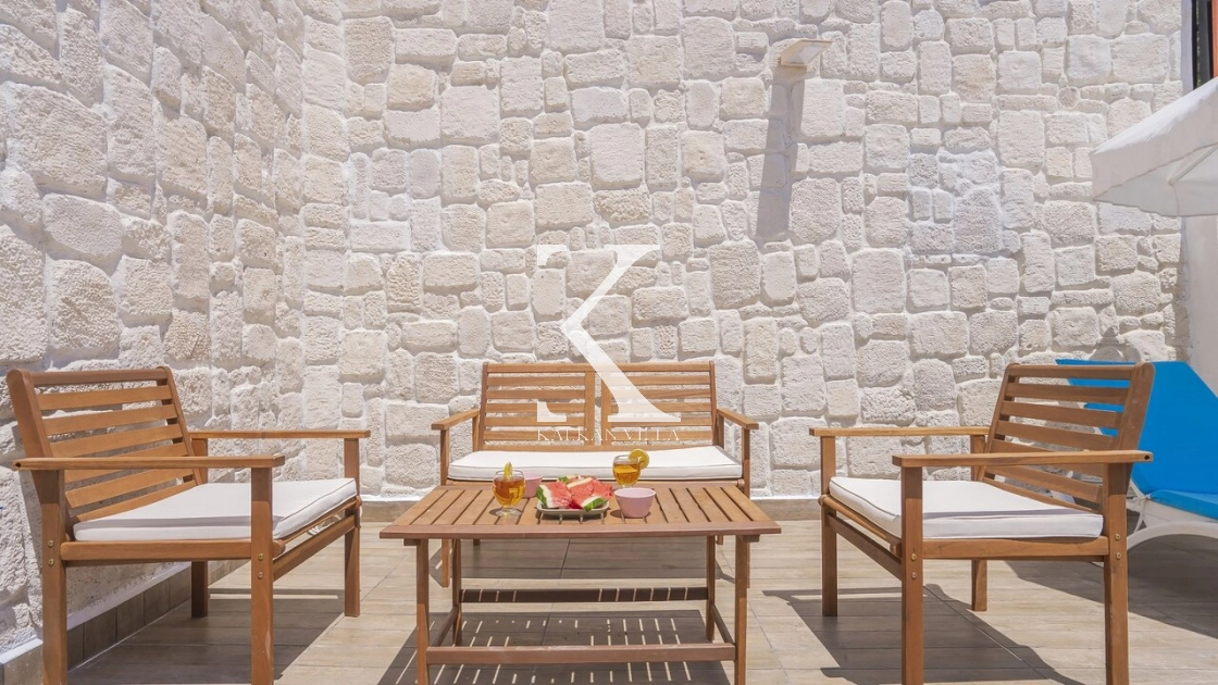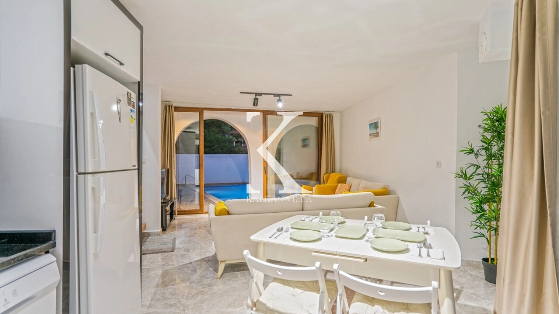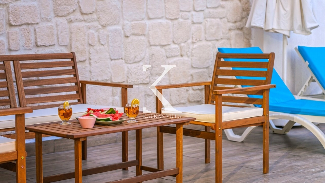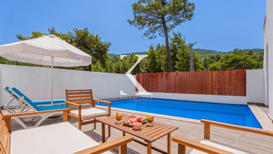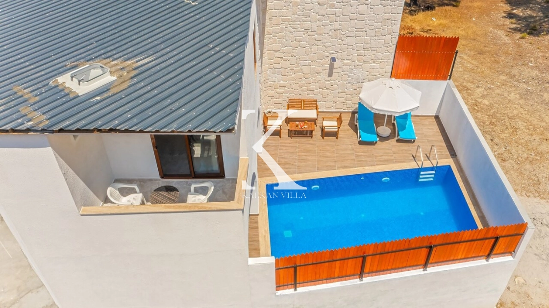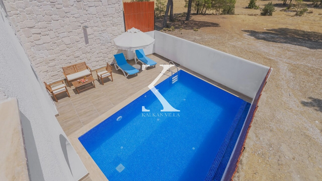 Korunaklı bahçesi, özel yüzme havuzu, oturma alanı, yemek masası ve şezlonglarıyla muhafazakâr misafirler için de konforlu bir tatil deneyimi sağlar.