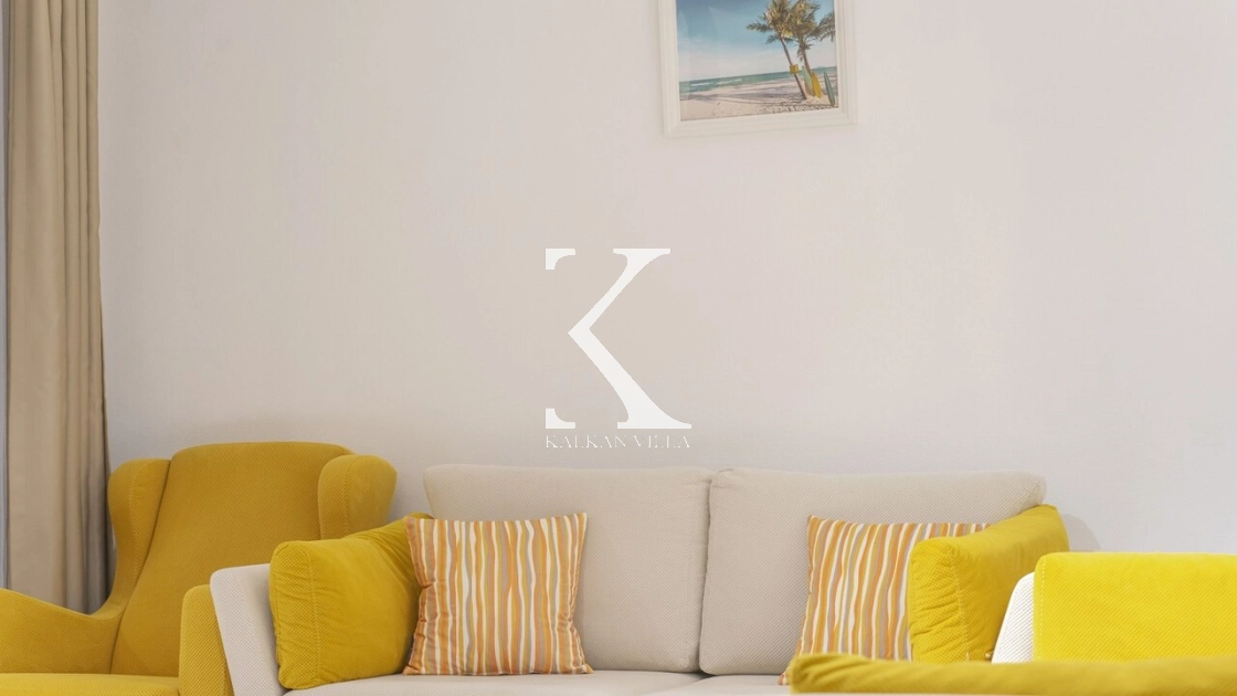 Modern ve ferah salonda konforlu oturma grubu, TV, DVD oynatıcı, klima ve internet yer almaktadır.