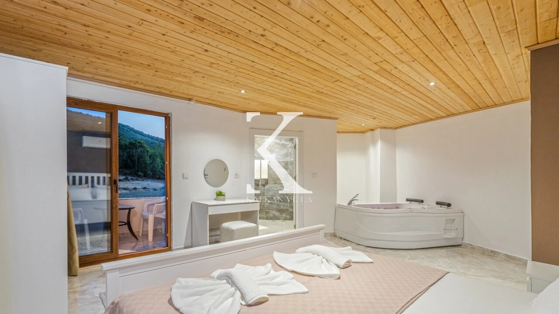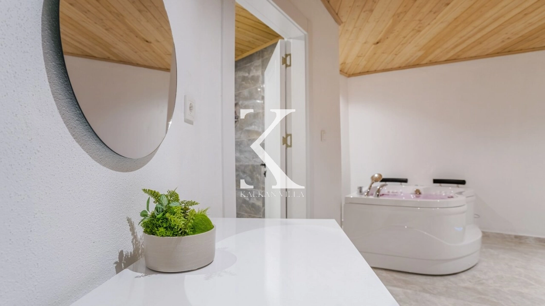 Ana yatak odasında yer alan jakuzi, tatil boyunca rahatlamanızı ve yenilenmenizi sağlar.