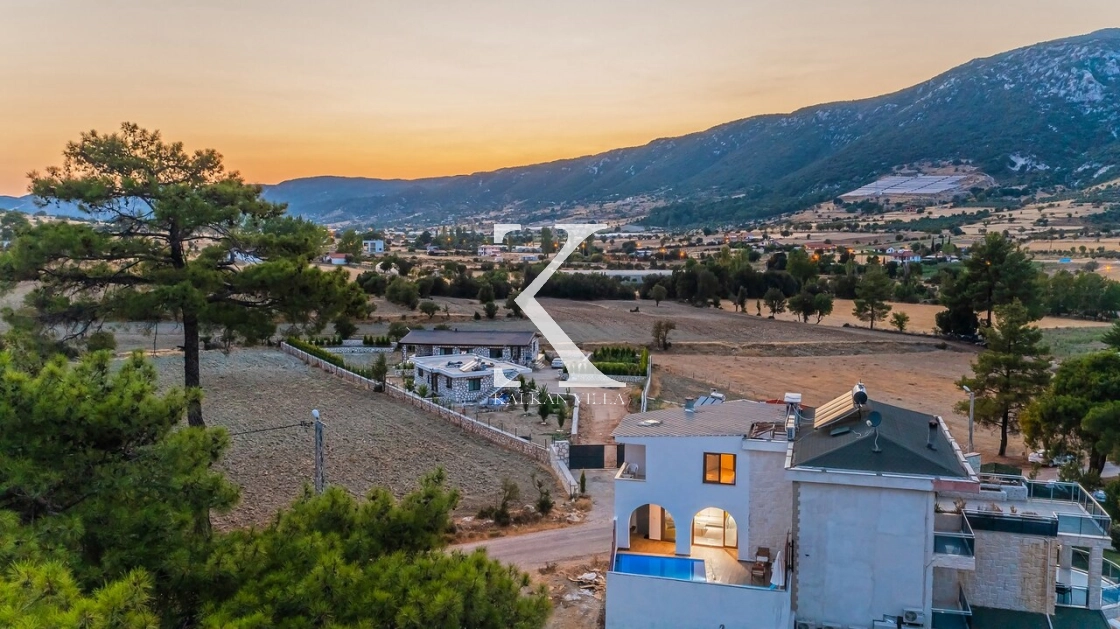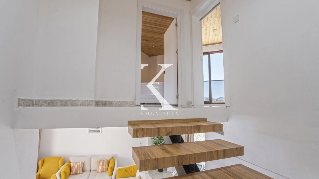 Modern ve zarif detaylarla dekore edilmiş iç mekân, doğanın huzuruyla bütünleşmiş sıcak bir atmosfer sunar.