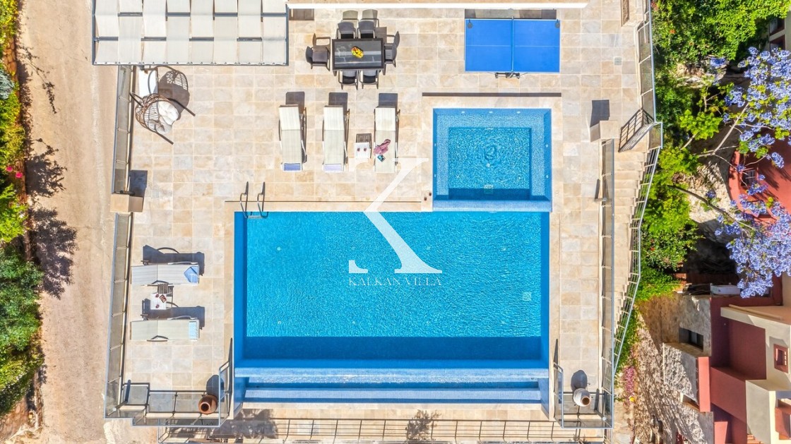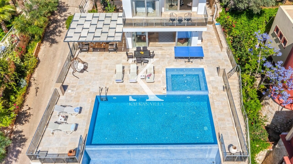 Villa Cina, Kalkan’ın popüler Kızıltaş bölgesinde konumlanmış, lüks ve konforu bir araya getiren modern bir tatil villasıdır.