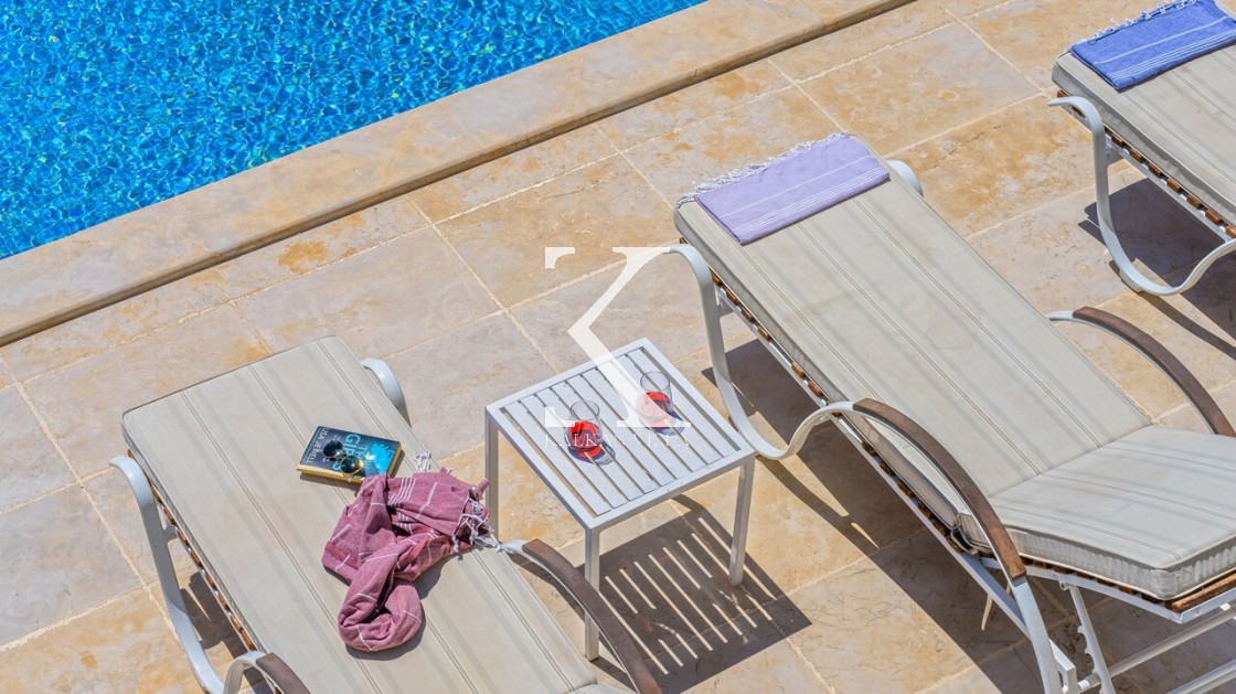 5 yatak odası • 10 kişi kapasiteli • Özel havuz • Deniz manzarası • Merkeze 5-7 dk yürüyüş
