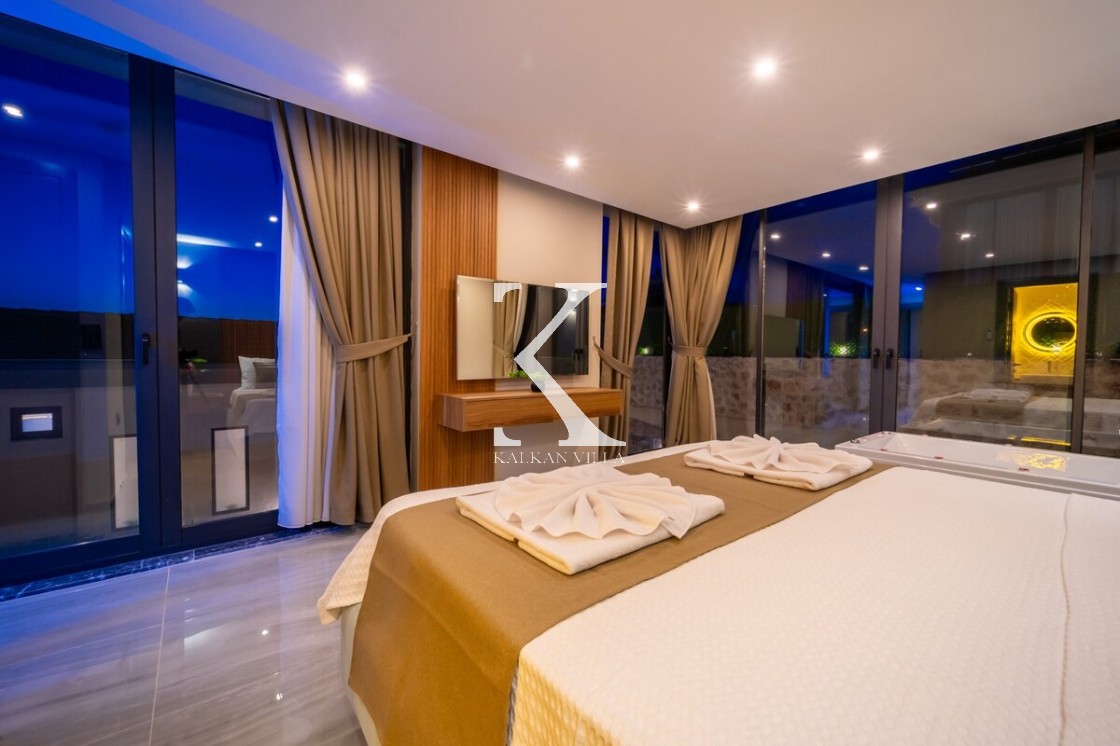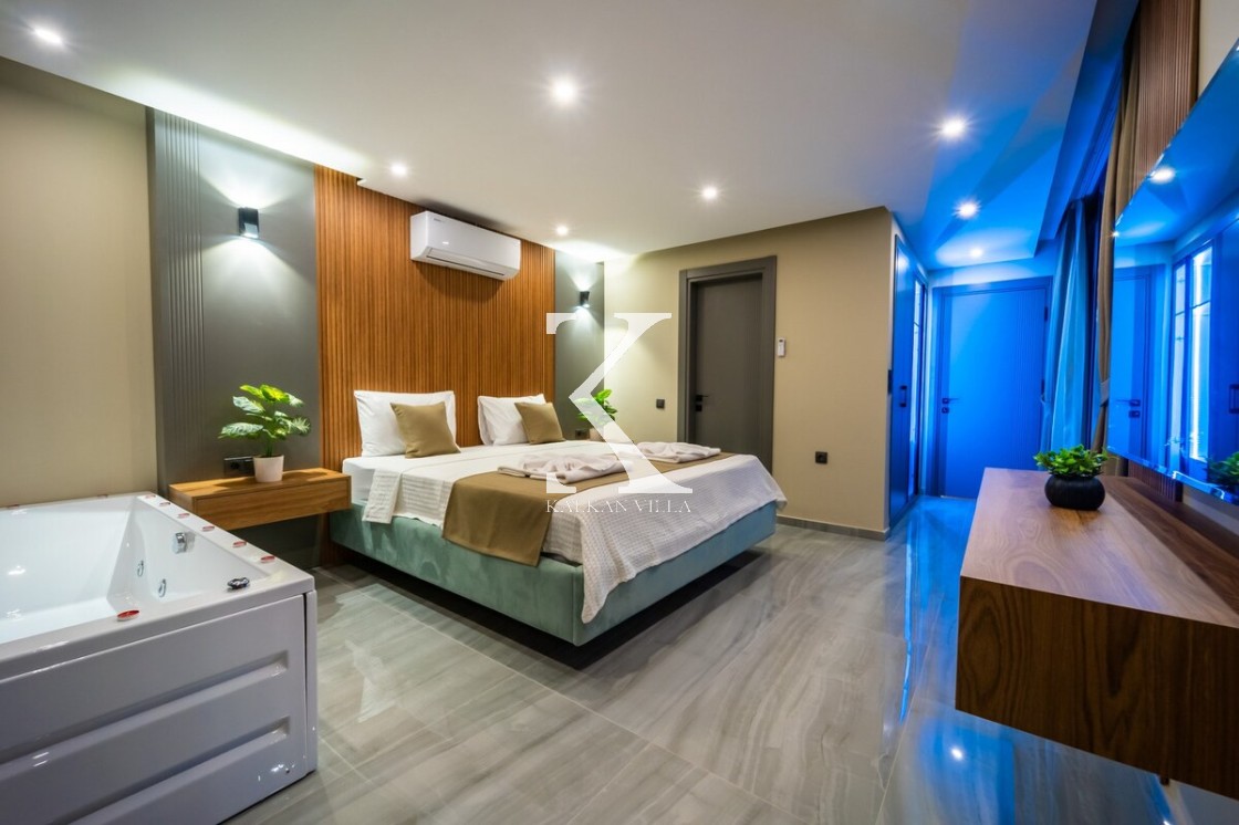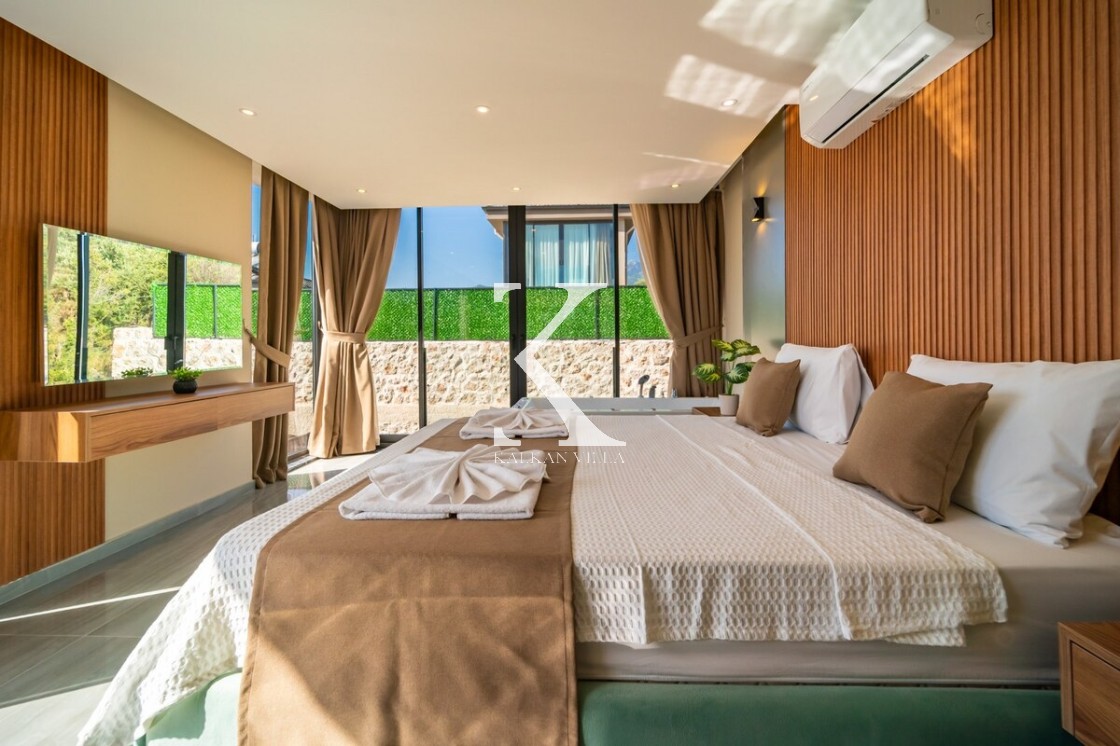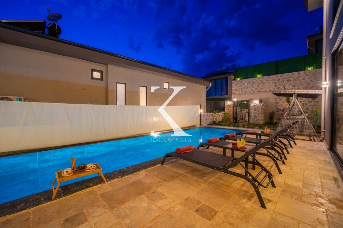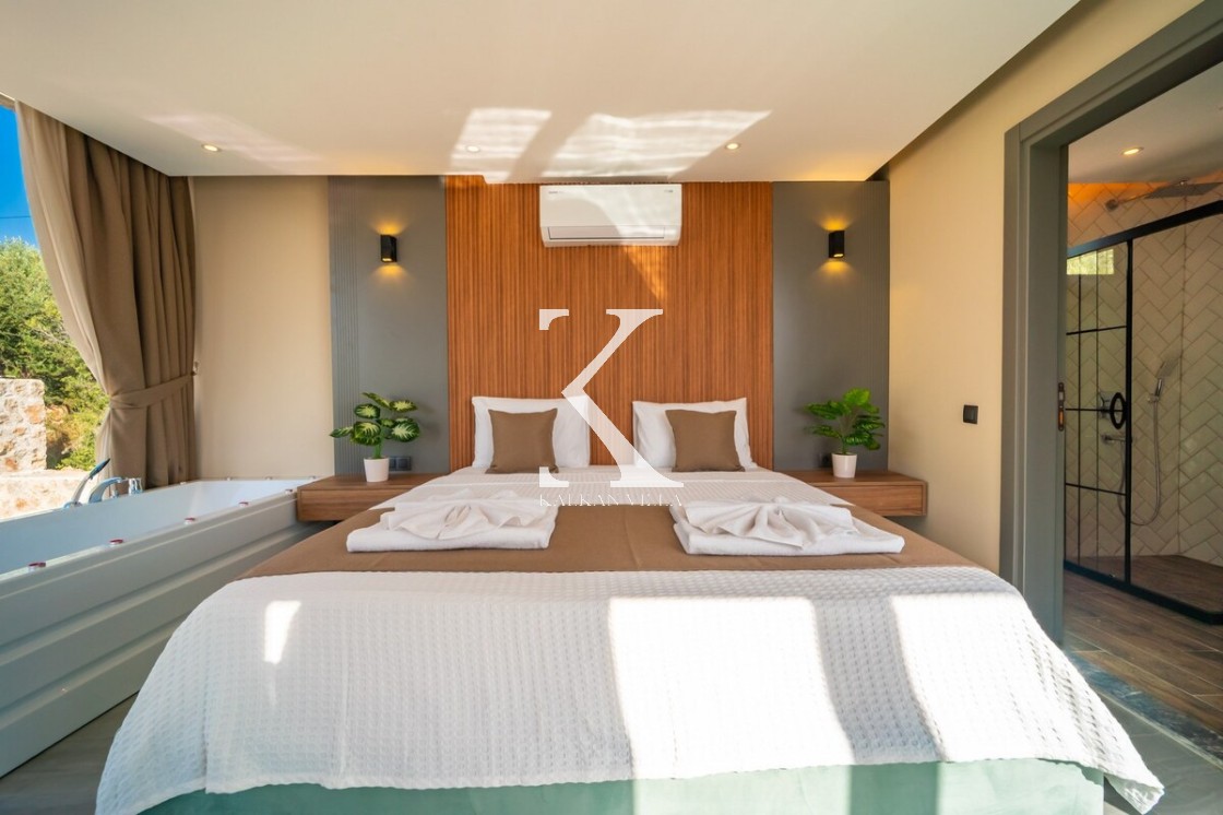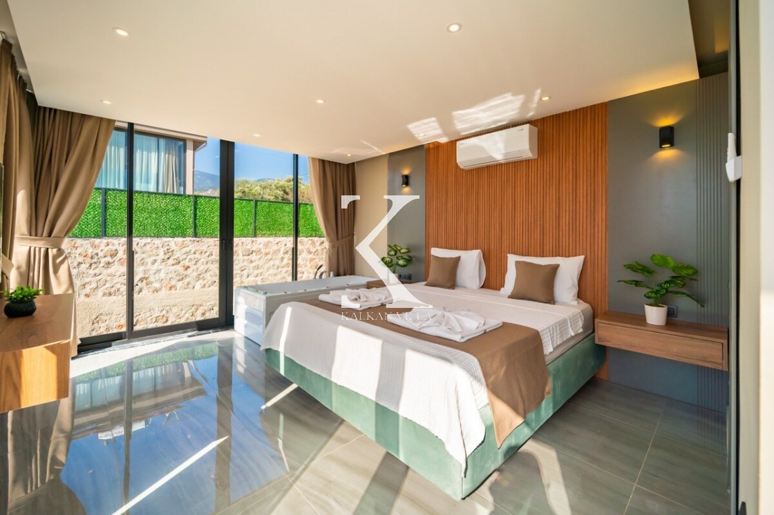 Modern ve şık tasarımıyla öne çıkan, 2 yatak odalı – 4 kişi kapasiteli lüks villa. Ebeveyn odasındaki özel jakuzi ile romantik ve dinlendirici bir atmosfer sunar; doğayla iç içe, şehir gürültüsünden uzak konumuyla hem muhafazakâr aileler hem de balayı çiftleri için idealdir.