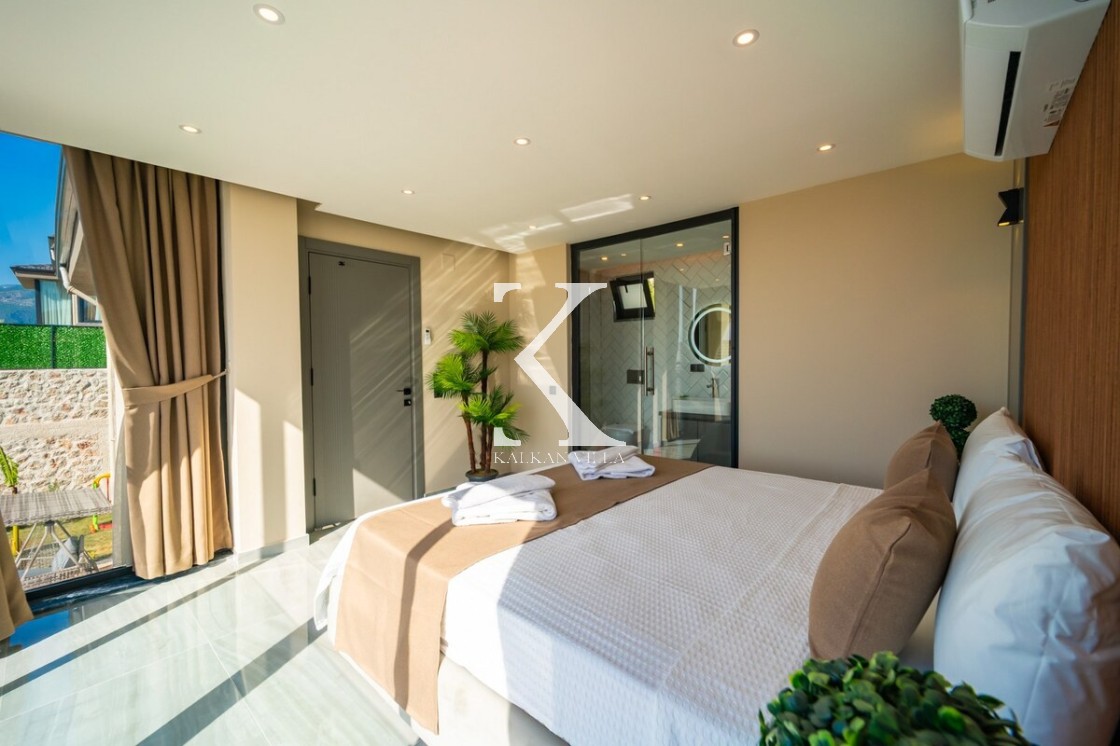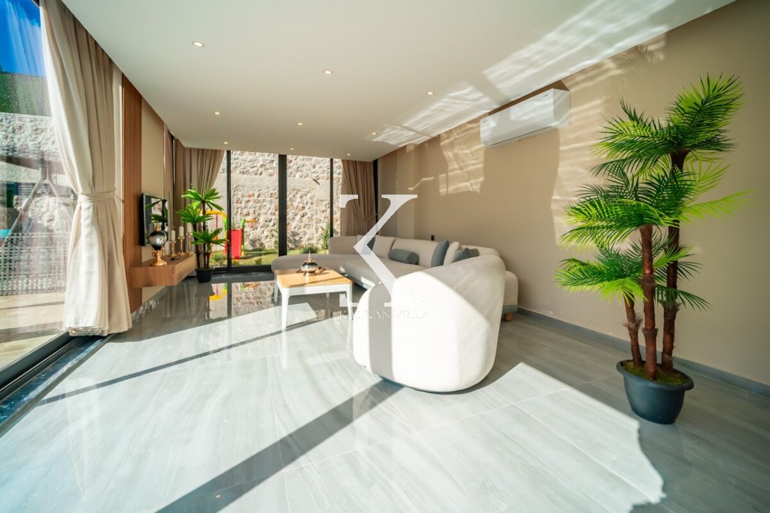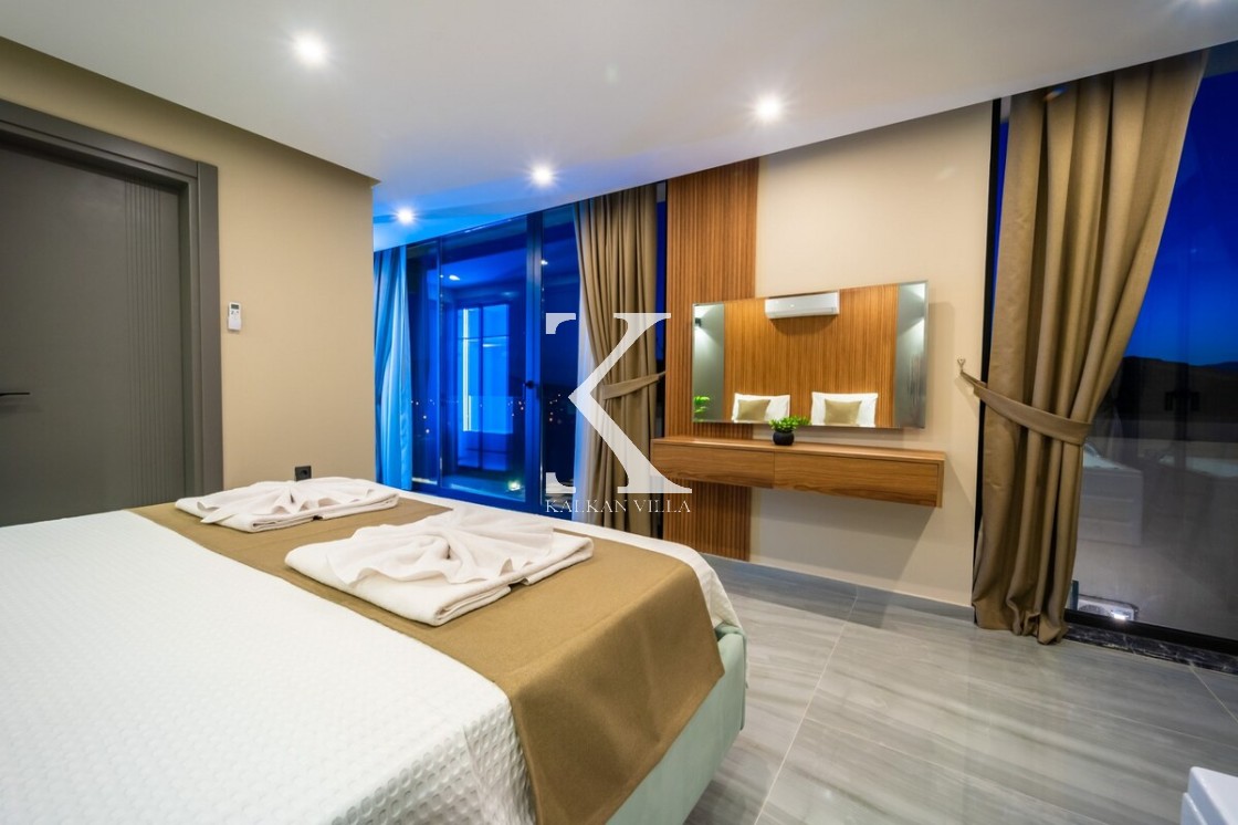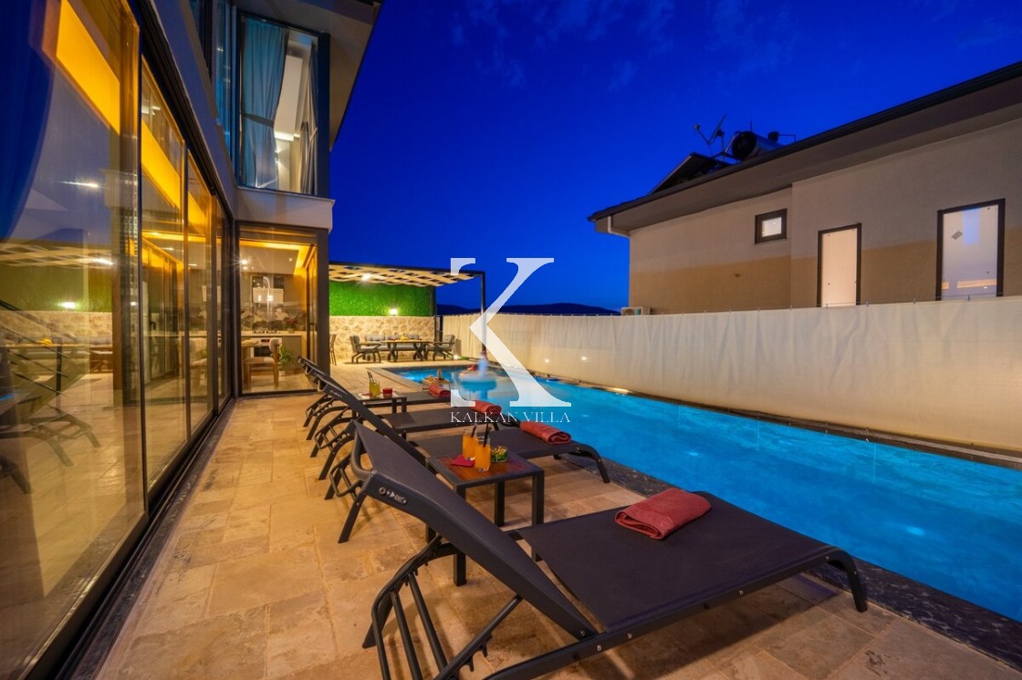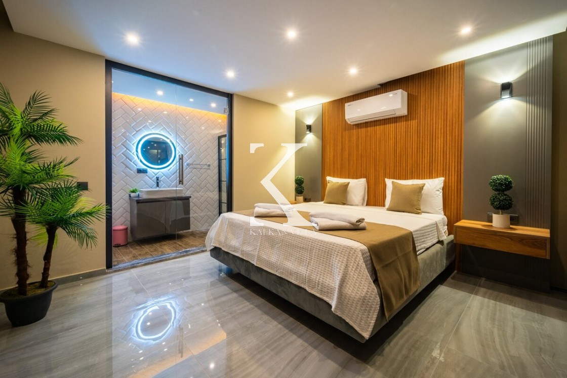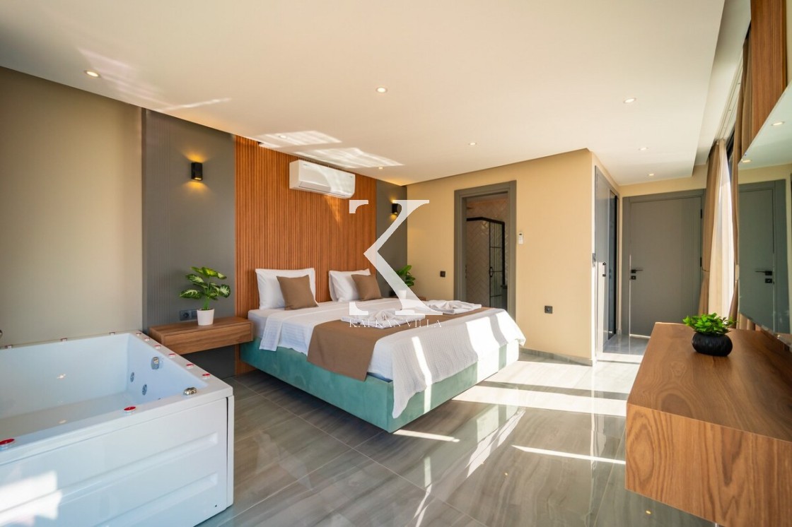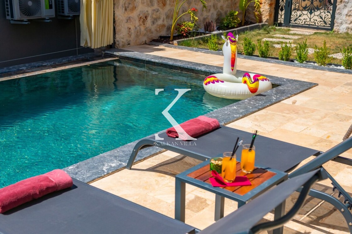 Modern ve şık tasarımıyla öne çıkan, 2 yatak odalı – 4 kişi kapasiteli lüks villa. Ebeveyn odasındaki özel jakuzi ile romantik ve dinlendirici bir atmosfer sunar; doğayla iç içe, şehir gürültüsünden uzak konumuyla hem muhafazakâr aileler hem de balayı çiftleri için idealdir.