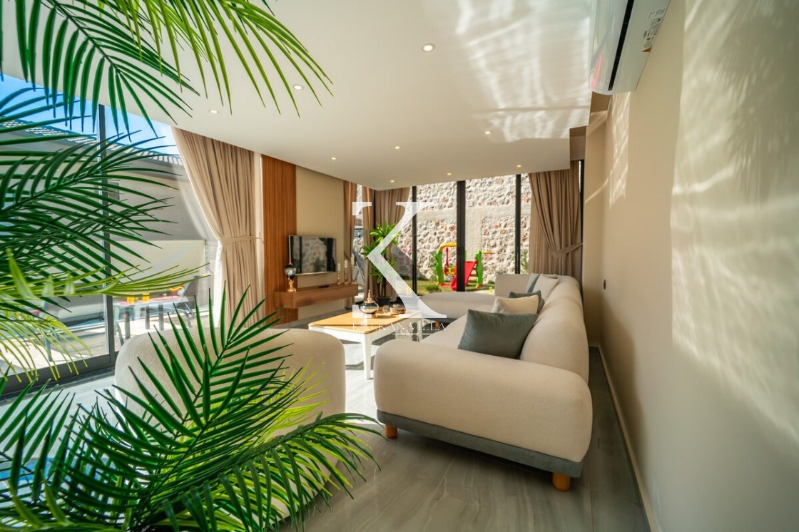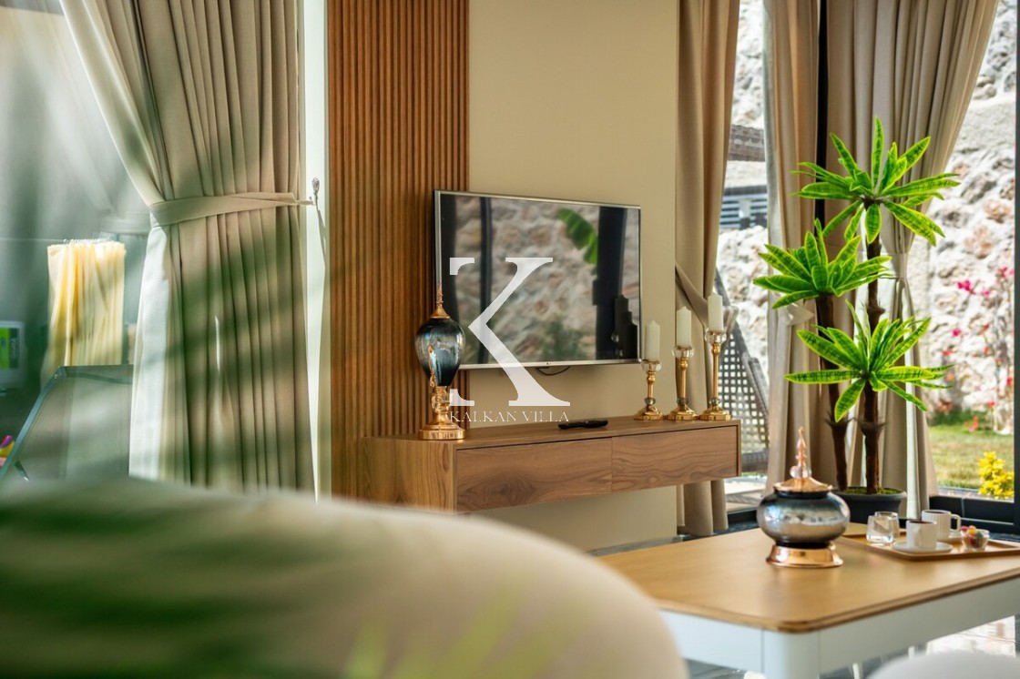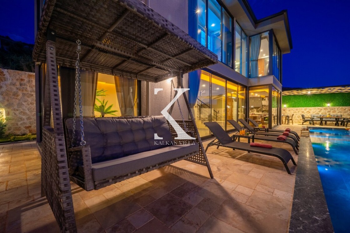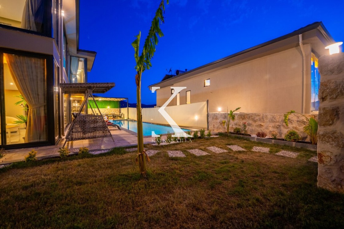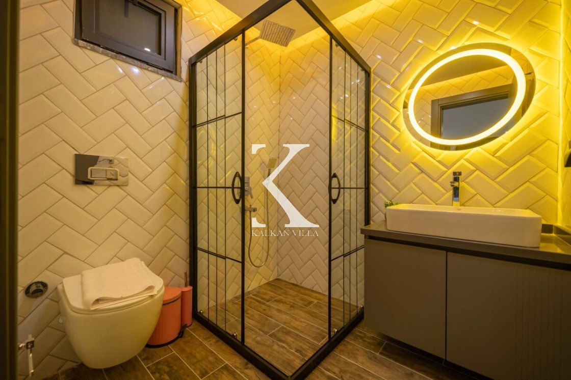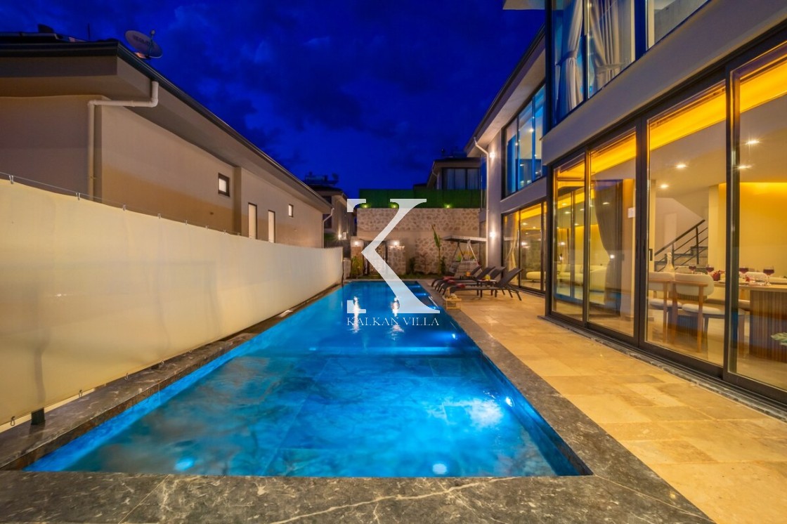 Modern ve şık tasarımıyla öne çıkan, 2 yatak odalı – 4 kişi kapasiteli lüks villa. Ebeveyn odasındaki özel jakuzi ile romantik ve dinlendirici bir atmosfer sunar; doğayla iç içe, şehir gürültüsünden uzak konumuyla hem muhafazakâr aileler hem de balayı çiftleri için idealdir.