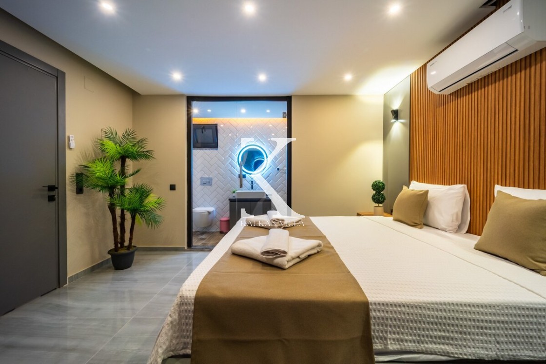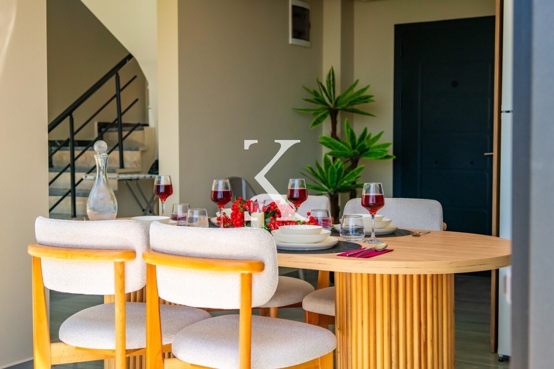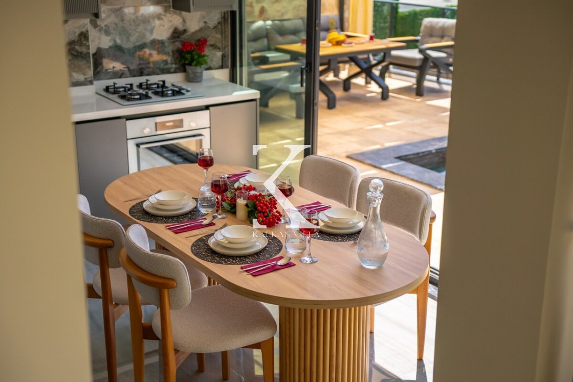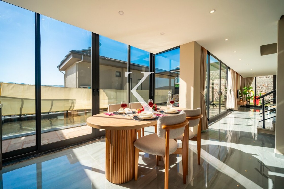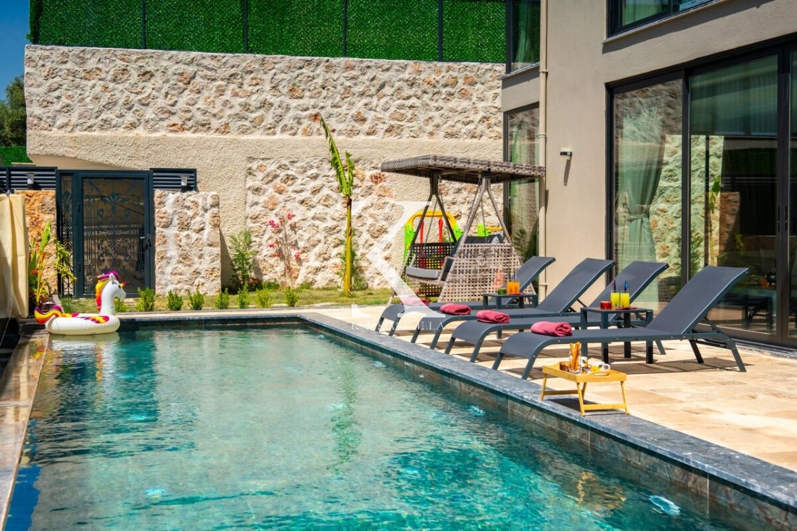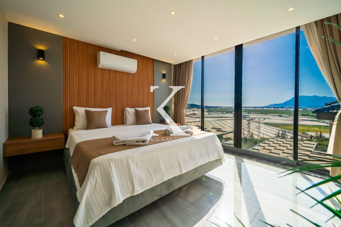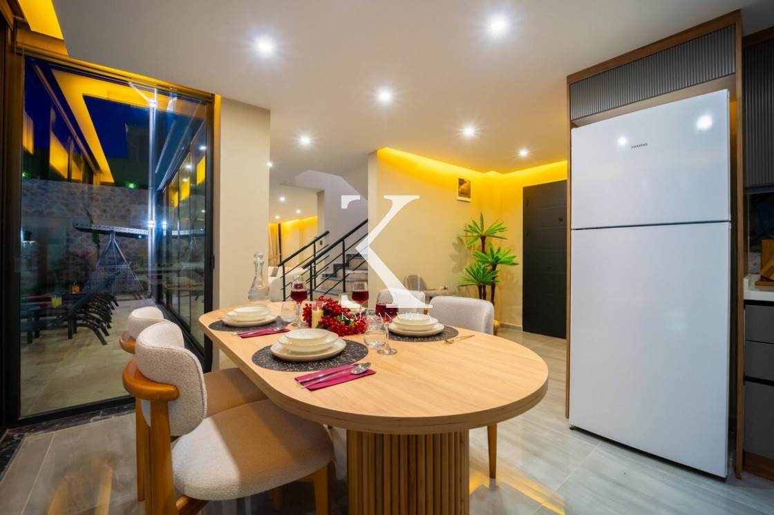 Modern ve şık tasarımıyla öne çıkan, 2 yatak odalı – 4 kişi kapasiteli lüks villa. Ebeveyn odasındaki özel jakuzi ile romantik ve dinlendirici bir atmosfer sunar; doğayla iç içe, şehir gürültüsünden uzak konumuyla hem muhafazakâr aileler hem de balayı çiftleri için idealdir.