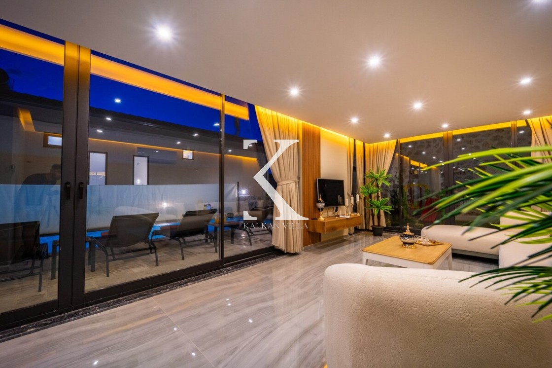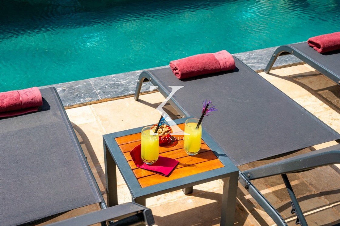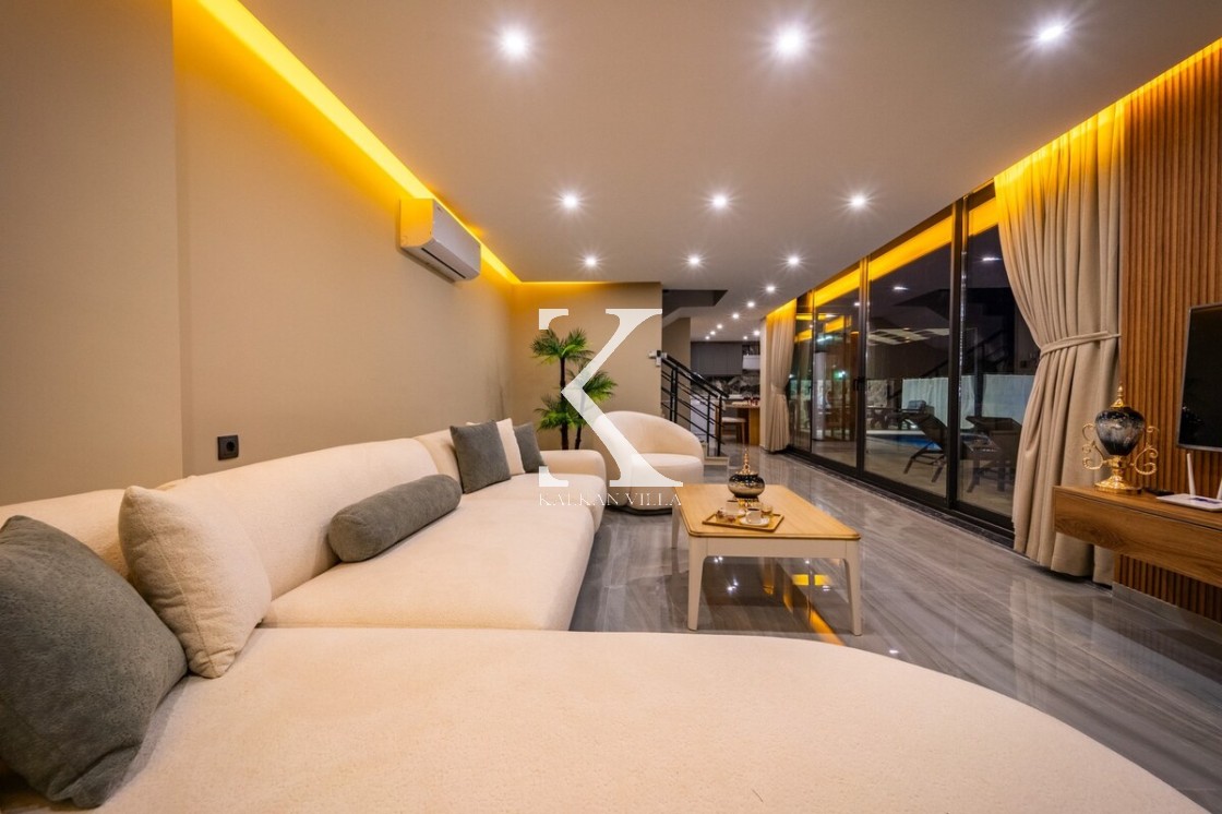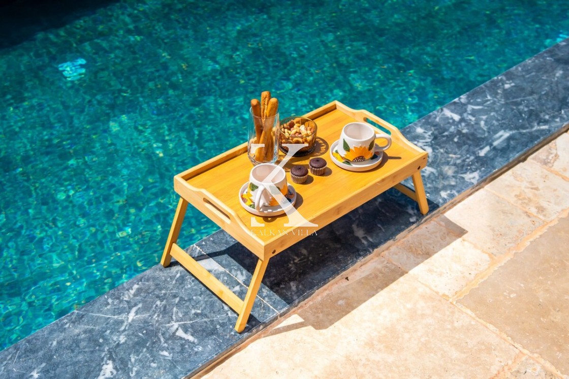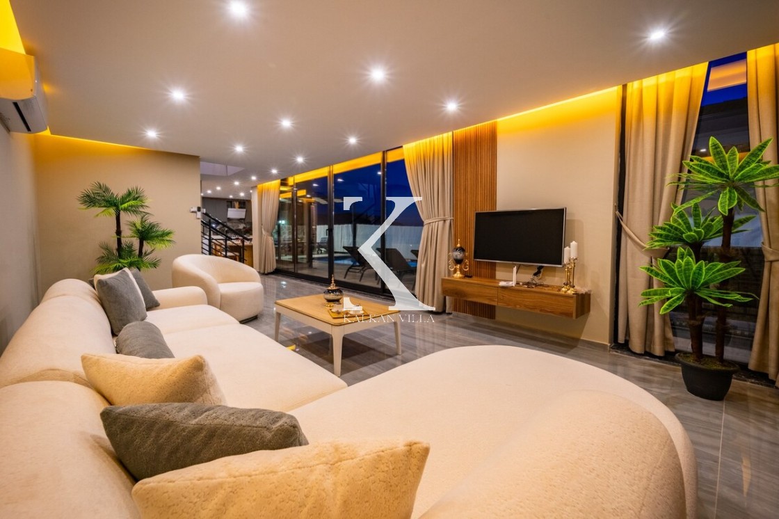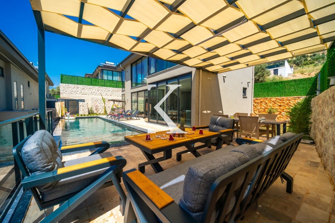 Modern döşeme: rahat L koltuk, TV & TV ünitesi, DVD oynatıcı, uydu alıcısı, klima, internet; havuz terasına direkt çıkış.